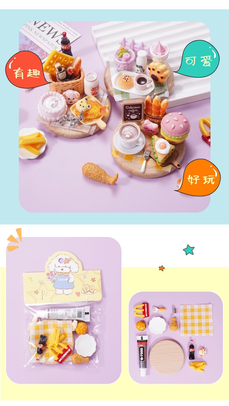DIY 냉장고 자석 시뮬레이션 음식 놀이 diy 소재 가방 음식 놀이 작은 접시 어린이 수제 놀이 집 장난감