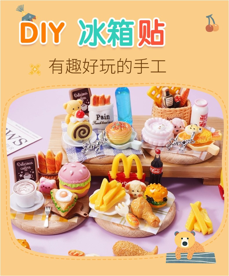 DIY 냉장고 자석 시뮬레이션 음식 놀이 diy 소재 가방 음식 놀이 작은 접시 어린이 수제 놀이 집 장난감스토어 가기