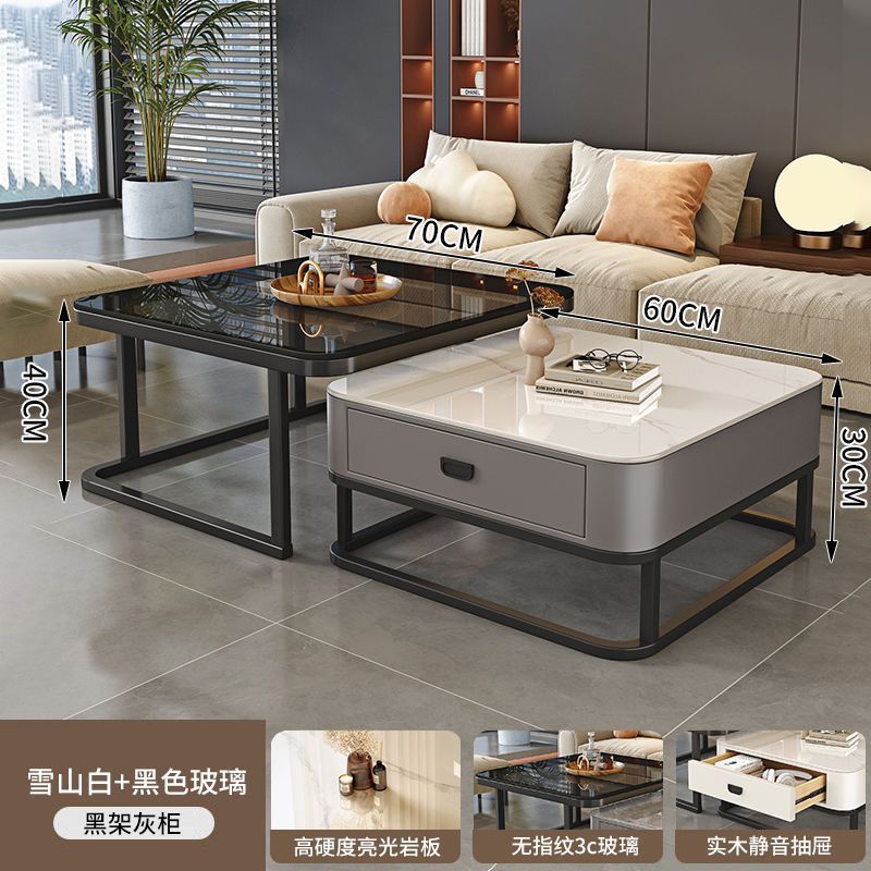 스톤 슬레이트 커피 테이블 조합 사각형 작은 아파트 현대적인 간단한 인터넷 연예인 유리 거실 홈 라이트 럭셔리 TV 캐비닛 티 테이블스토어 가기