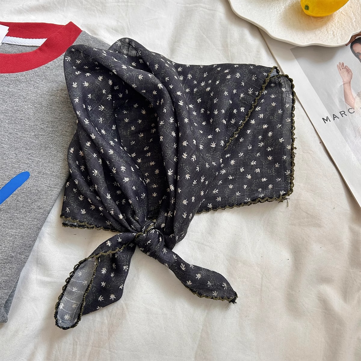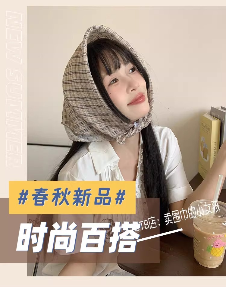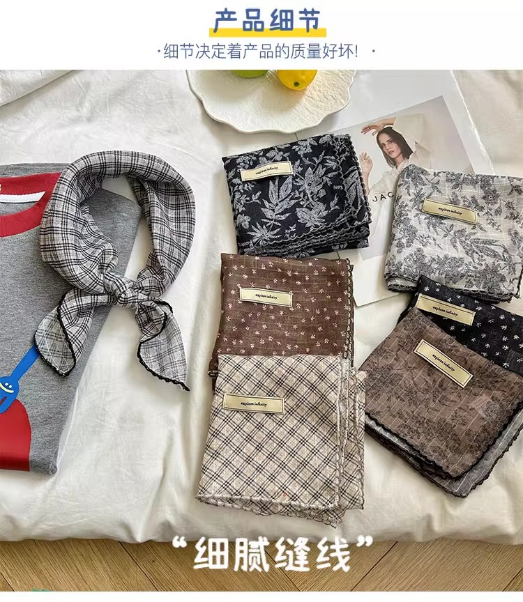 2025 새로운 일본면 및 리넨 작은 광장 스카프 인터넷 인기있는 고급 사진 헤어 밴드 헤드 스카프 실크 스카프 여성 장식 목 보호 스카프스토어 가기