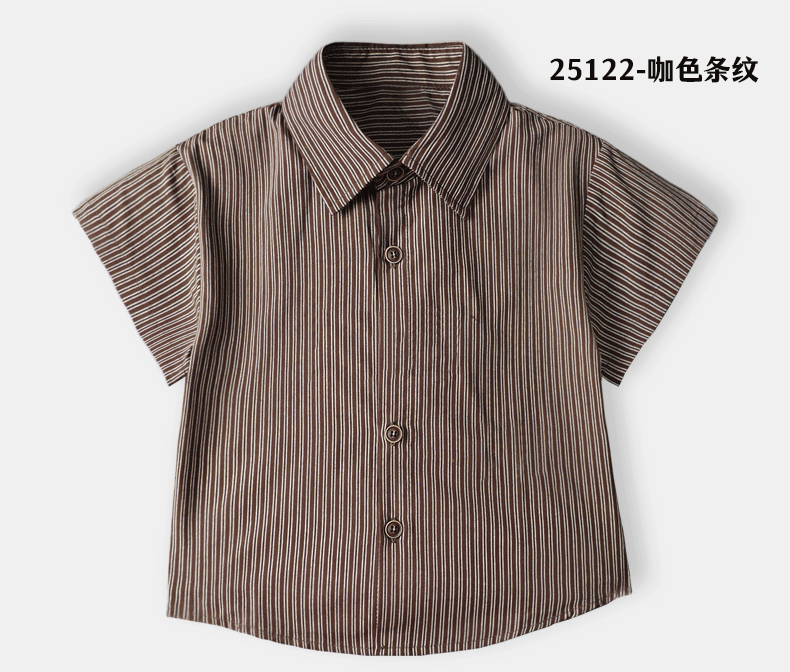 • 퓨어 코튼 브라운 스트라이프 반소매 셔츠