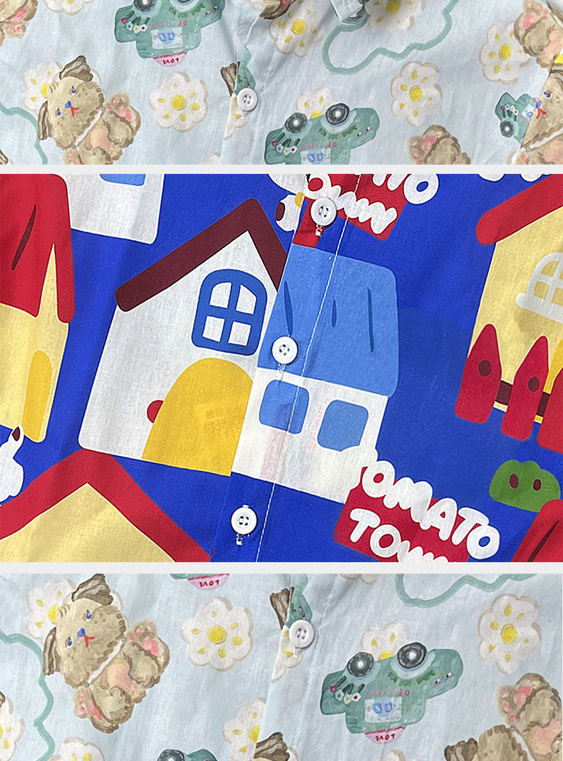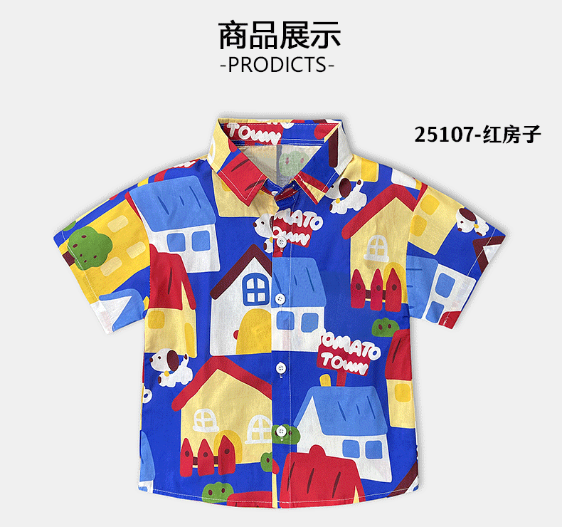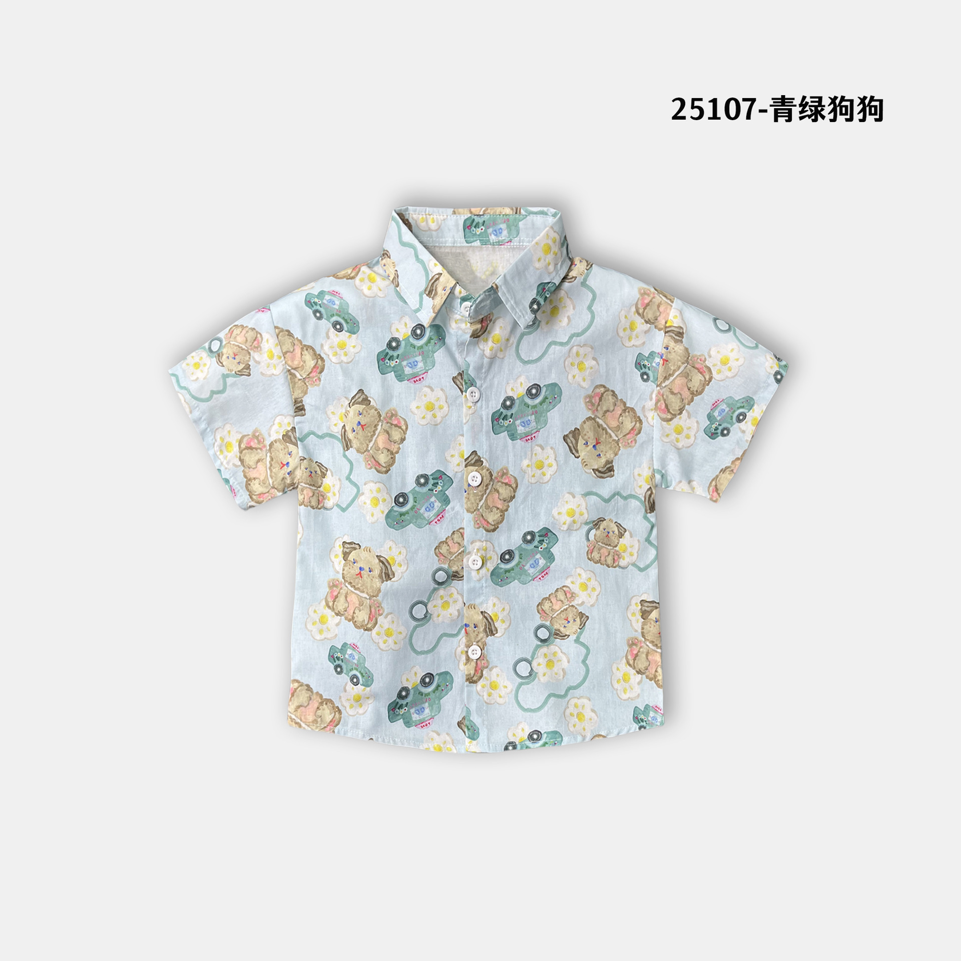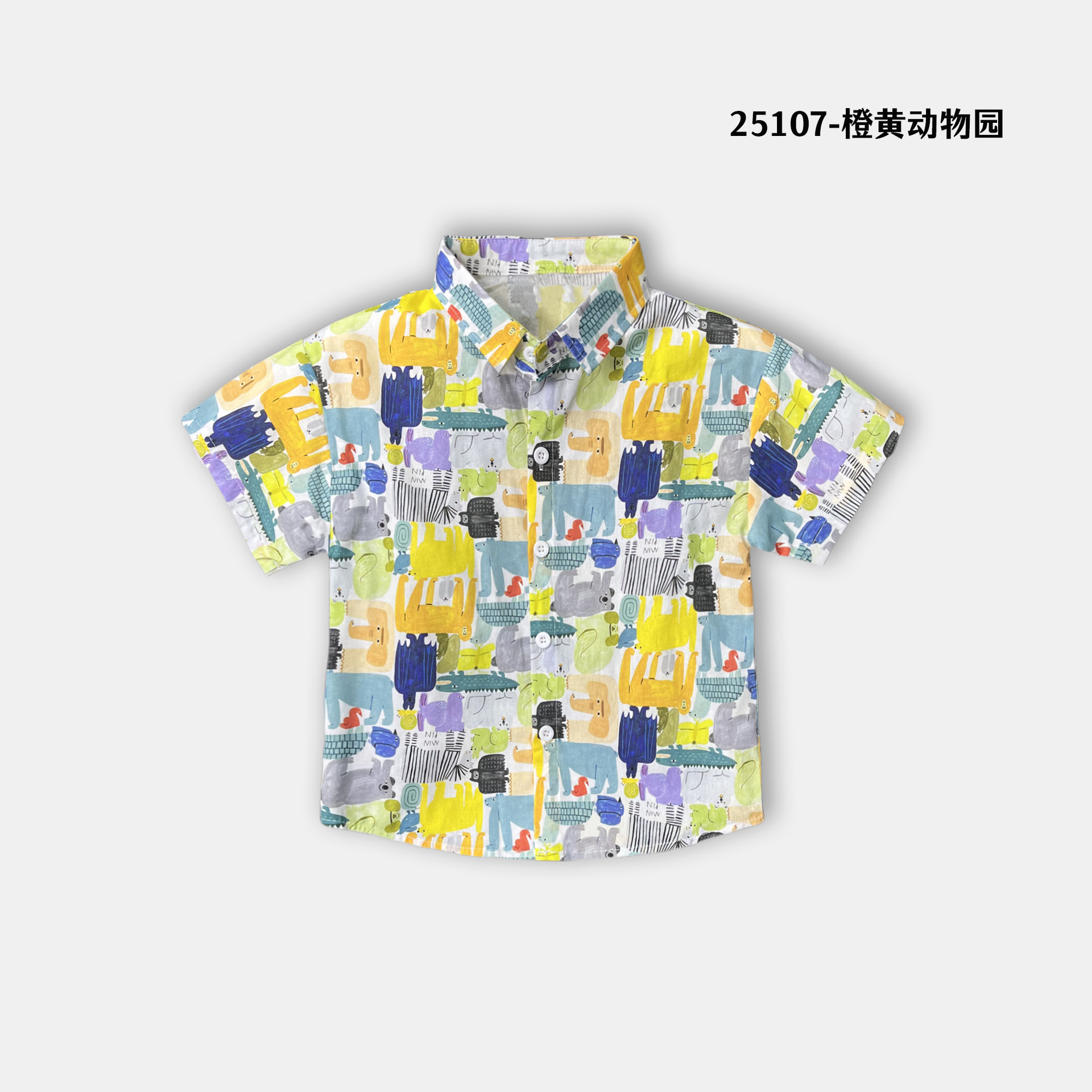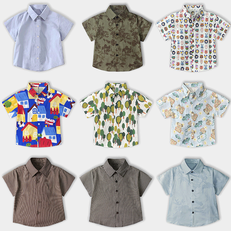소년 프린트 셔츠 2025 여름 한국 스타일 캐주얼 베이비 반팔 셔츠 아동용 디지털 프린트 패션 셔츠스토어 가기