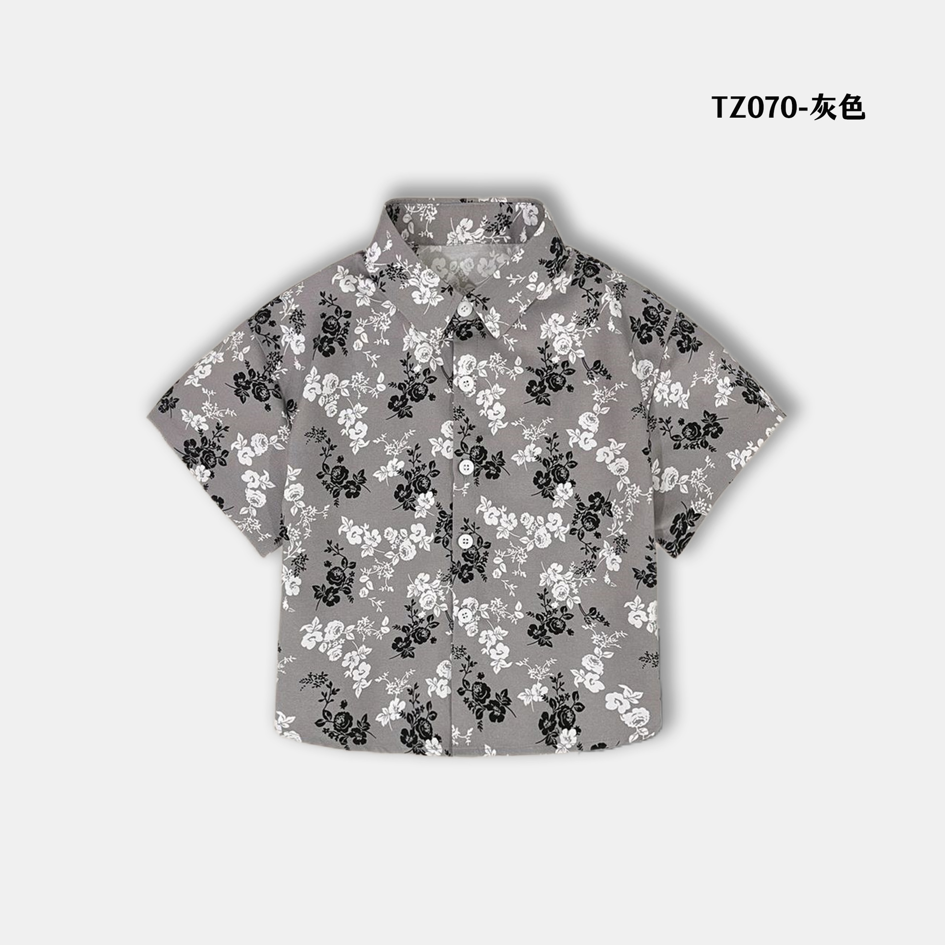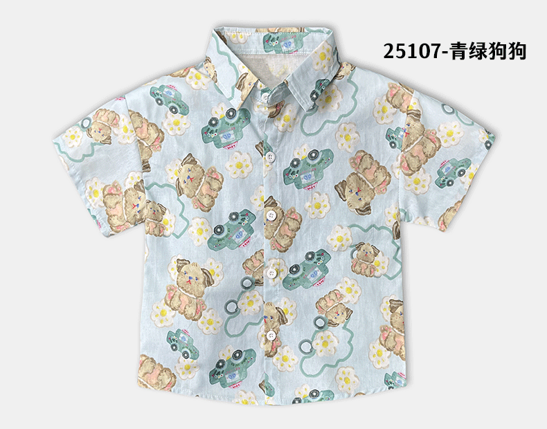 소년 프린트 셔츠 2025 여름 한국 스타일 캐주얼 베이비 반팔 셔츠 아동용 디지털 프린트 패션 셔츠