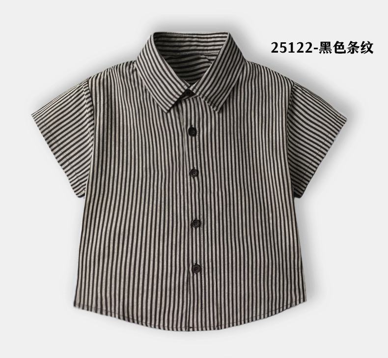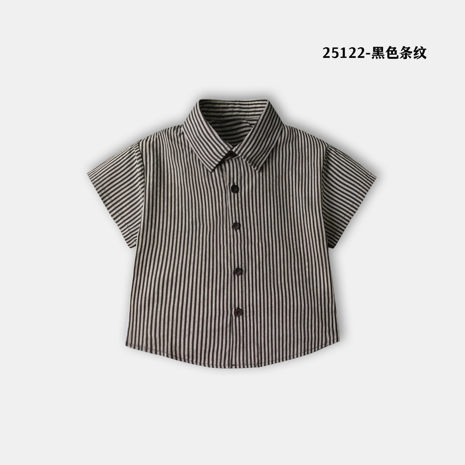 • 퓨어 코튼 블랙 스트라이프 반소매 셔츠