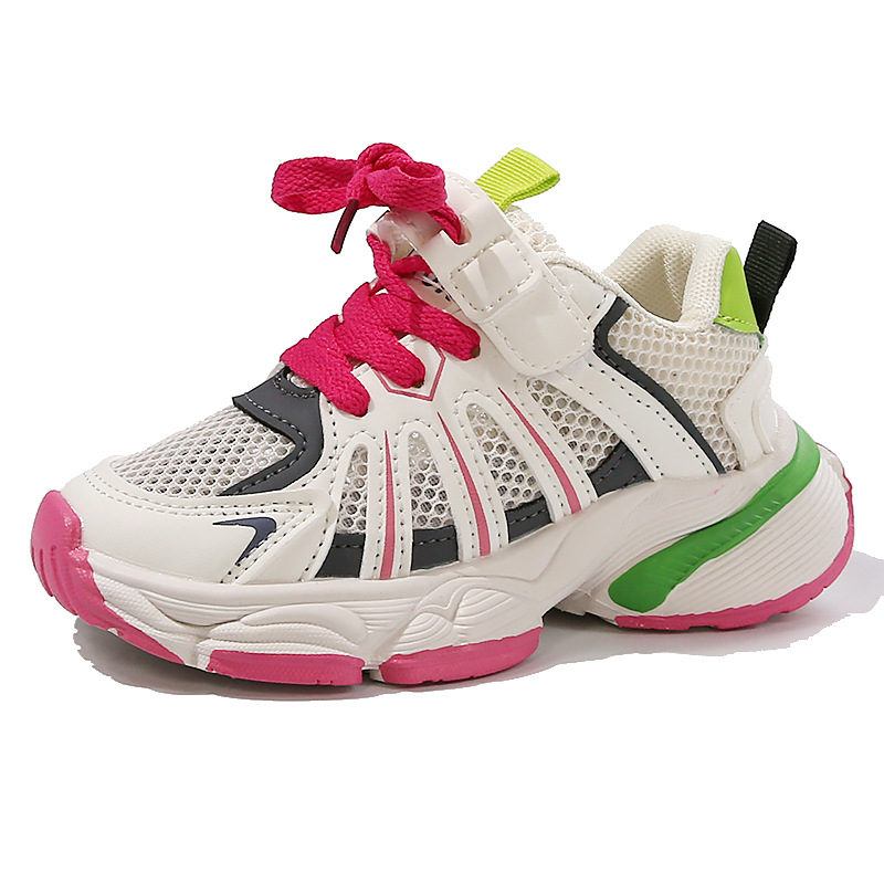 봄과 가을 어린이의 새로운 메쉬 아빠 신발 레이스 업 두꺼운 밑창 미끄럼 방지 중대형 어린이 소녀 캐주얼 신발 스포츠 신발 패션