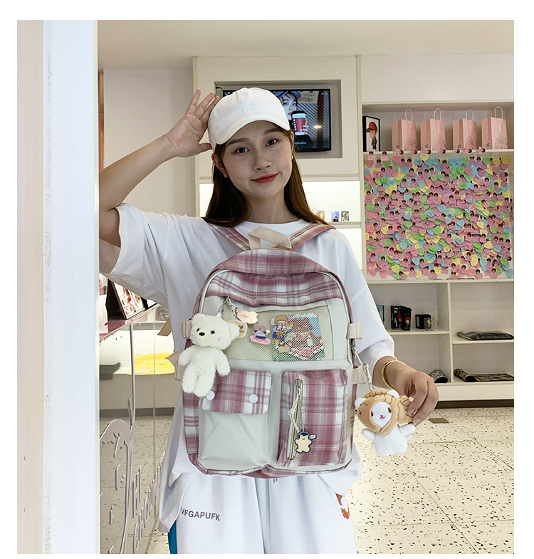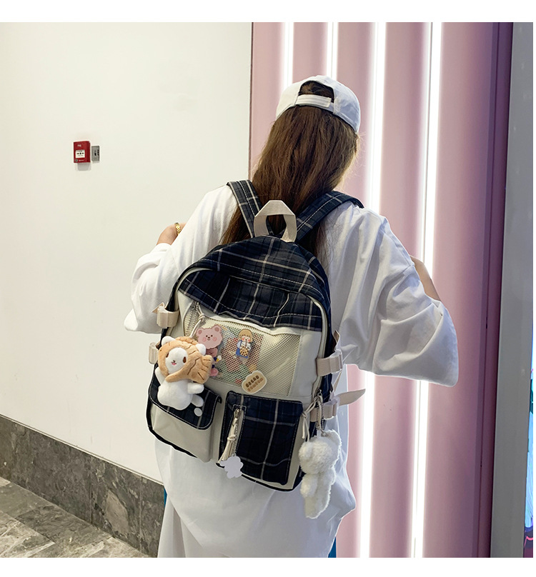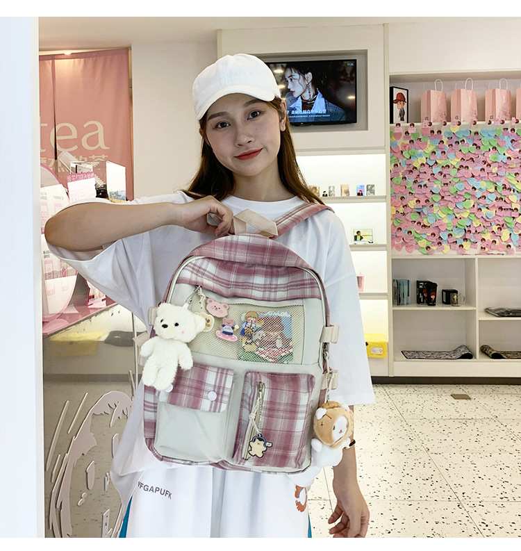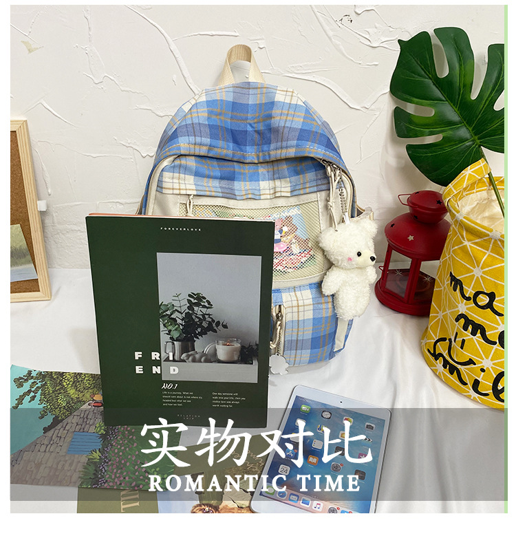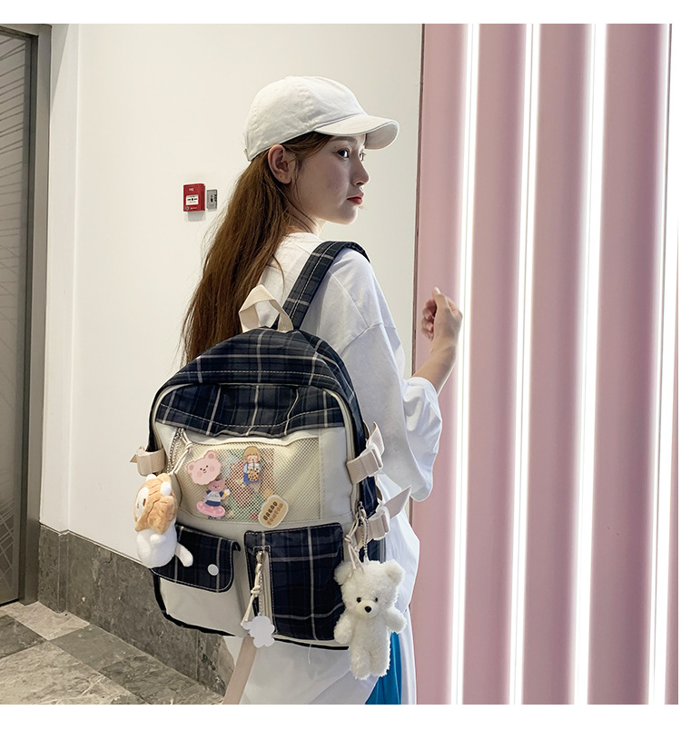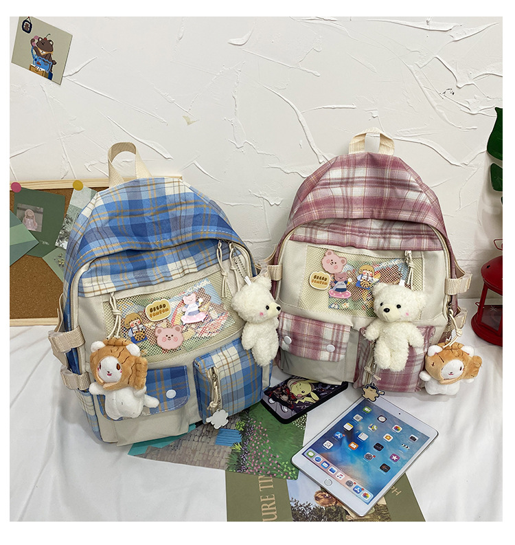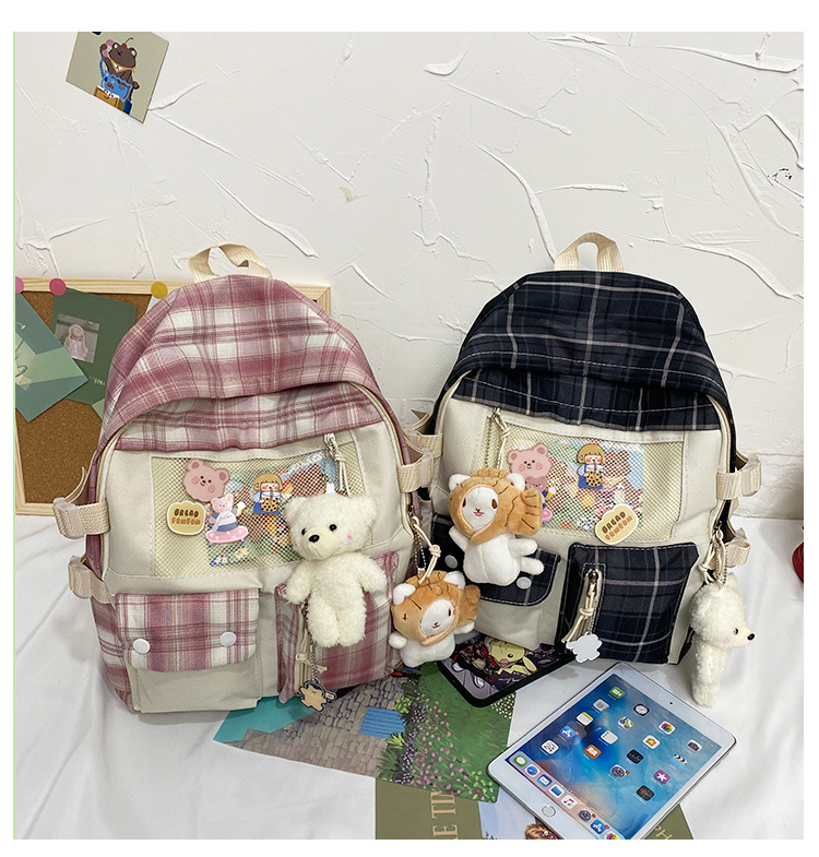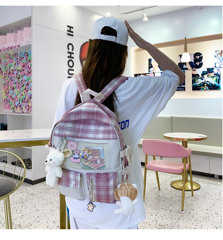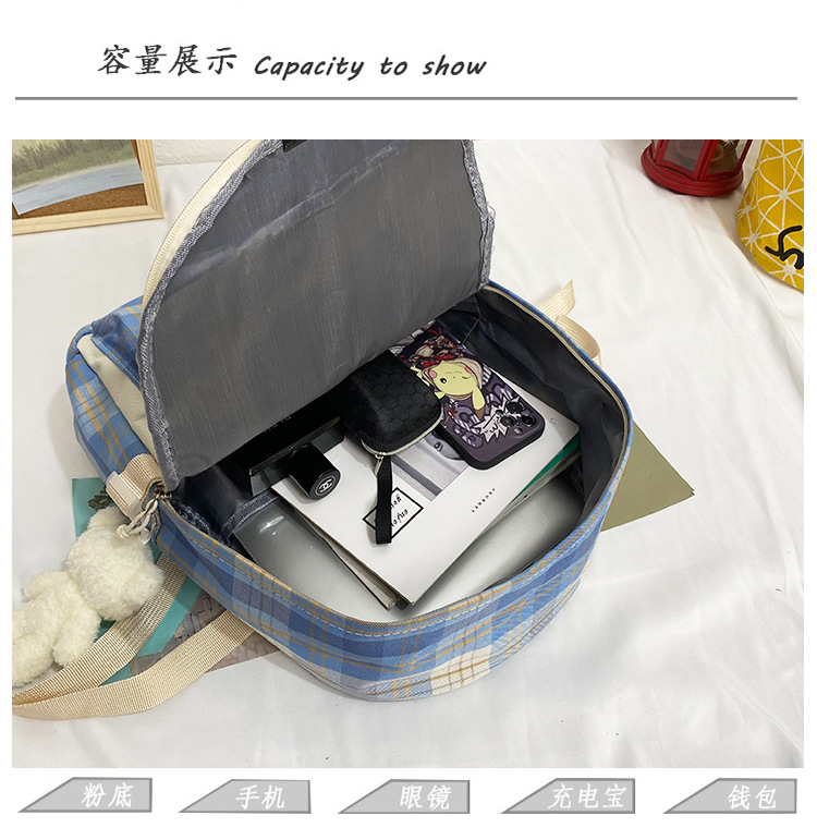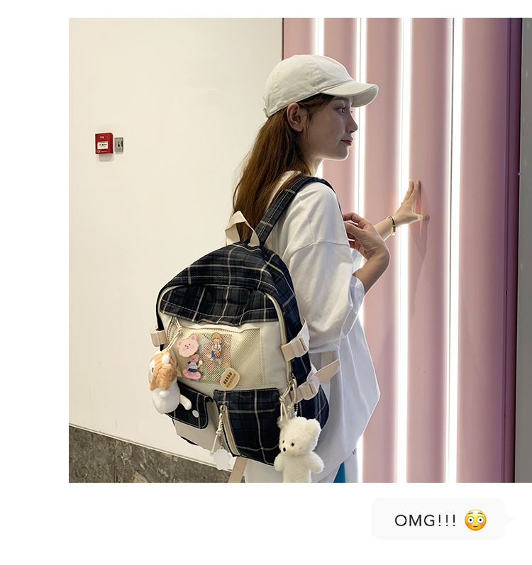 여성용 책가방 한국식 하라주쿠 스타일 고등학생, 초등학생, 중학생 체크무늬 배낭, 귀여운 대용량 여행 배낭스토어 가기