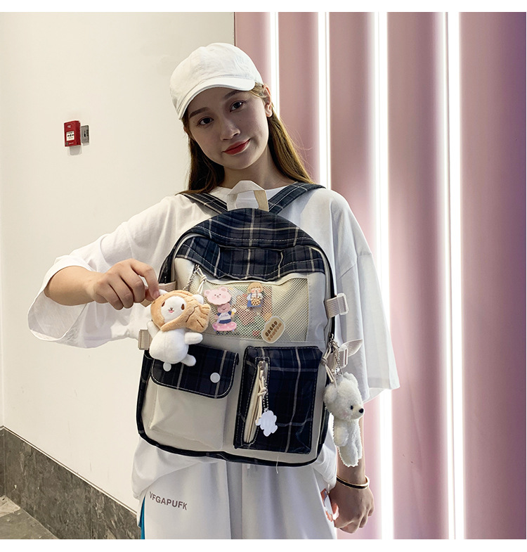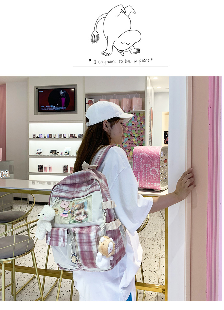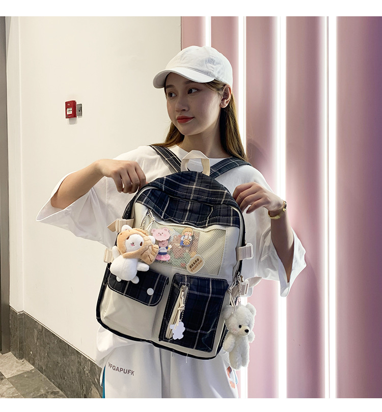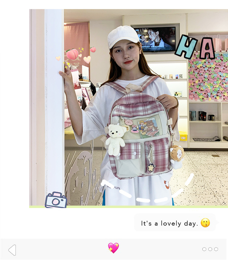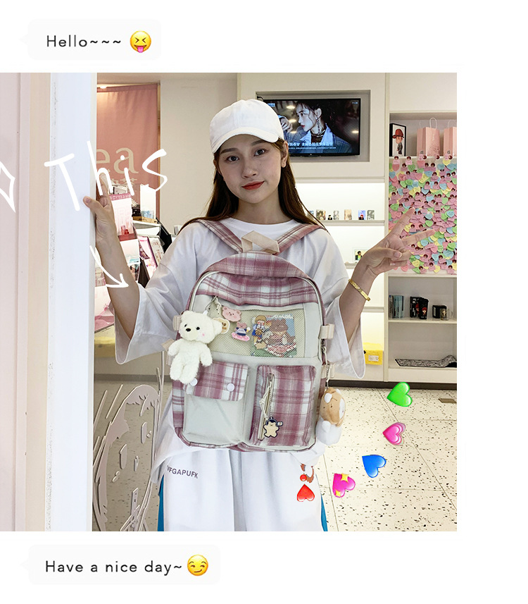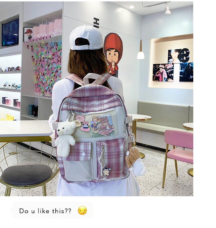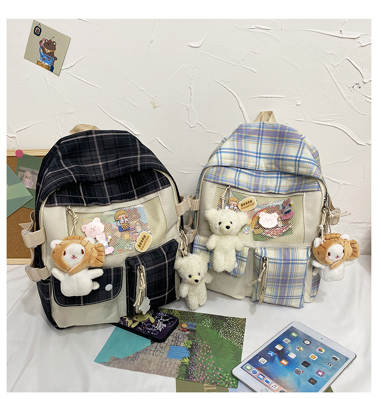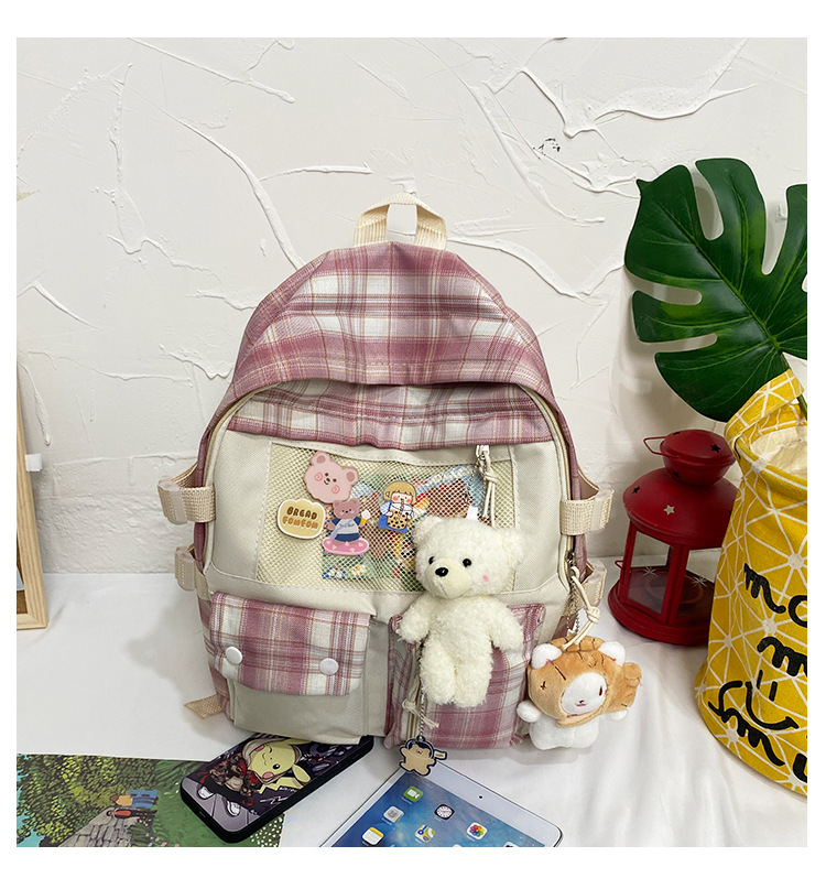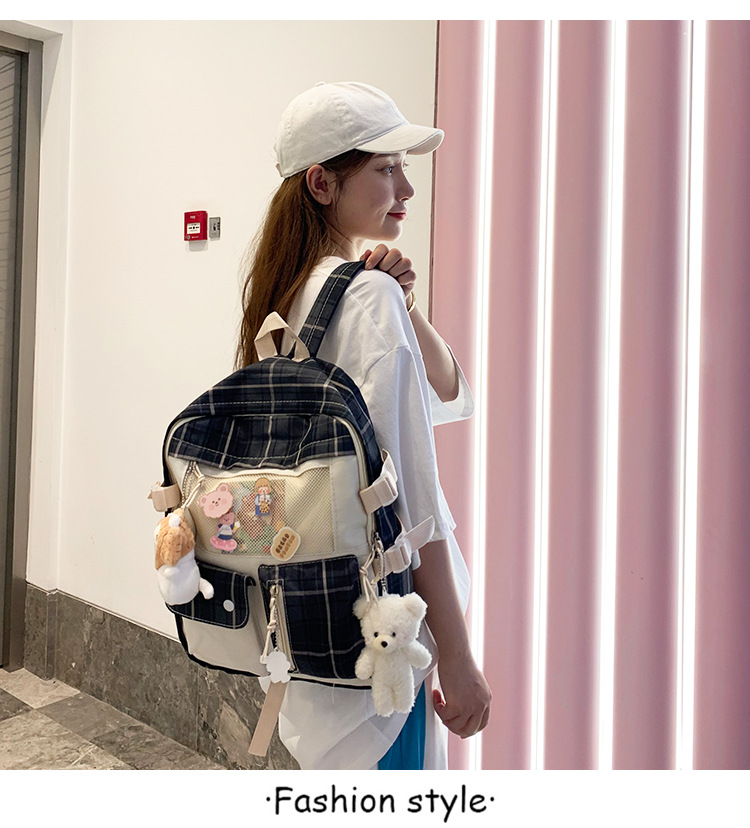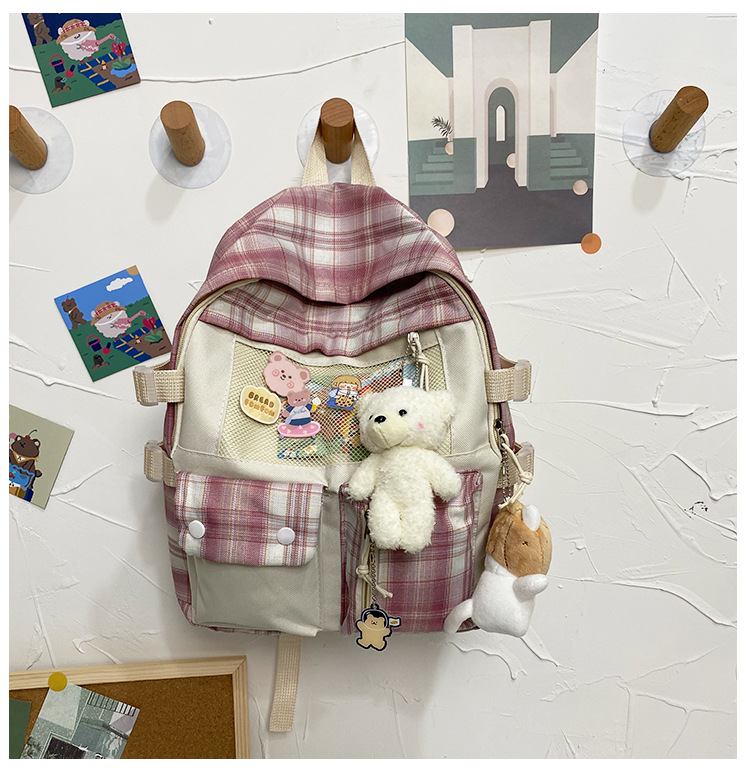 여성용 책가방 한국식 하라주쿠 스타일 고등학생, 초등학생, 중학생 체크무늬 배낭, 귀여운 대용량 여행 배낭스토어 가기