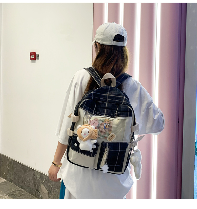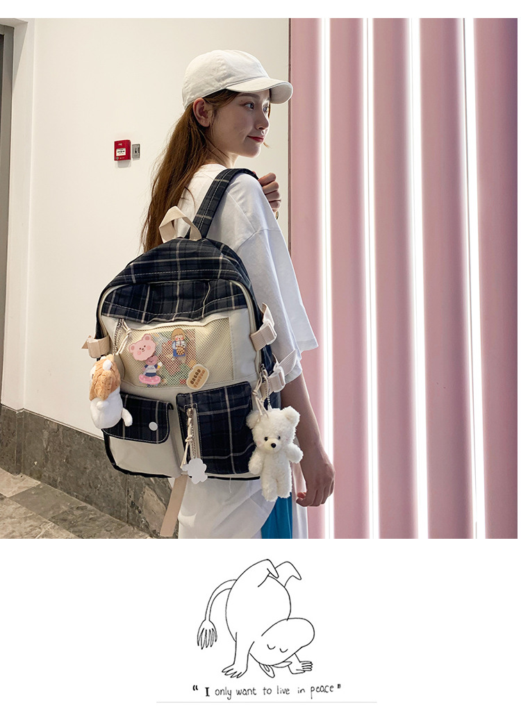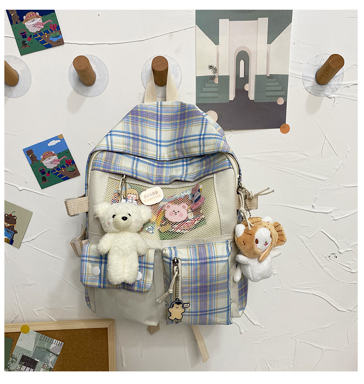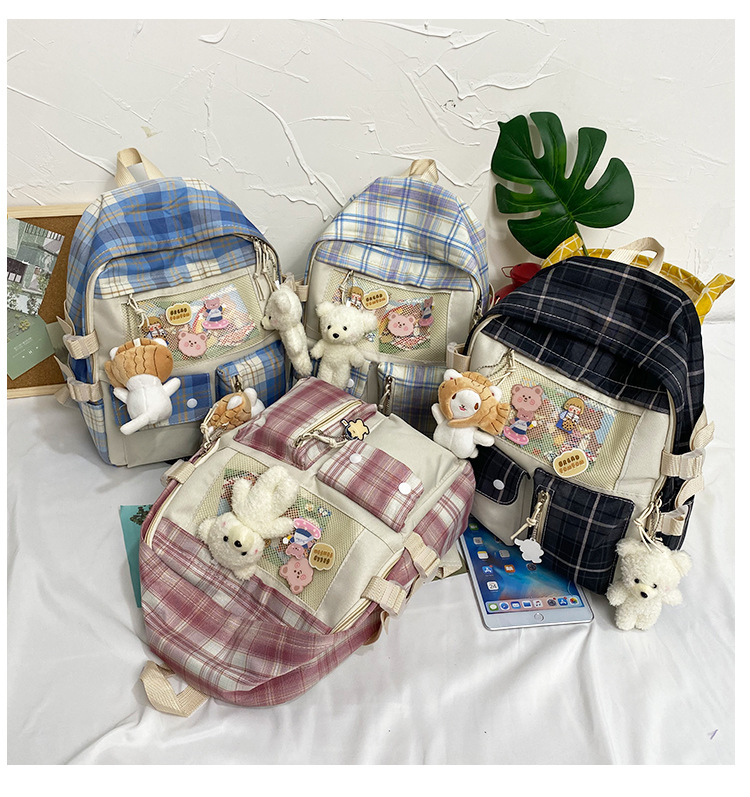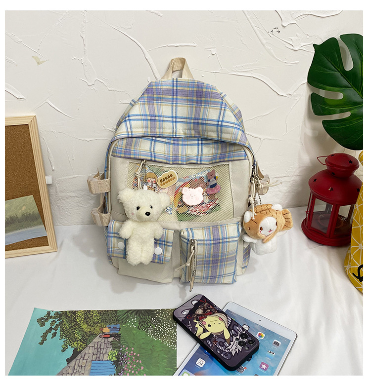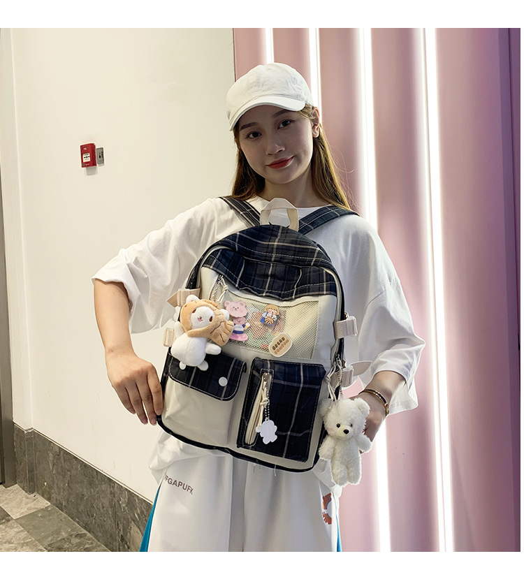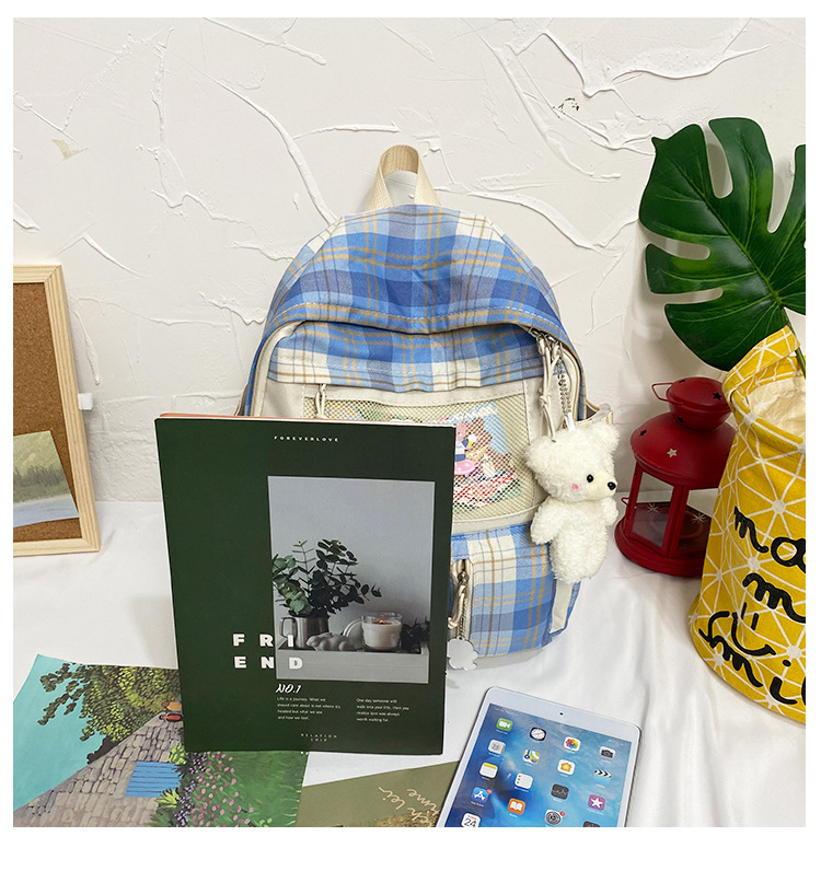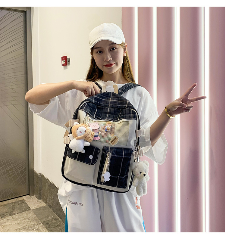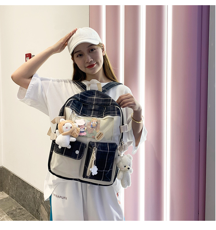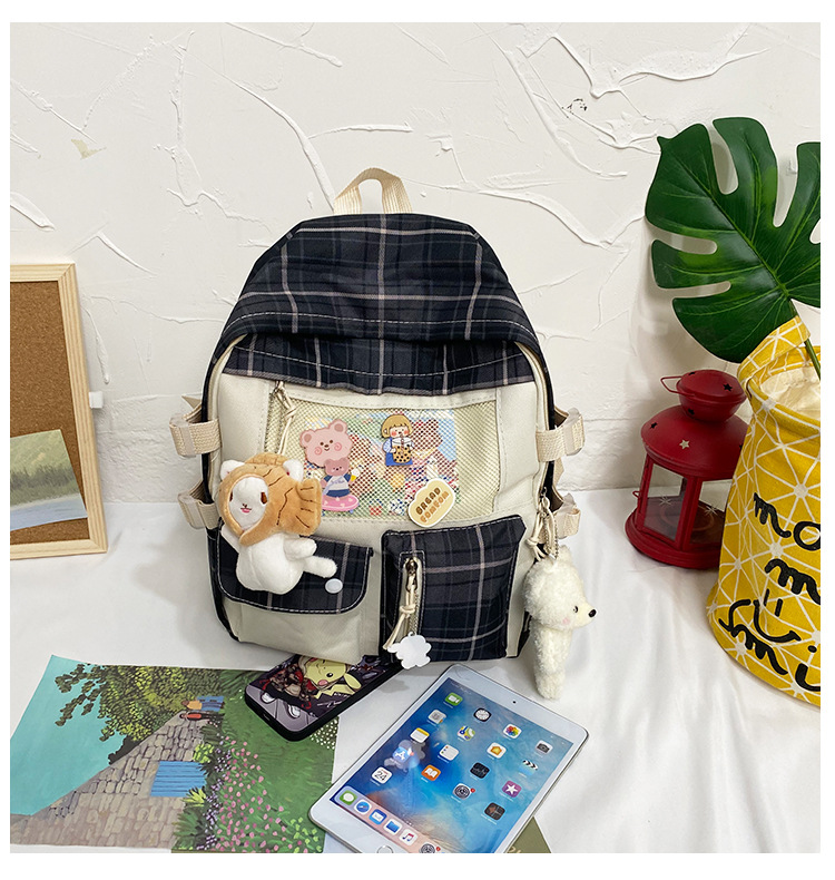 여성용 책가방 한국식 하라주쿠 스타일 고등학생, 초등학생, 중학생 체크무늬 배낭, 귀여운 대용량 여행 배낭스토어 가기