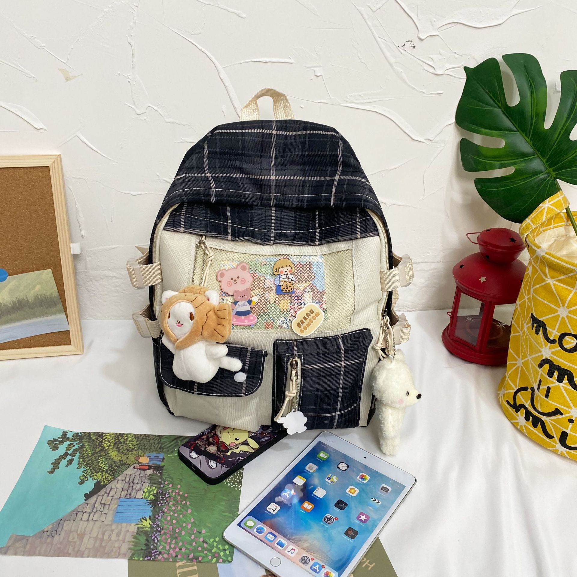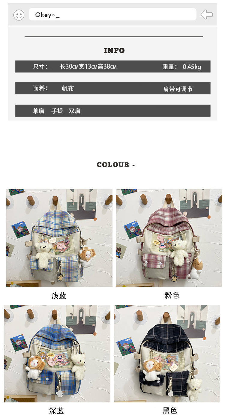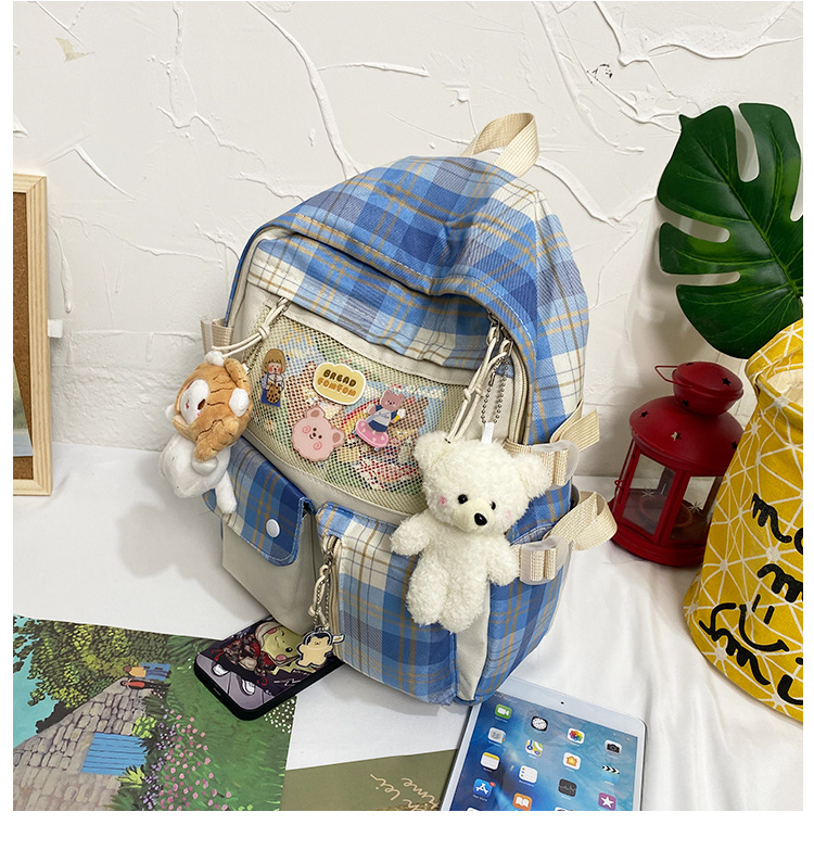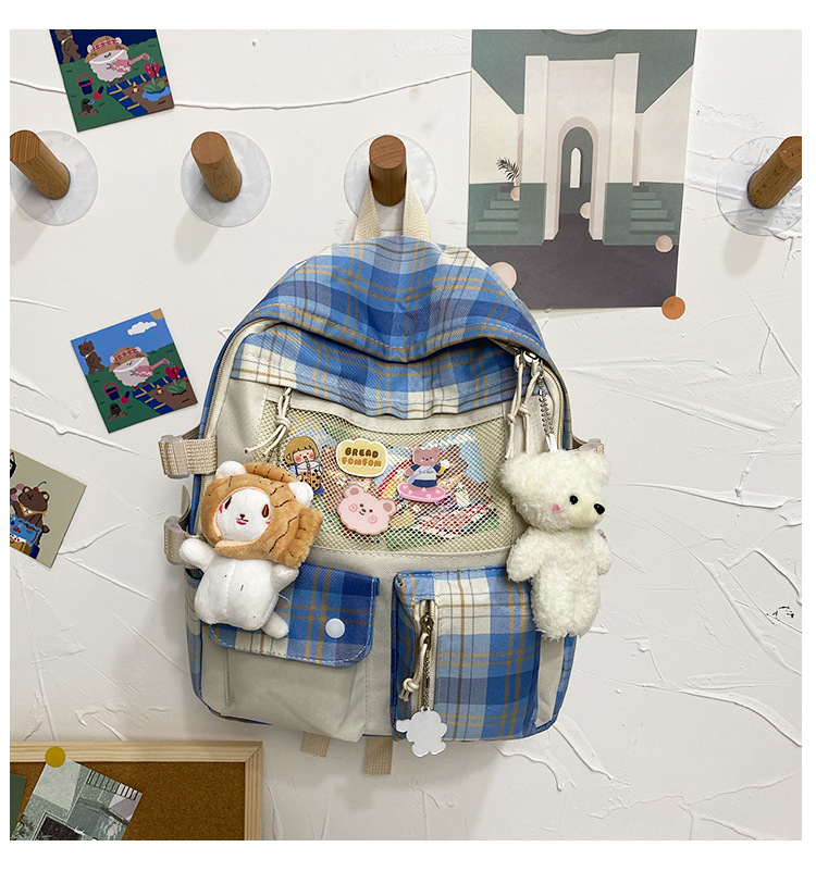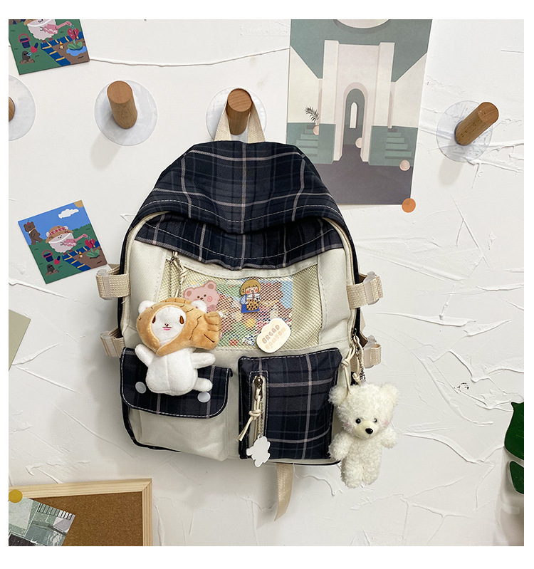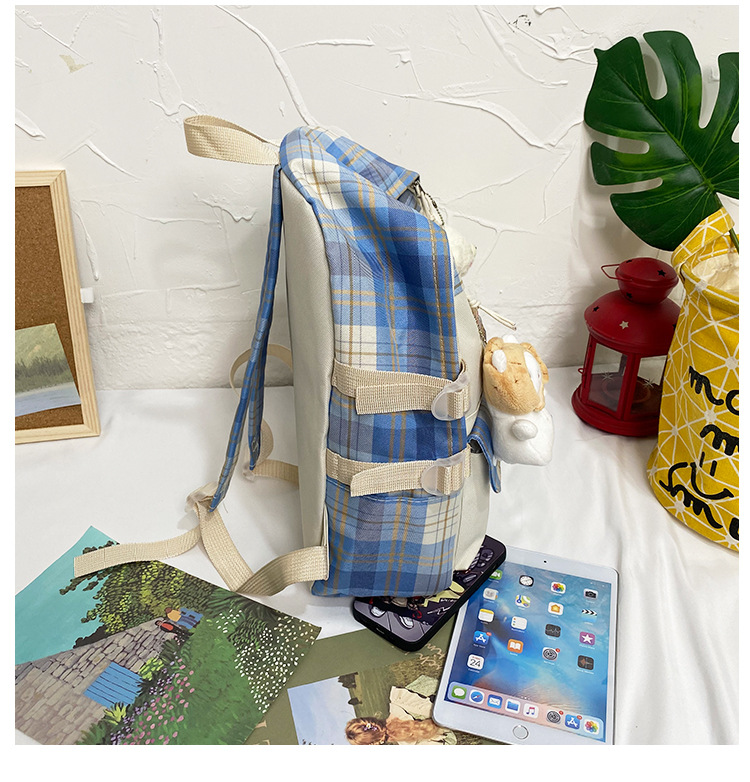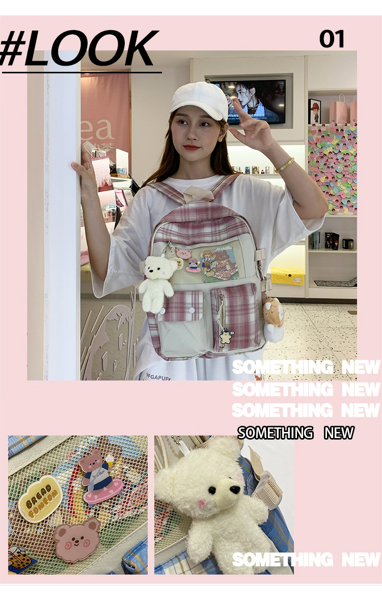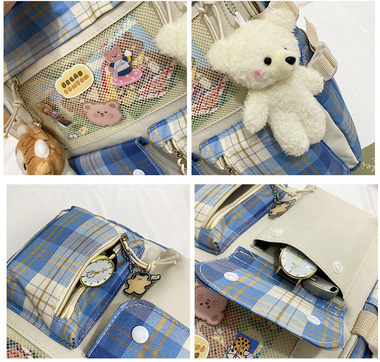 여성용 책가방 한국식 하라주쿠 스타일 고등학생, 초등학생, 중학생 체크무늬 배낭, 귀여운 대용량 여행 배낭스토어 가기