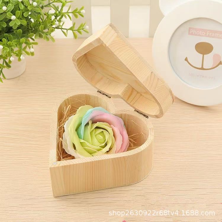 간단한 나무 바탕 화면 하트 모양의 저장 상자 나무 선물 상자 보석 용성 꽃 나무 상자 포장 상자