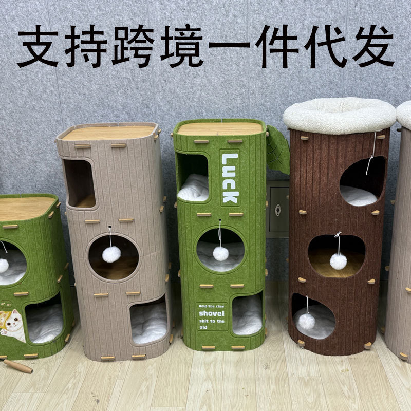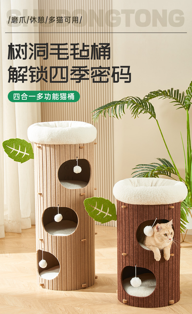 고양이 등반 랙 고양이 둥지 더블 레이어 큰 고양이 특별 펠트 배럴 나무 구멍 고양이 게임 플레이 고양이 집 국경 대외 무역 도매