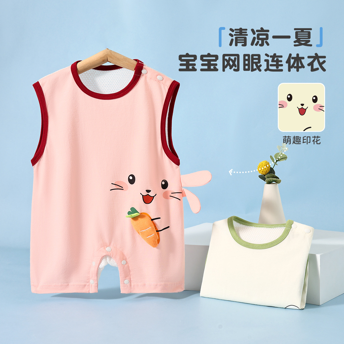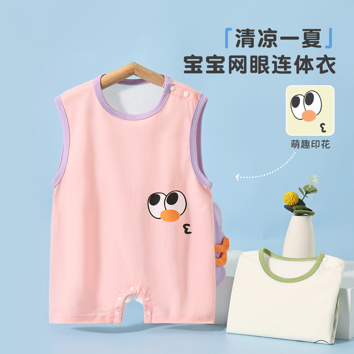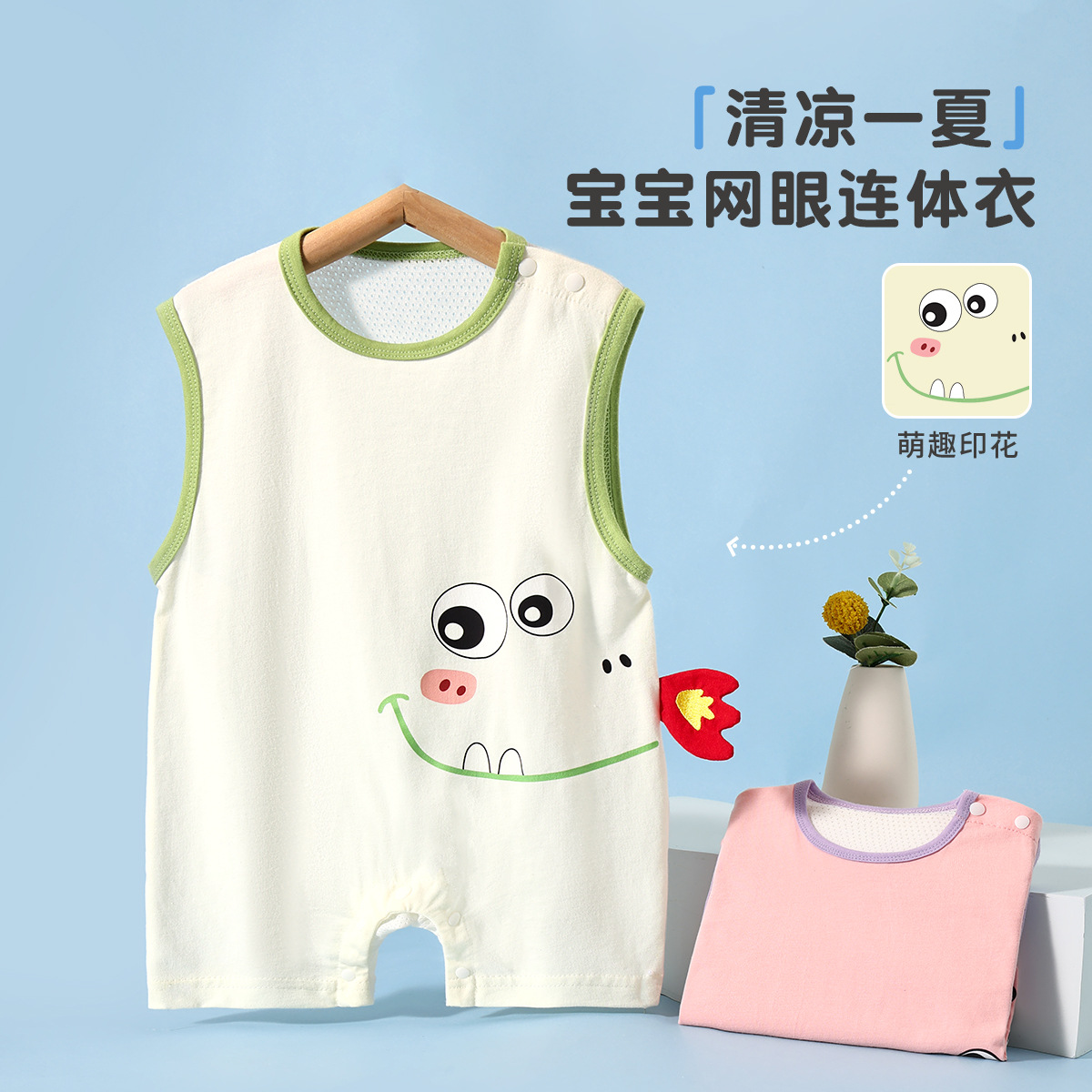실크 버드 여름 새로운 베이비 클래스 순수한 코튼 하센 통기성 메쉬 조끼 점보 의류 소년 소녀 아기 등반 옷