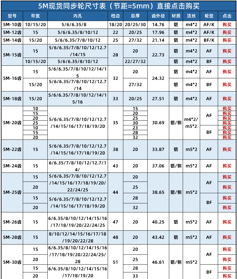 • 5M32 톱니 폭 15 원형 구멍 12.7-AF-알루미늄