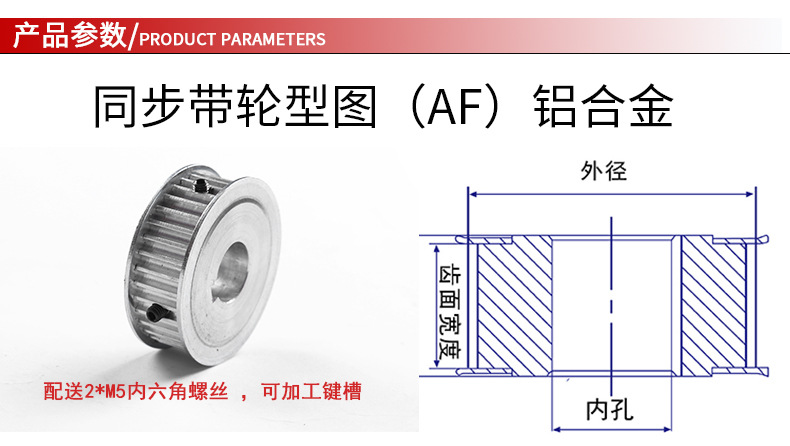 • 5M32 치아-폭 15-구멍 10 키홈 4*1.8-AF-알루미늄