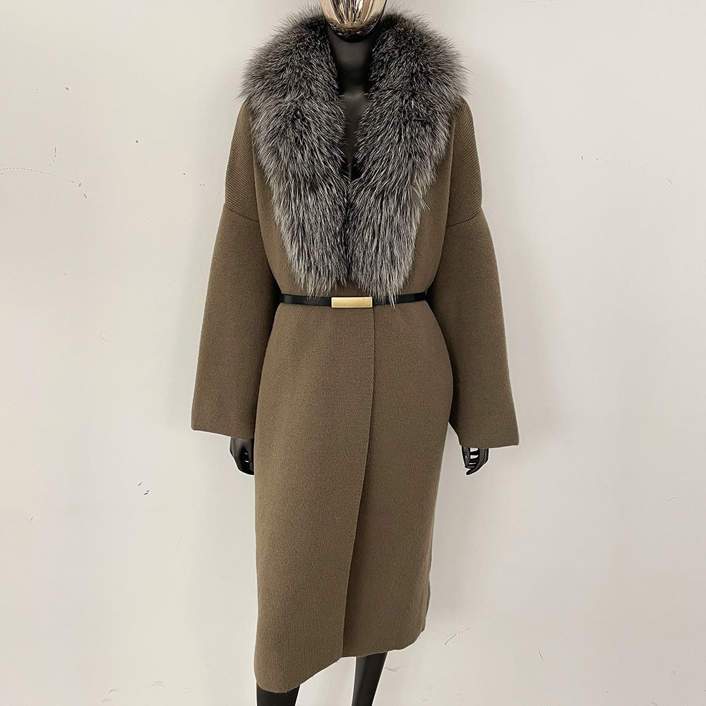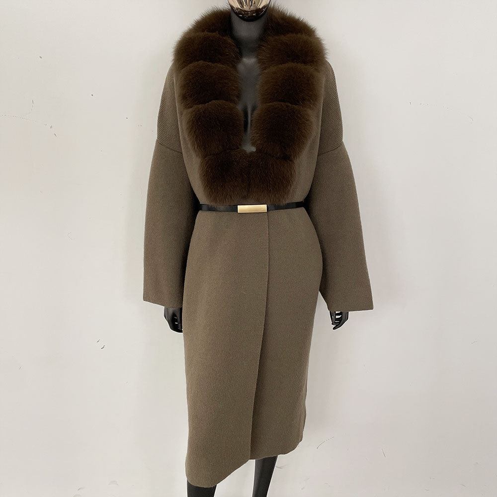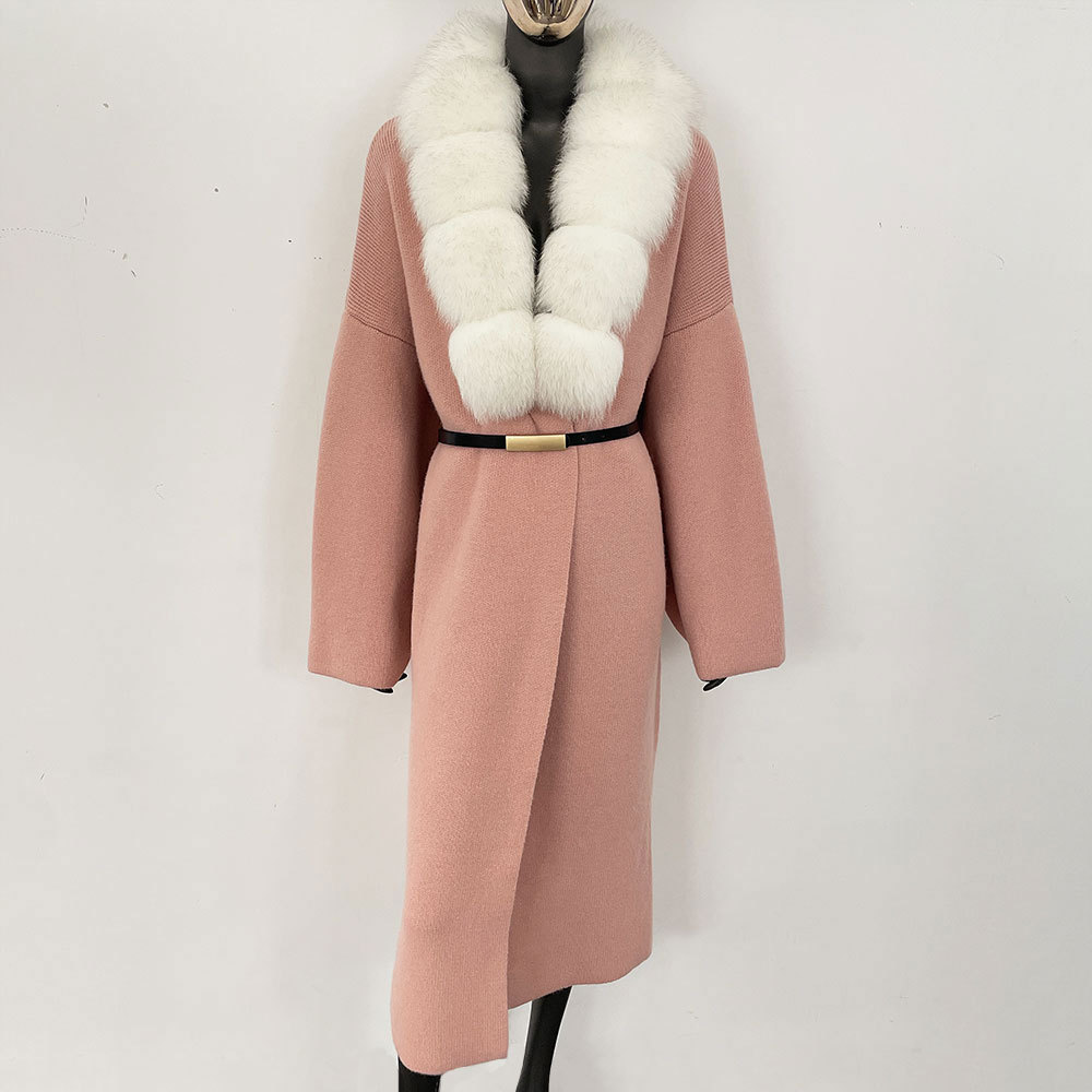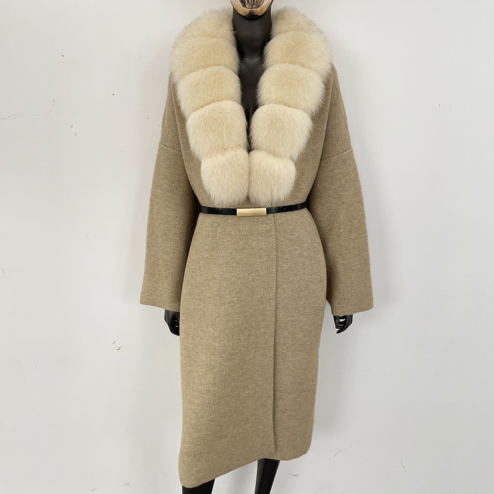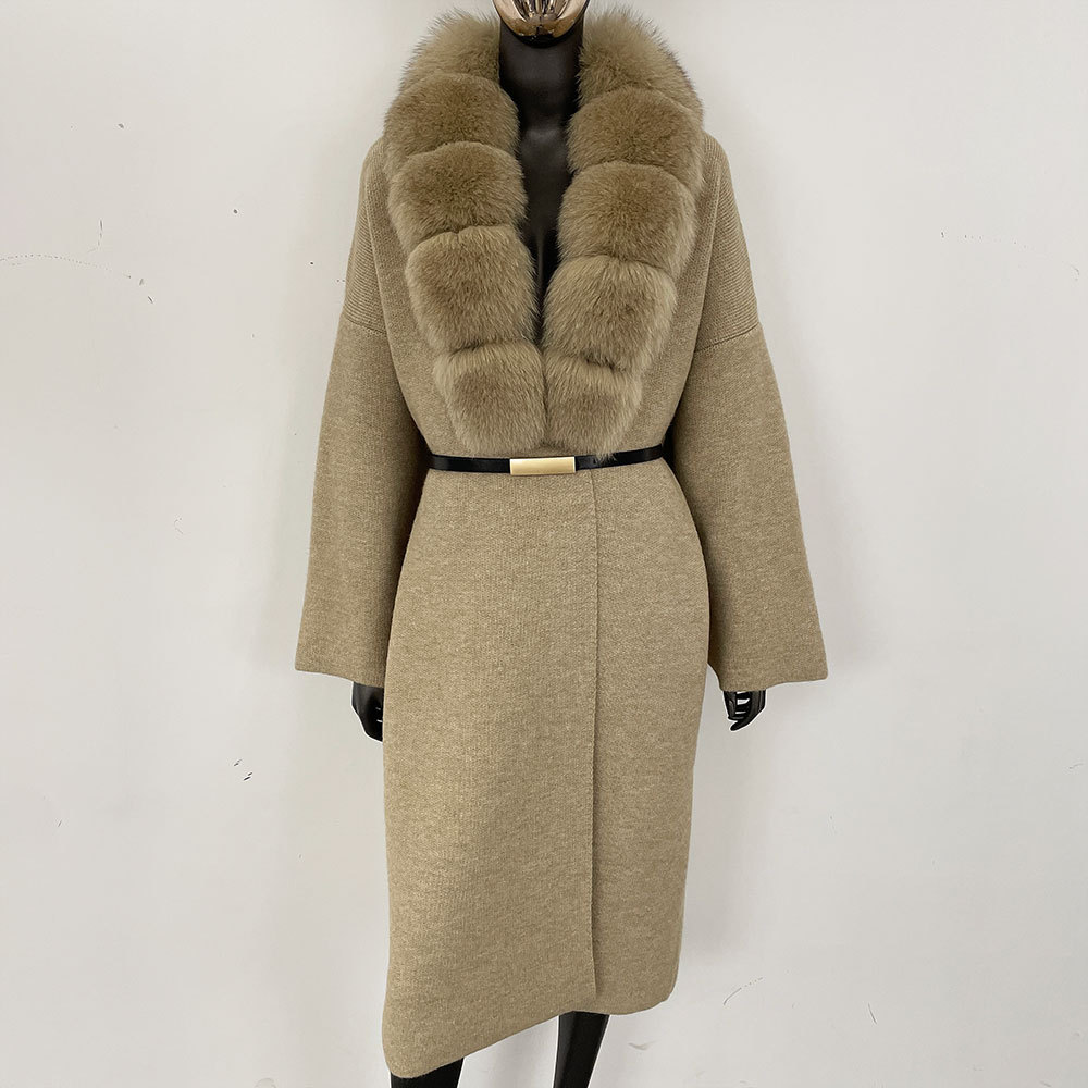 여성을위한 새로운 2025 유럽과 미국의 게으른 스타일 패션 두꺼운 긴 여우 모피 칼라 카디건 스웨터 스웨터 재킷