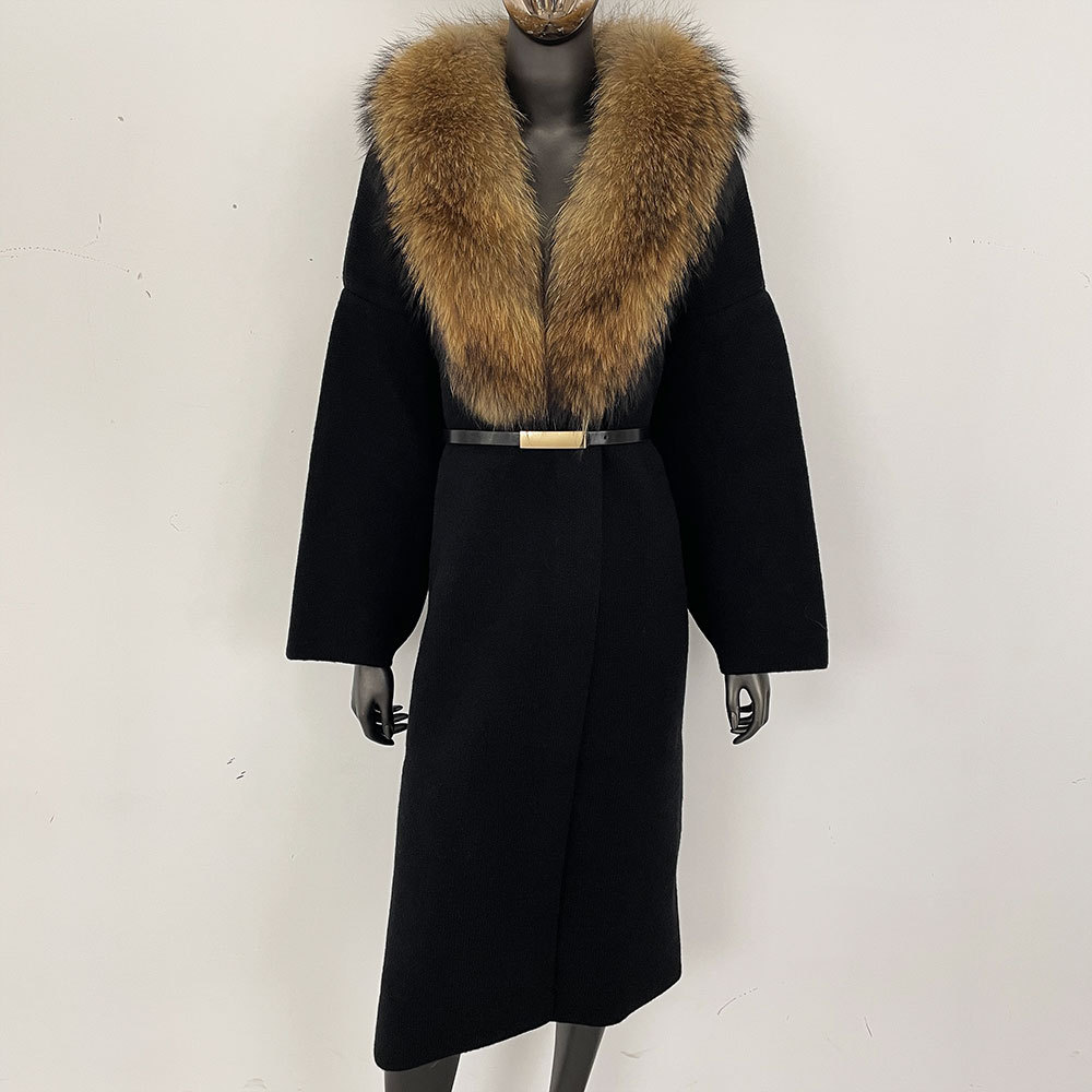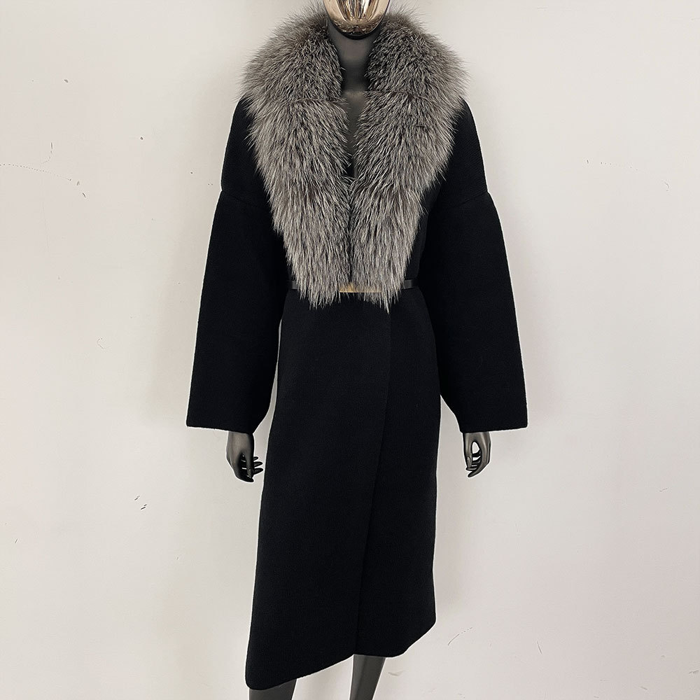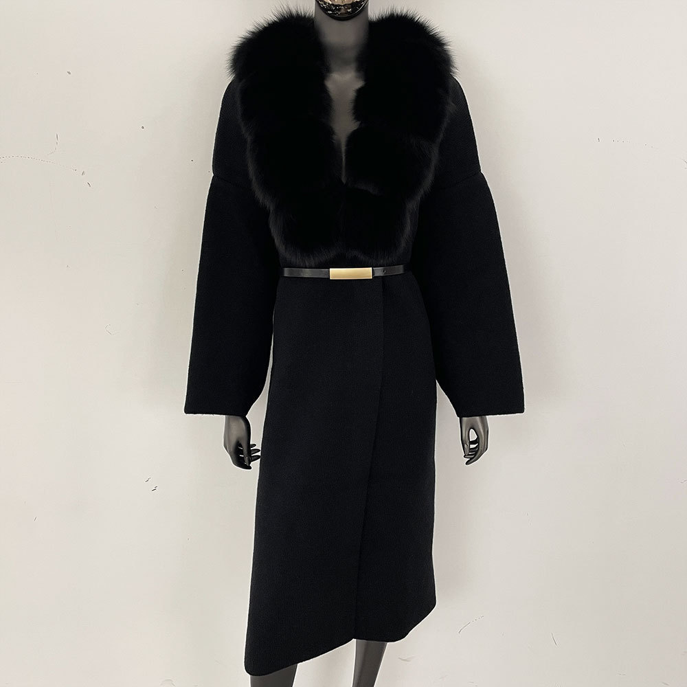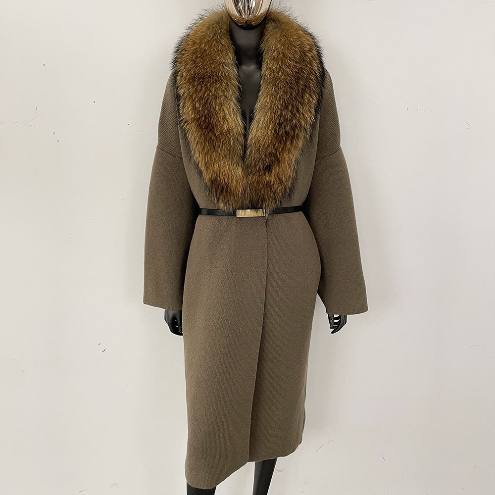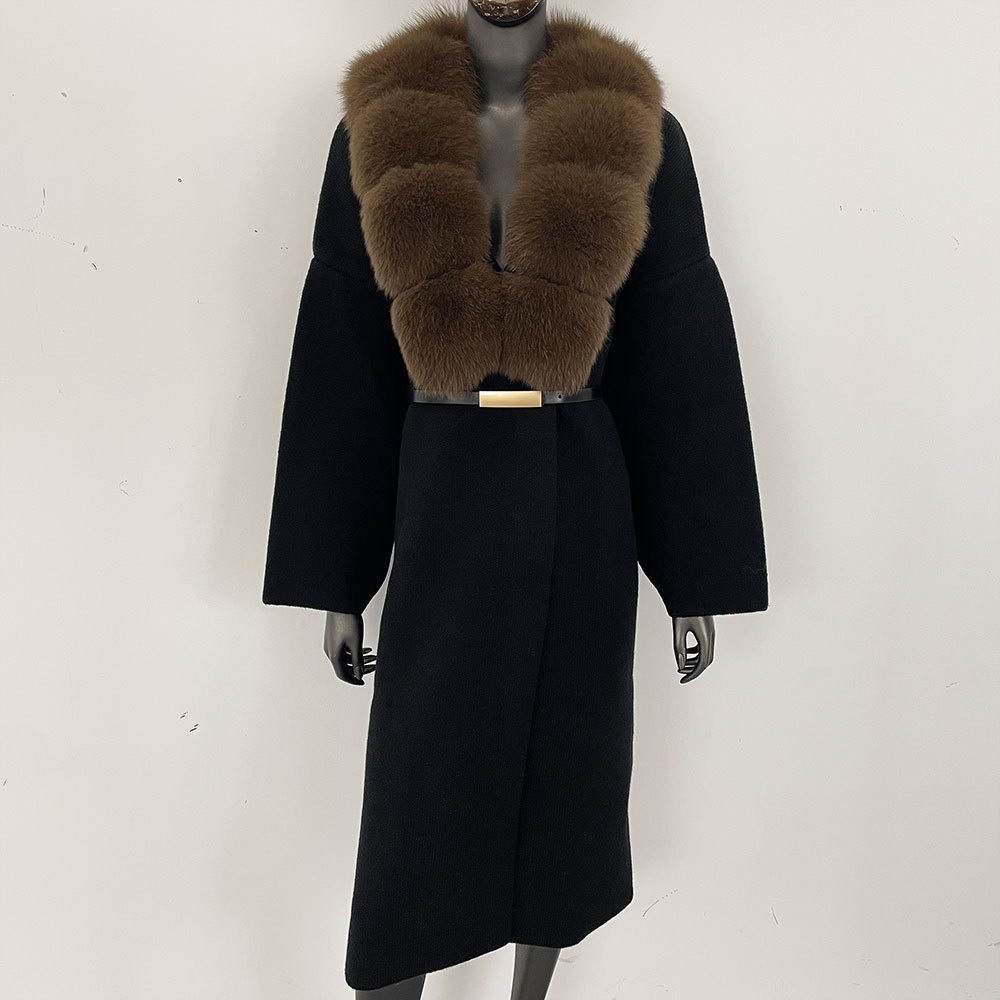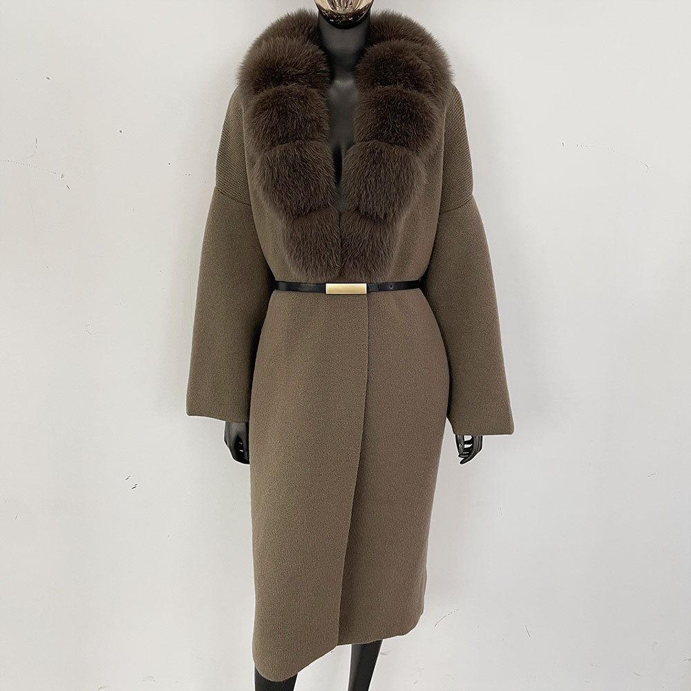 여성을위한 새로운 2025 유럽과 미국의 게으른 스타일 패션 두꺼운 긴 여우 모피 칼라 카디건 스웨터 스웨터 재킷
