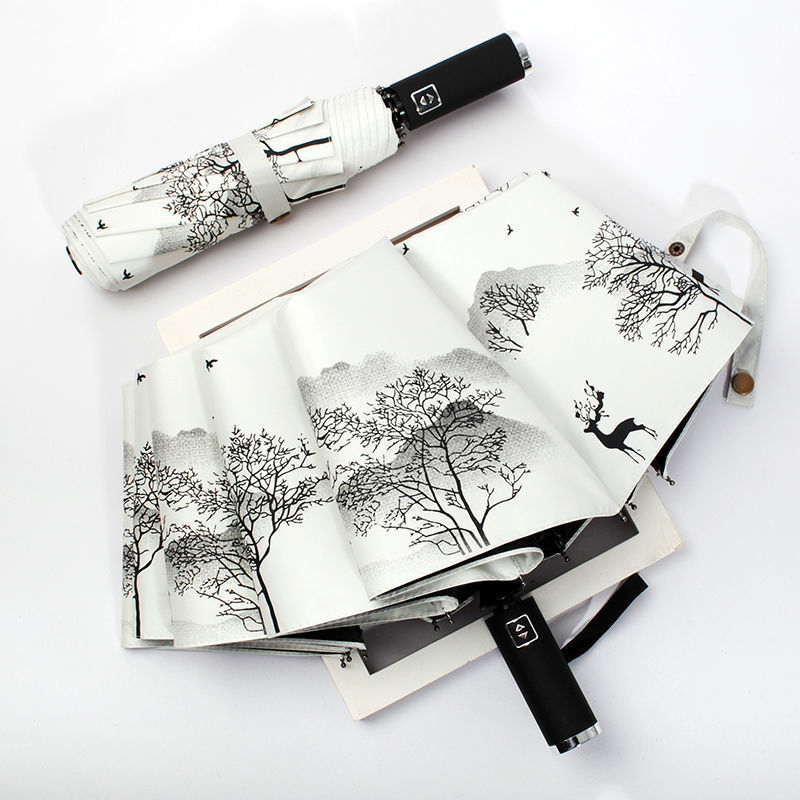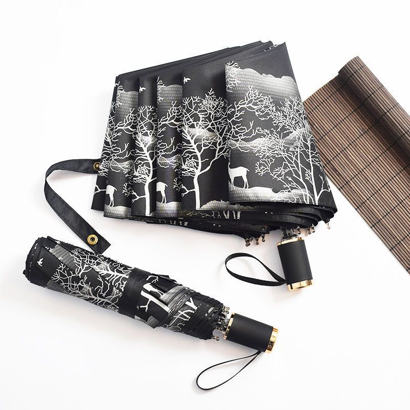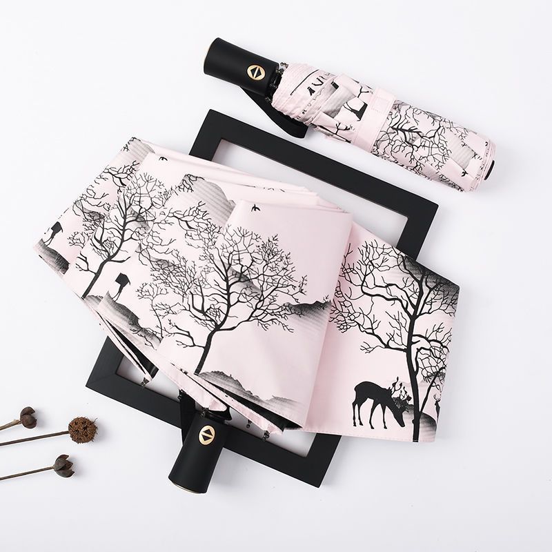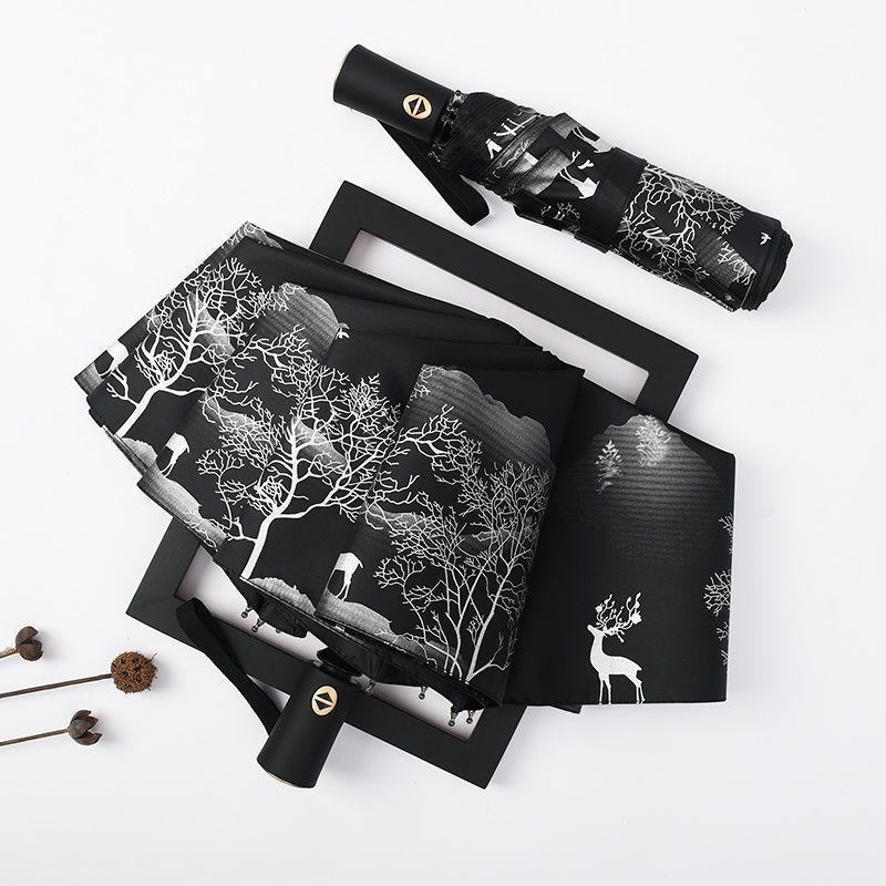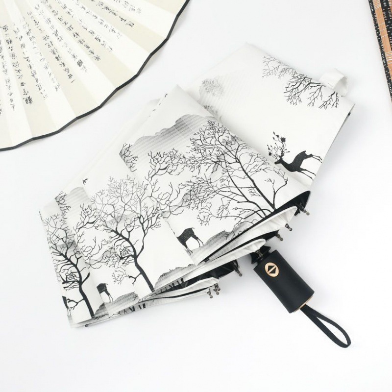 밸리 엘크 수묵화 고대 스타일 우산, 비가 오나 눈이 오나 접이식 자외선 차단 우산, 자동 확대 및 이중스토어 가기