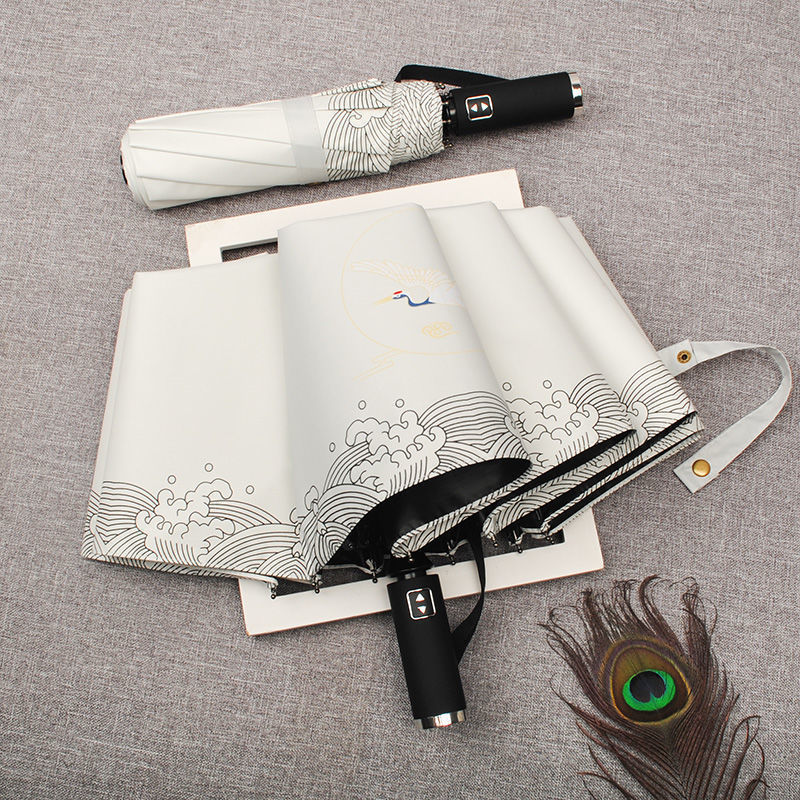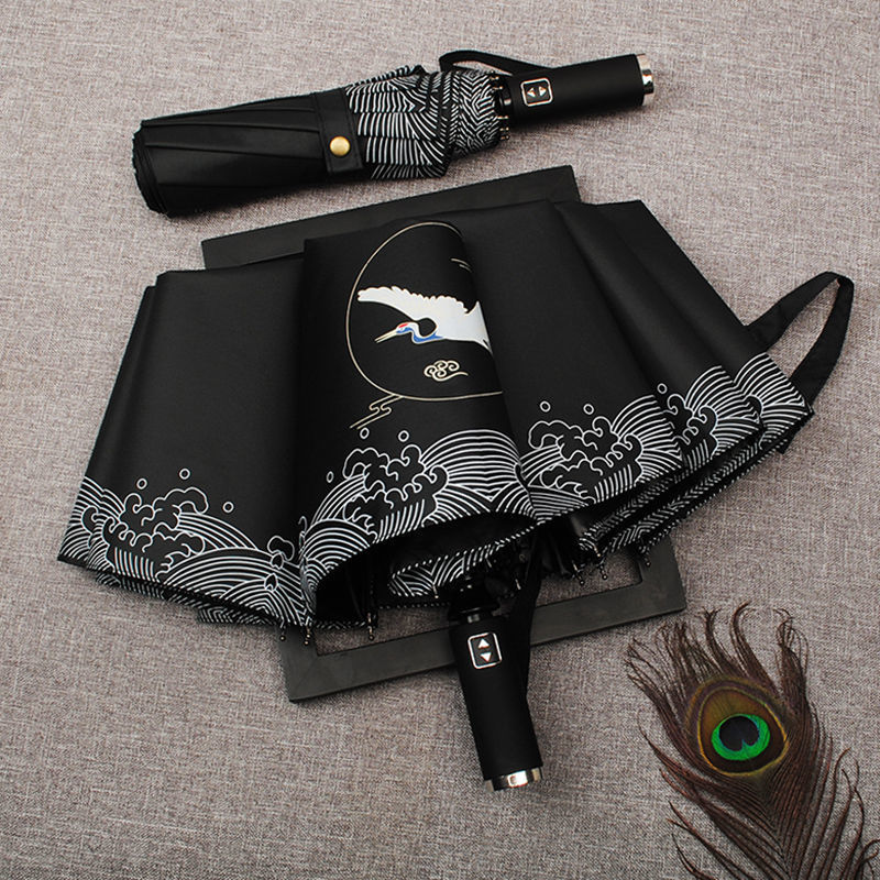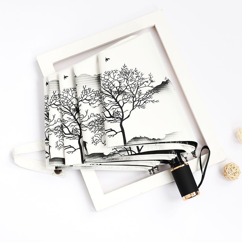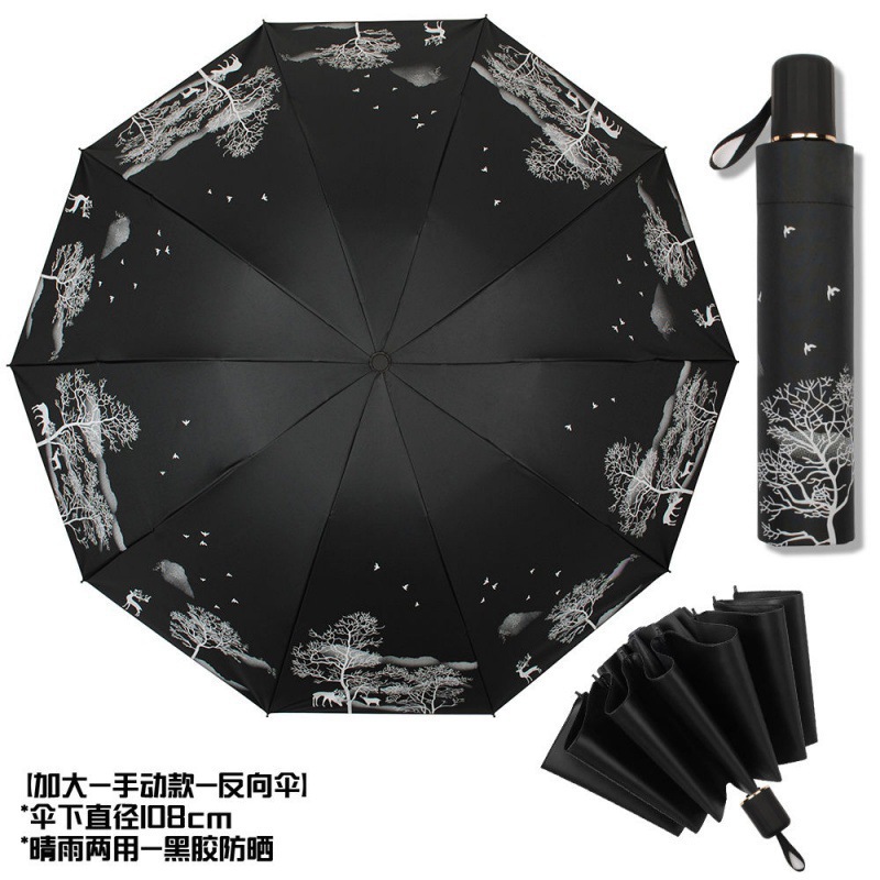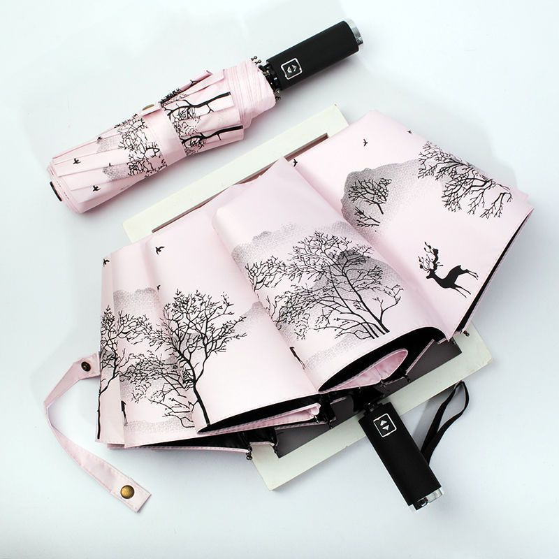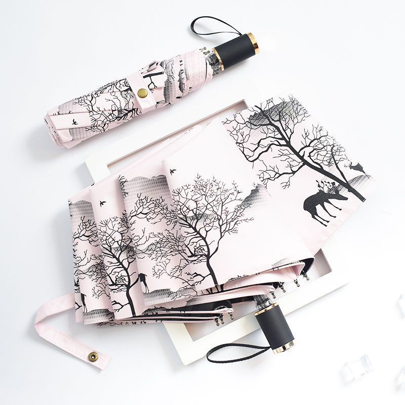 밸리 엘크 수묵화 고대 스타일 우산, 비가 오나 눈이 오나 접이식 자외선 차단 우산, 자동 확대 및 이중스토어 가기