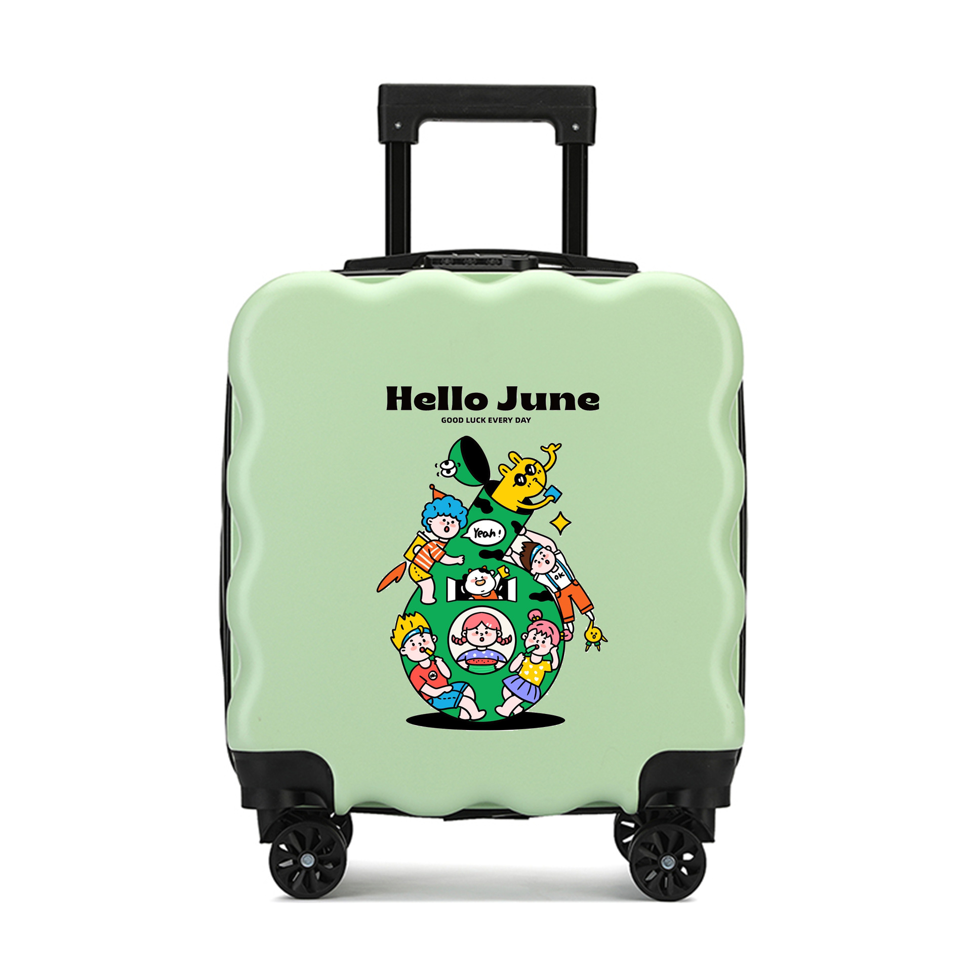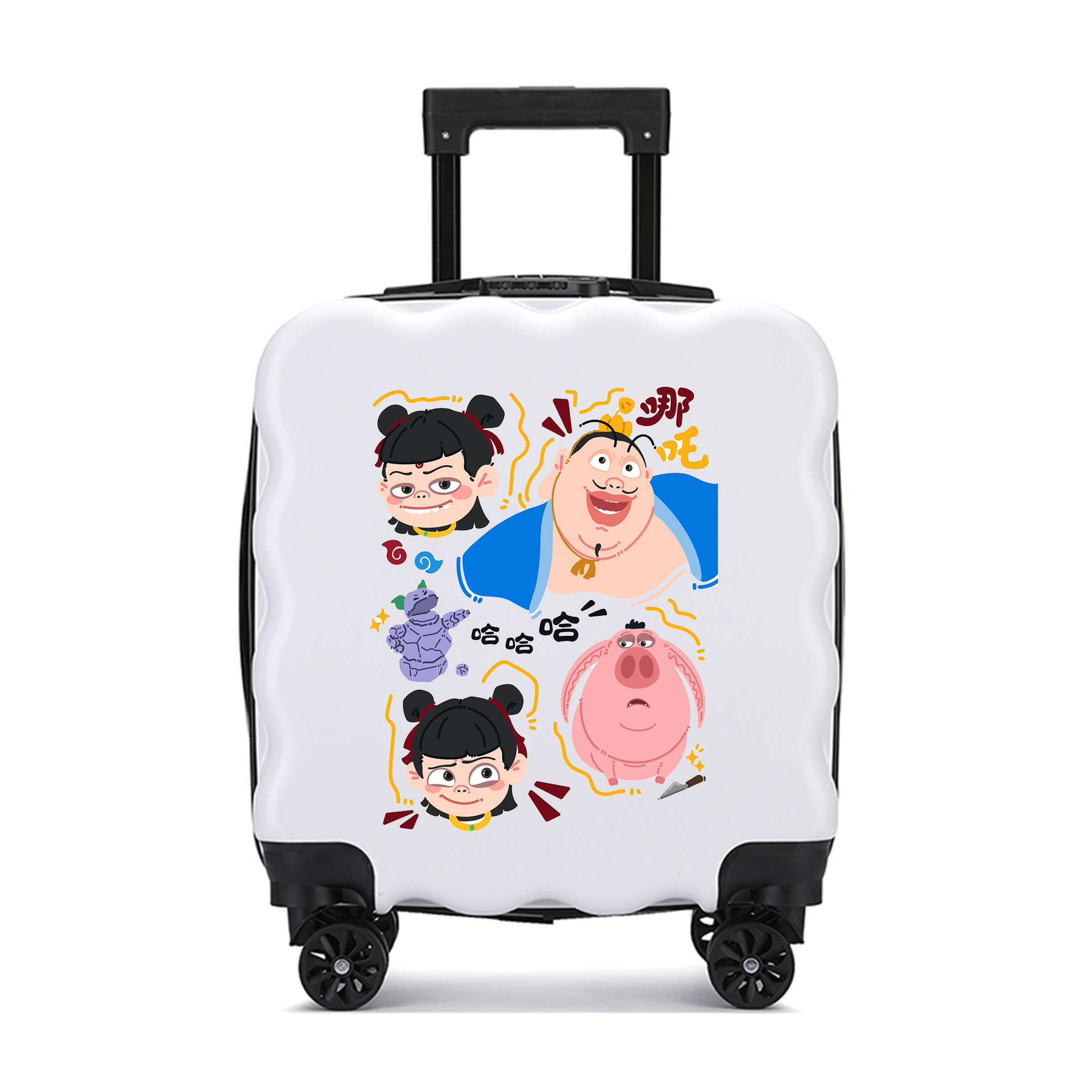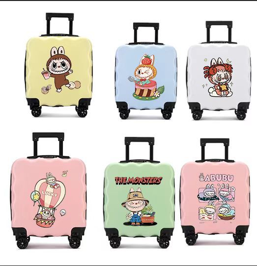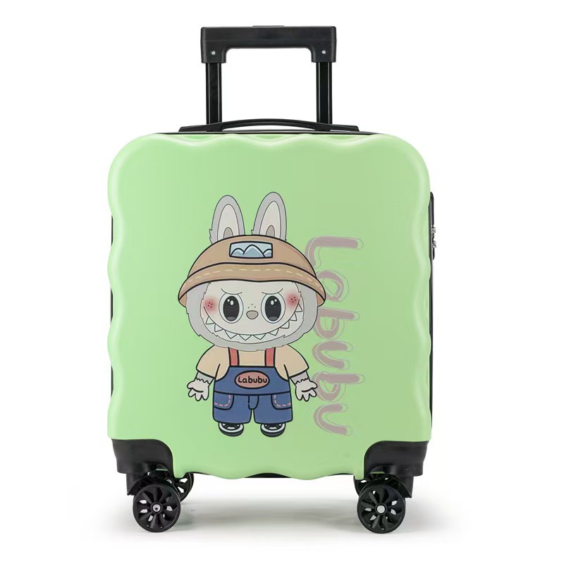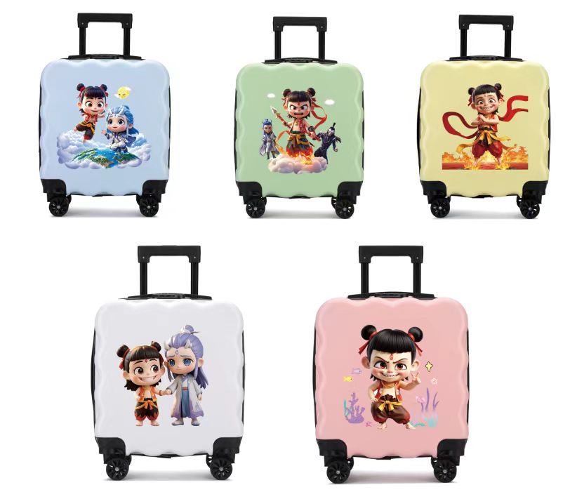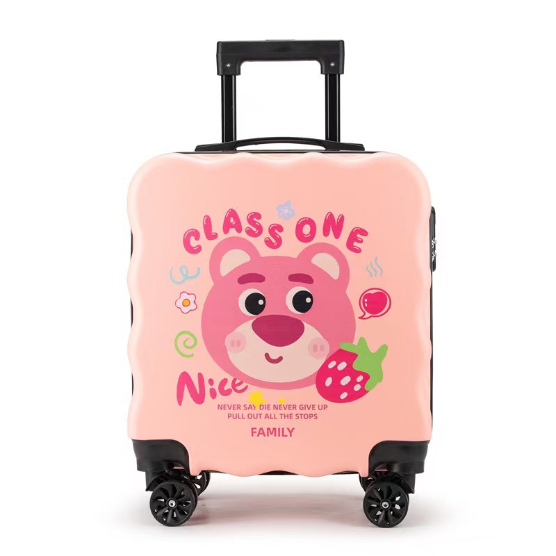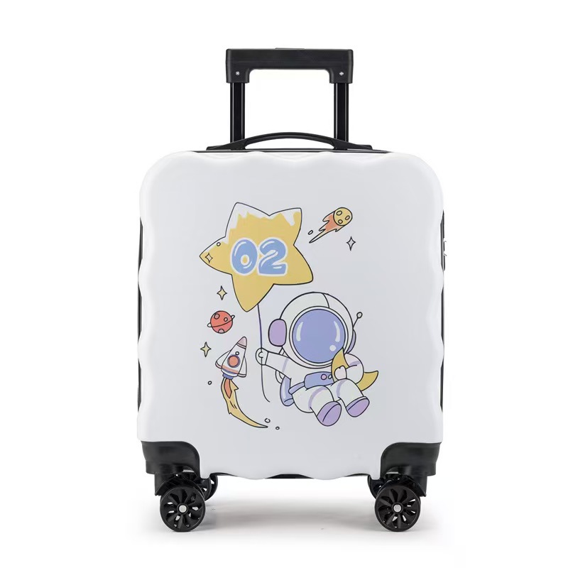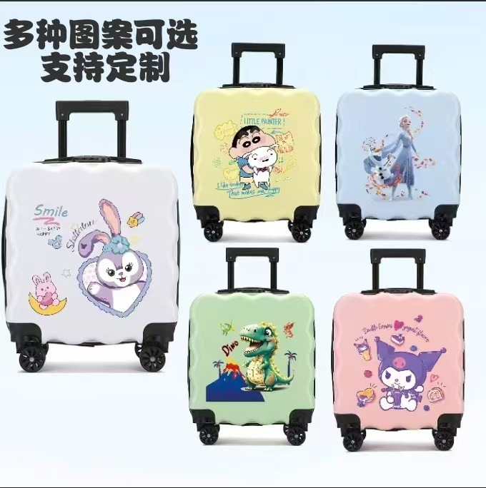 새로운 어린이 수하물 인쇄 가능한 로고 대용량 만화 귀여운 트롤리 케이스 유니버설 휠 잠금 가방