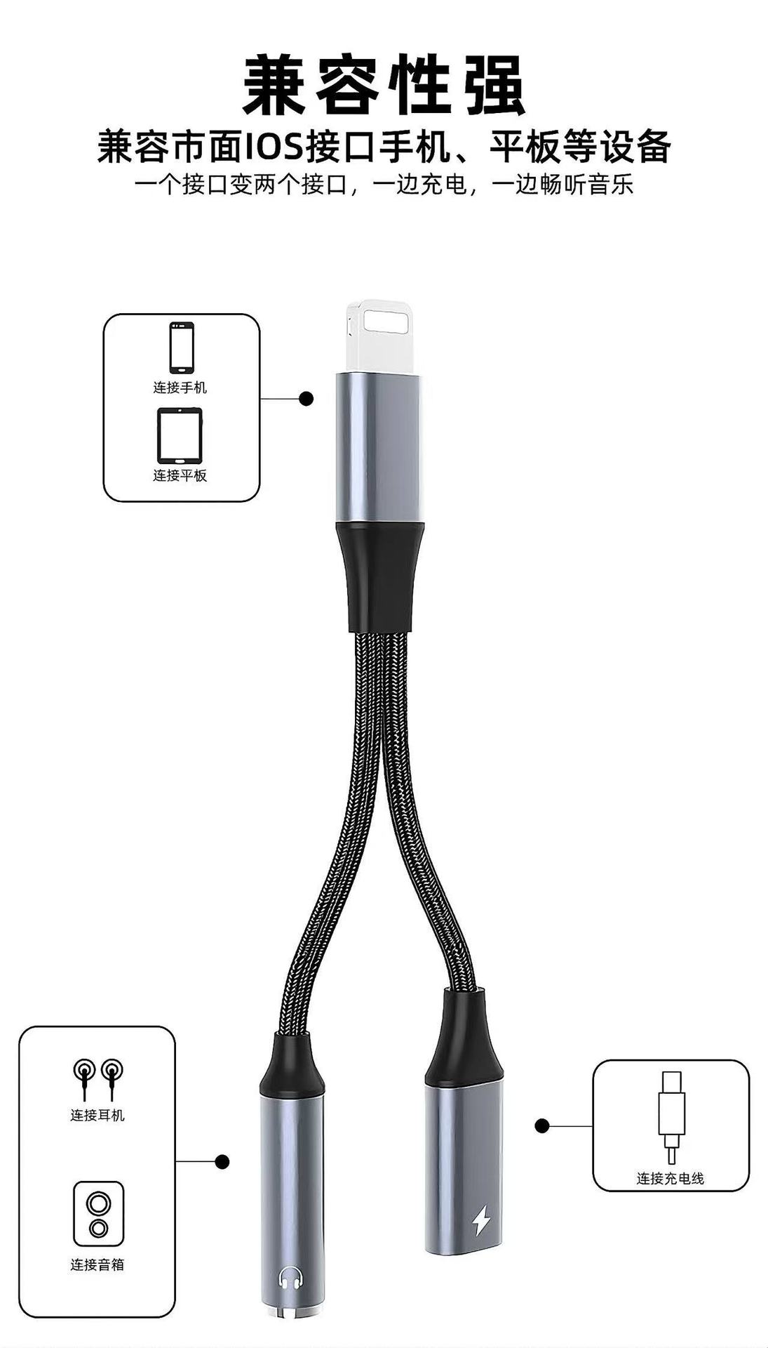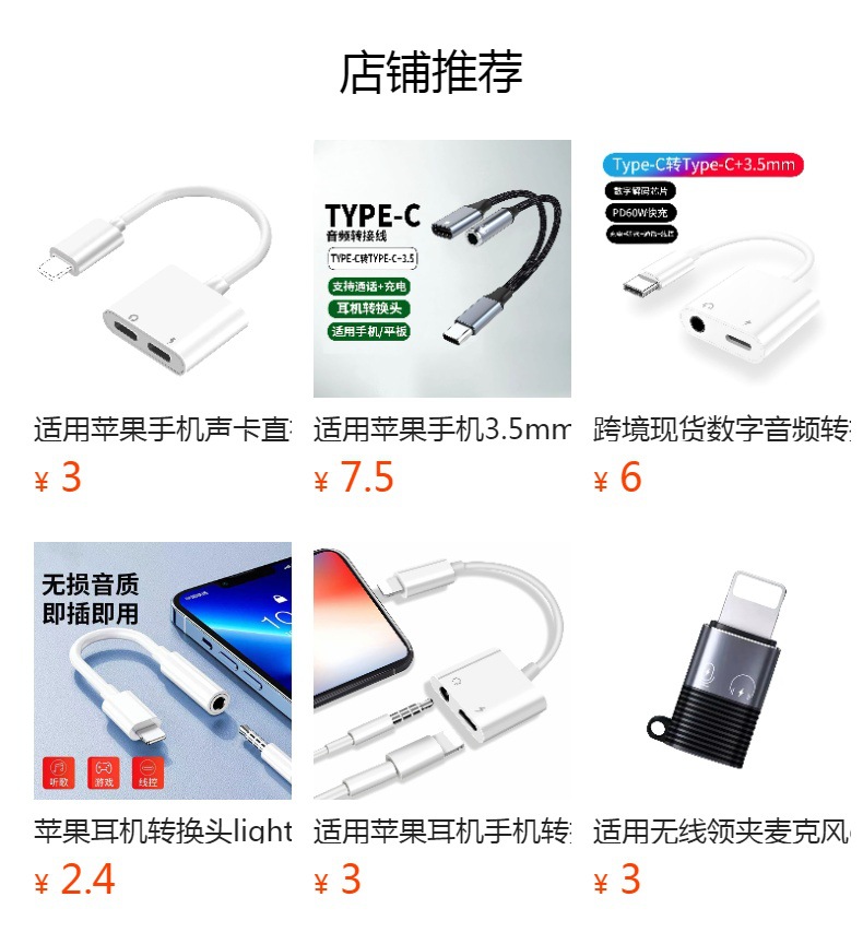 노래 2 대 1 라이브 사운드 카드 어댑터 일대일 컨버터 청취 충전에 적합 애플 휴대 전화 어댑터스토어 가기