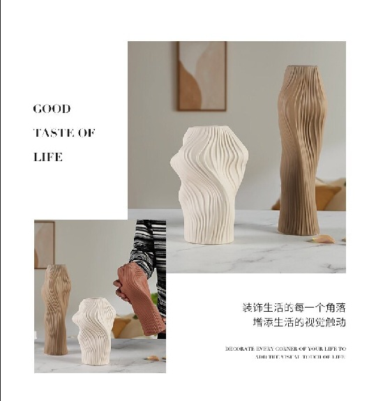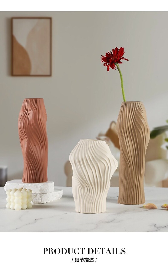 현대 미니멀 한 창조적 인 일반 불타는 세라믹 꽃병 거실 꽃 집 부드러운 장식 공예 장식품 도매