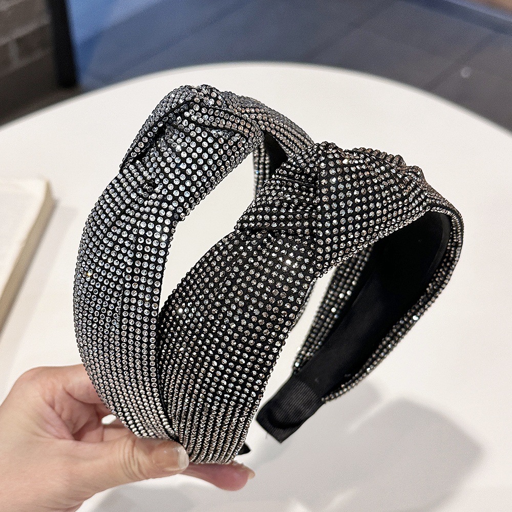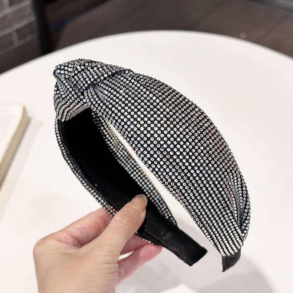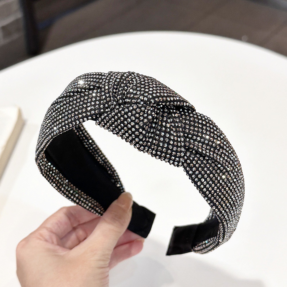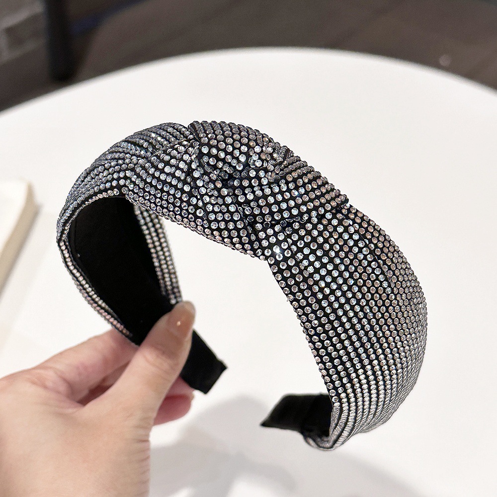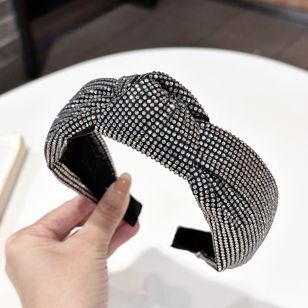 • 풀다이아몬드 크로스 매듭 헤어밴드 [투명 그레이 다이아몬드]