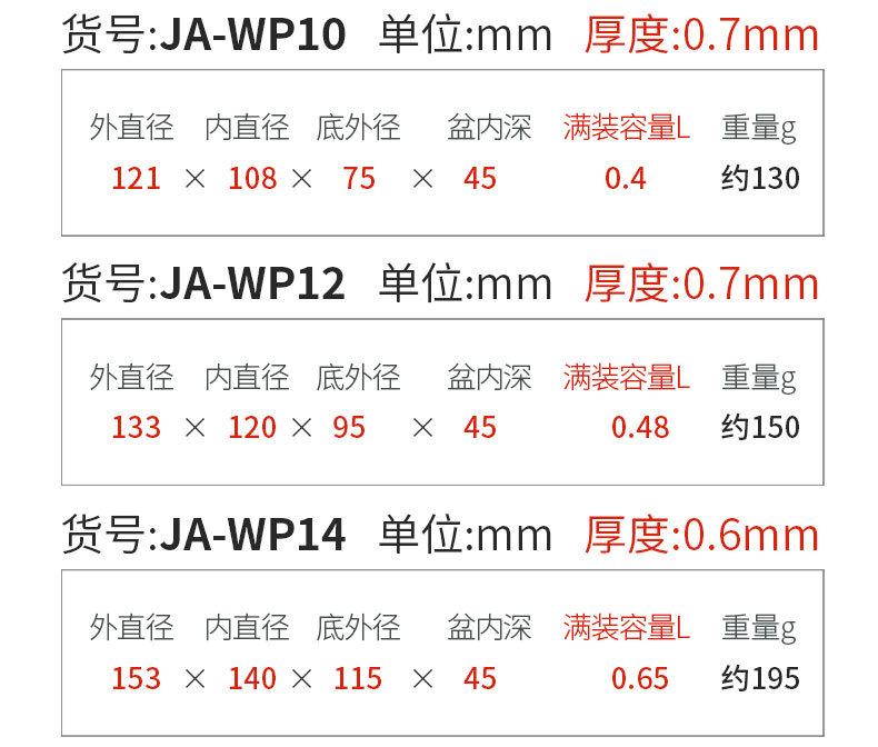 • 내경 10/12/14cm 3종세트 JA-WP101214