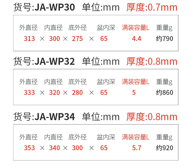 • 내경 26/28/30cm 3종세트 JA-WP262830