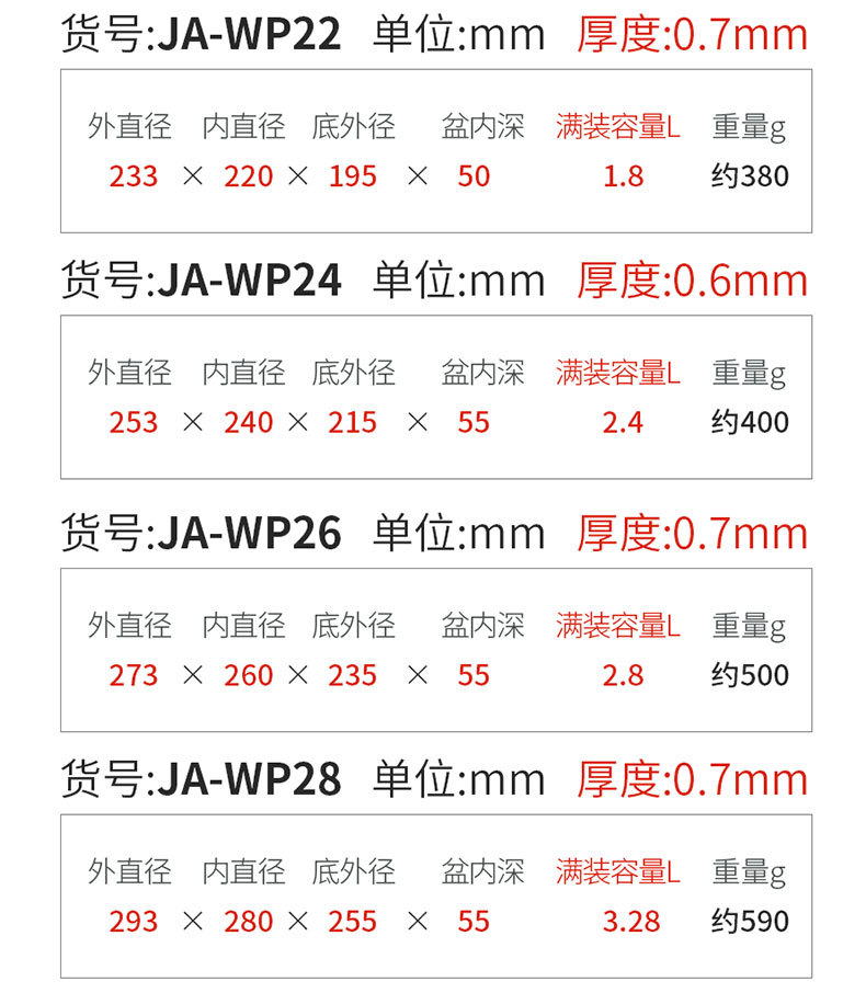 • 내경 16/20/24/28cm 4종 세트 JA-WP16202428