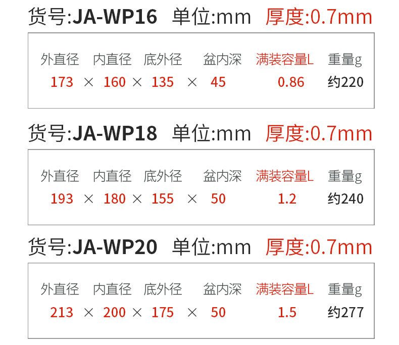 • 내경 16/18/20cm 3종세트 JA-WP161820