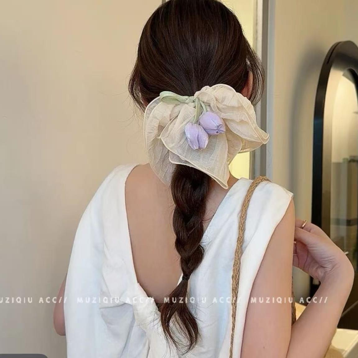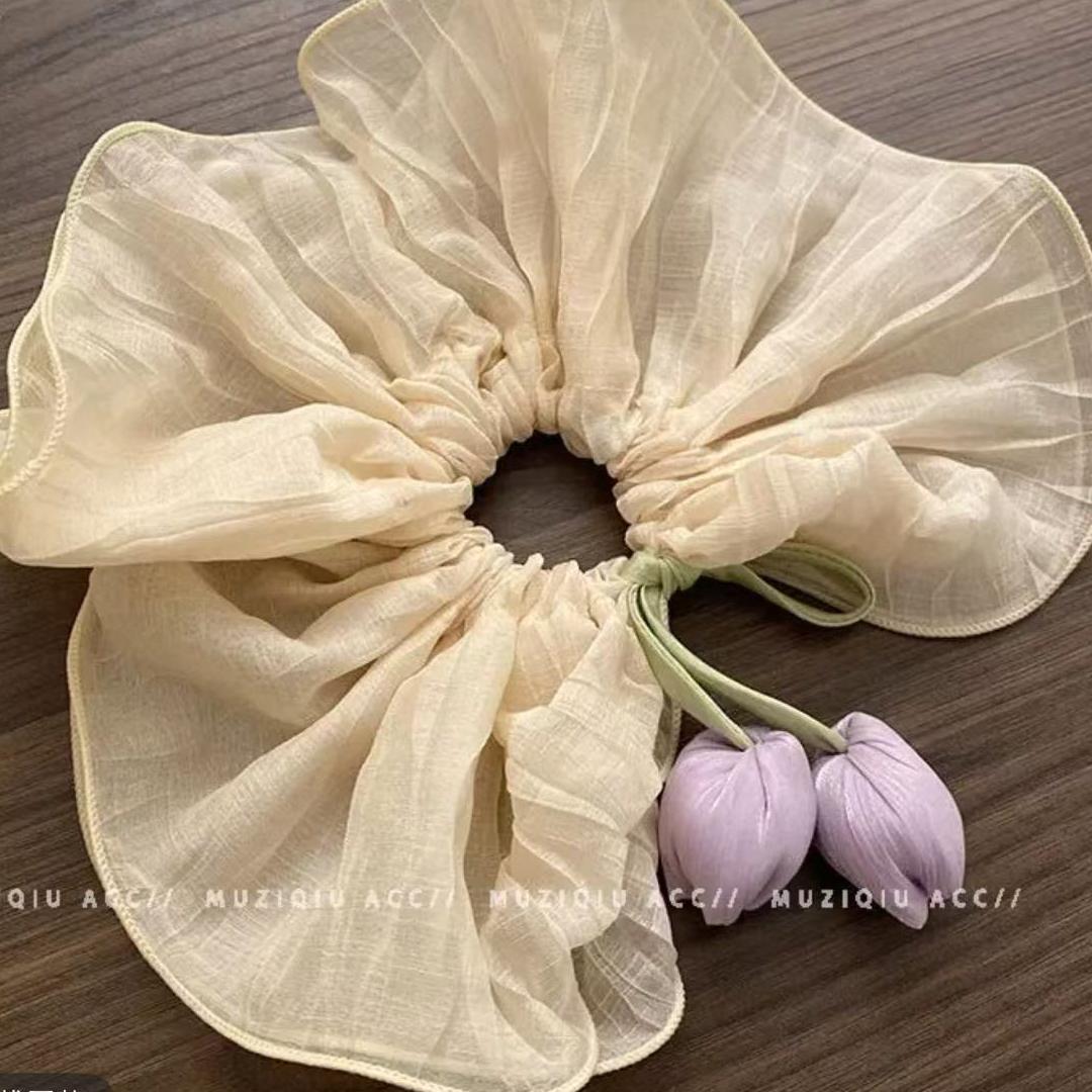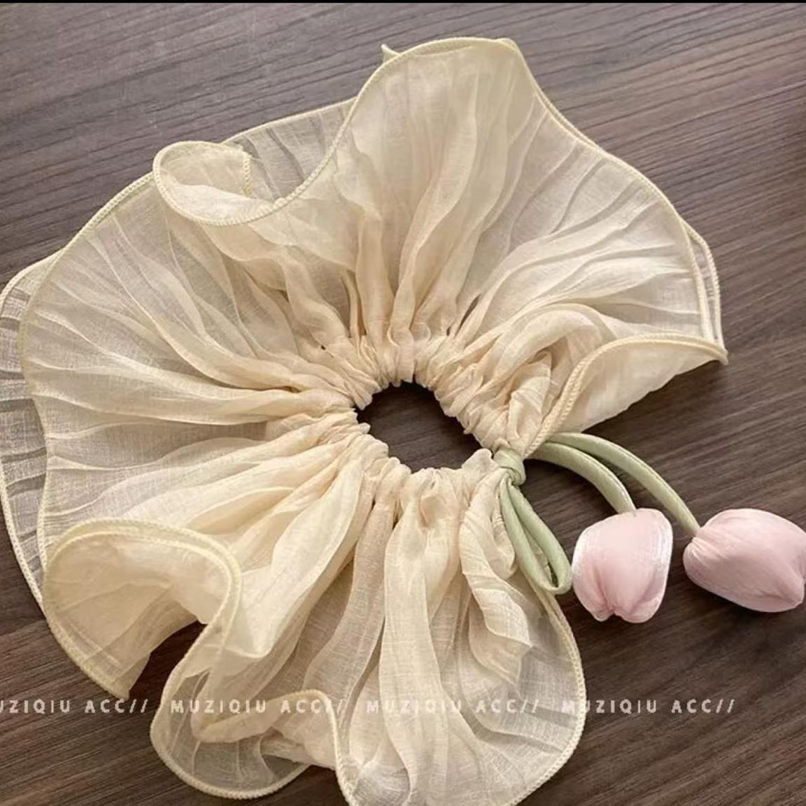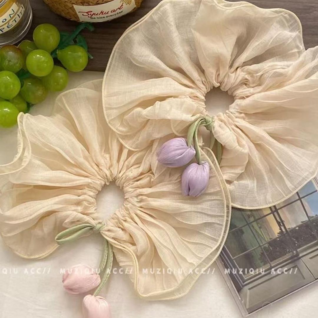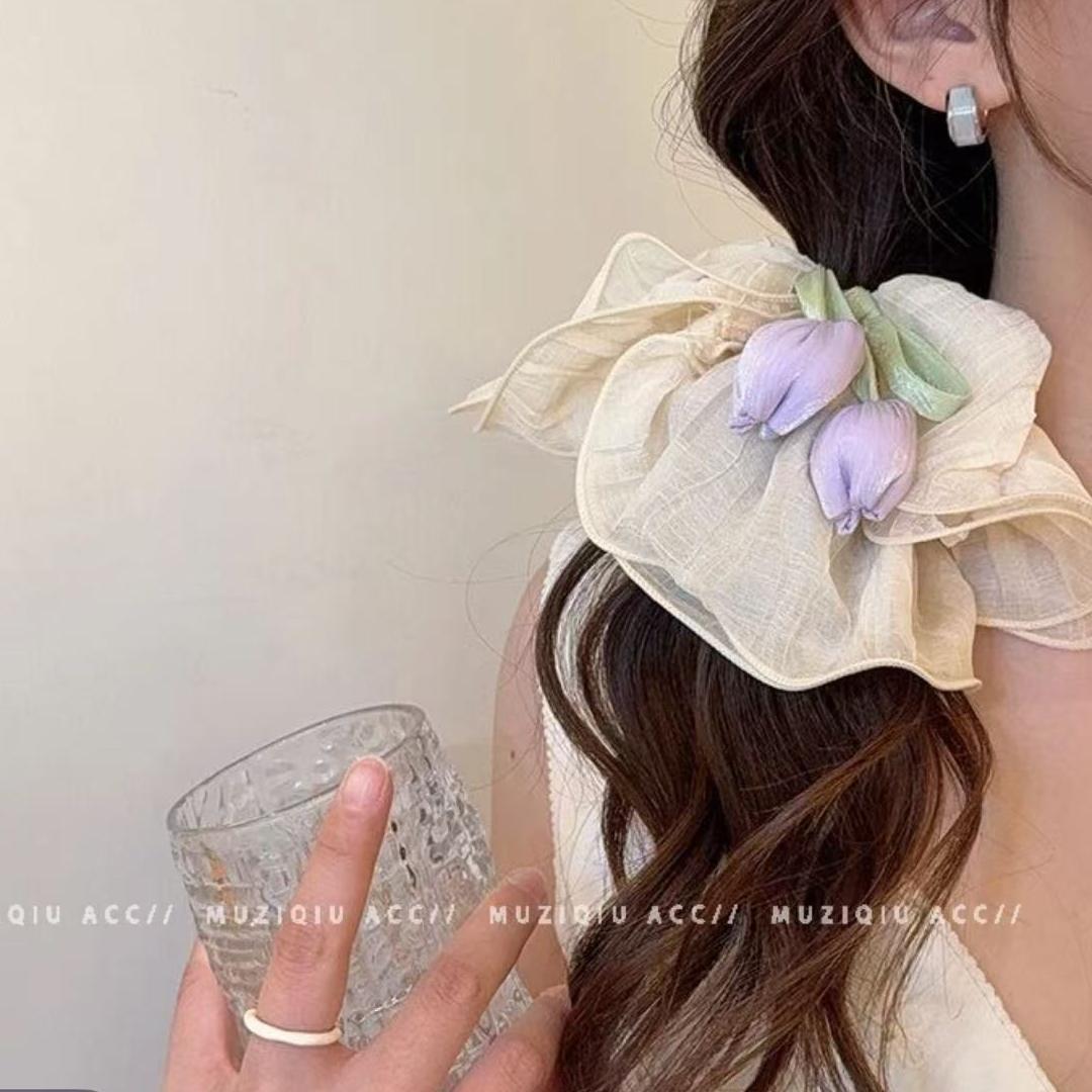 대형 튤립 꽃 대형 내장 헤어 링 여성 하이 엔드 스위트 스트랩 헤어 로프 타이 로우 페이테일 볼 헤드 로프스토어 가기
