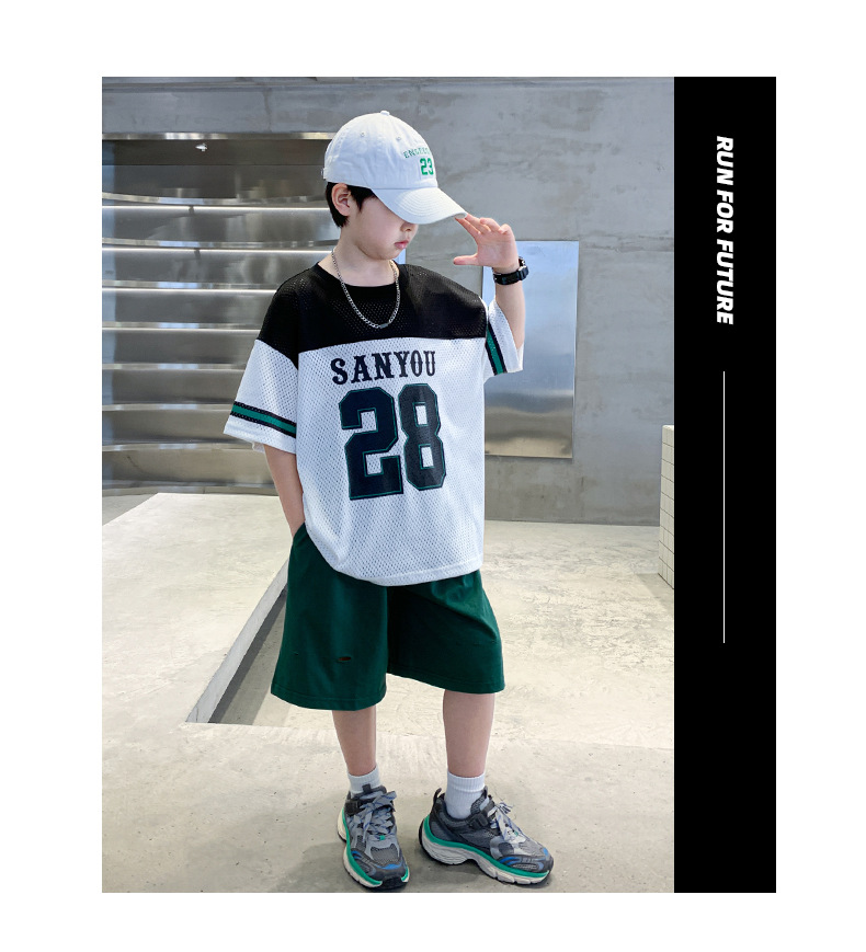 어린이 의류 소년 여름 짧은 소매 세트 2025 새로운 여름 어린이 빠른 건조 여름 스포츠 공 의류 도매