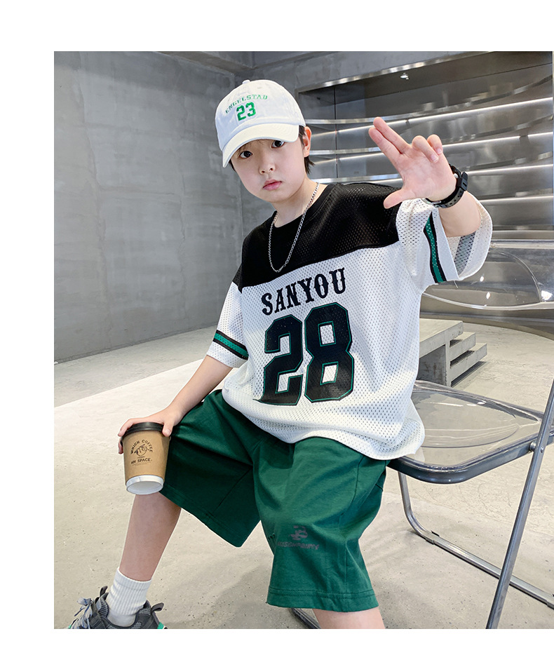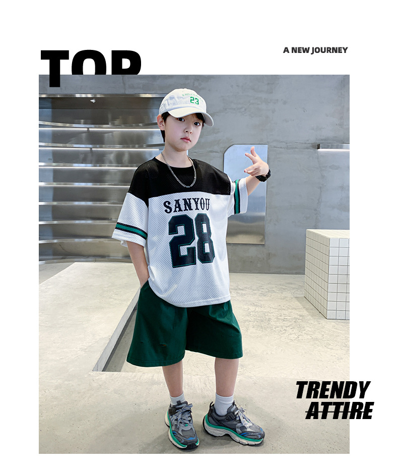어린이 의류 소년 여름 짧은 소매 세트 2025 새로운 여름 어린이 빠른 건조 여름 스포츠 공 의류 도매스토어 가기