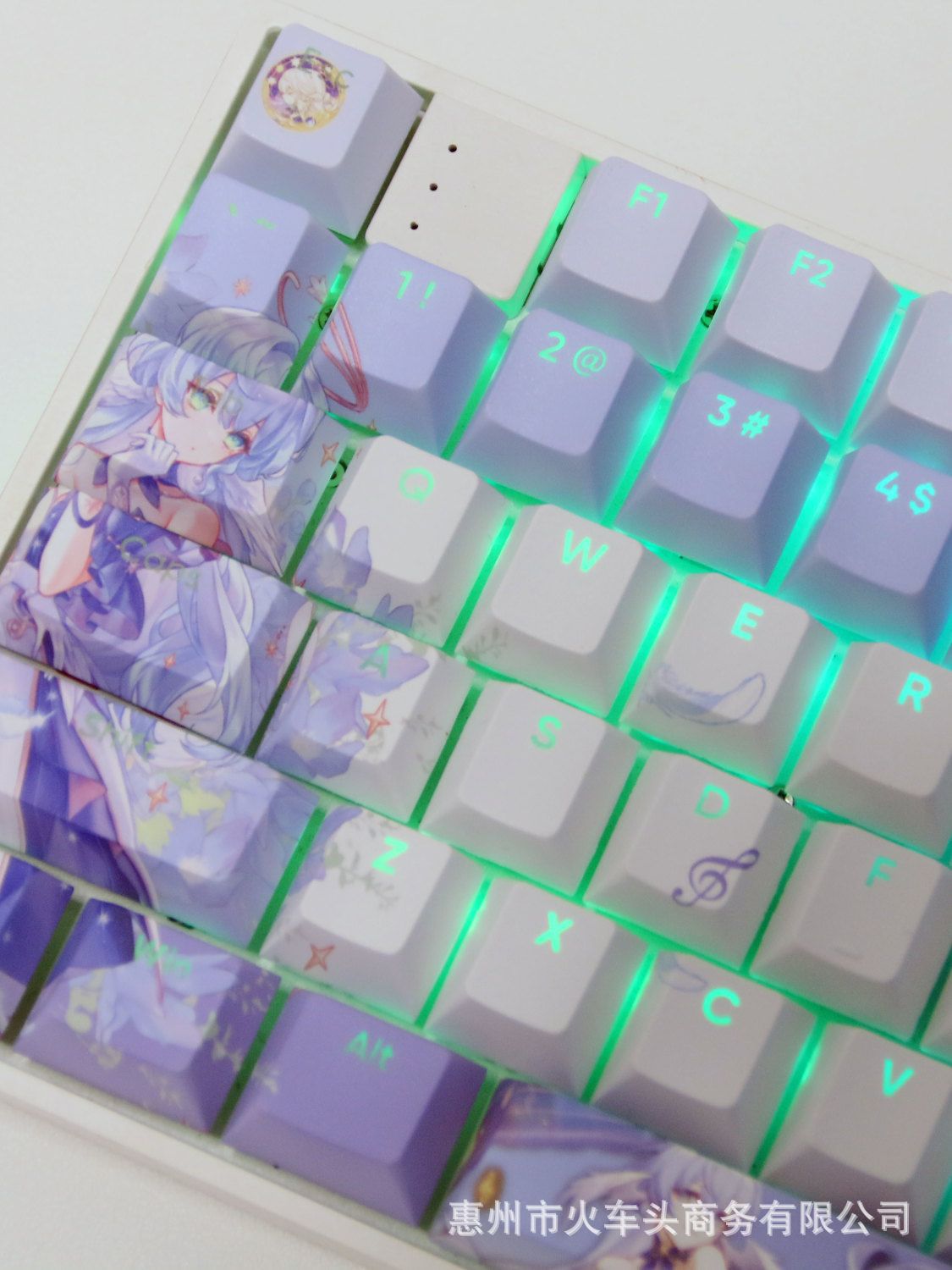 로빈 키 캡은 빛 전송 승화 PBT 소재 2 차 아내 원래 공장 측면 새겨진 빛 전송 보라색스토어 가기