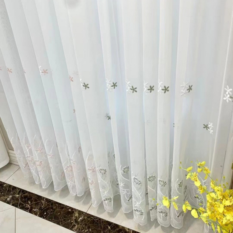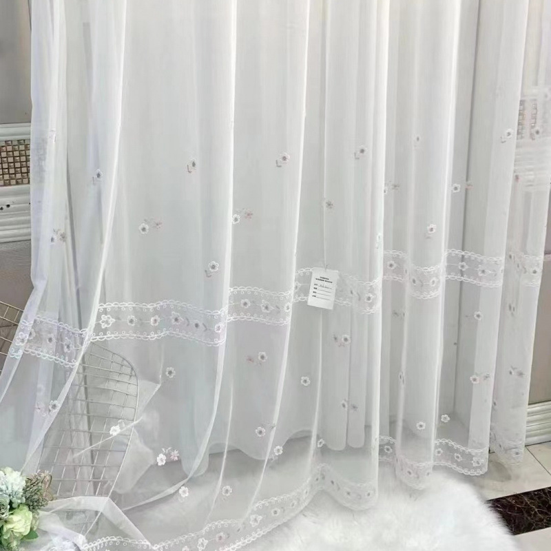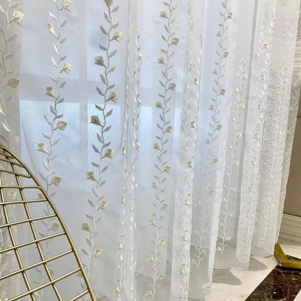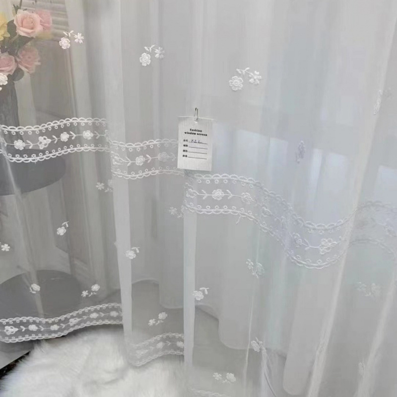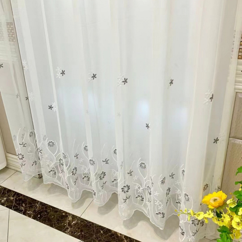 흰색 투명 자수 거즈 커튼 새 스타일 발코니 거실 침실 베이 창 커튼 커즈 커튼 창 화면