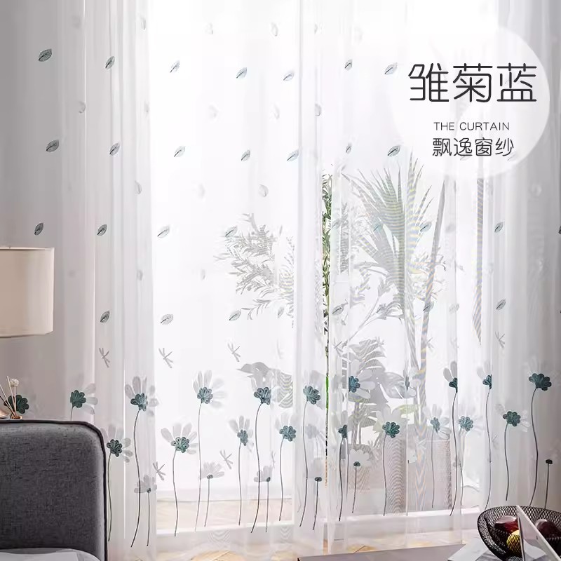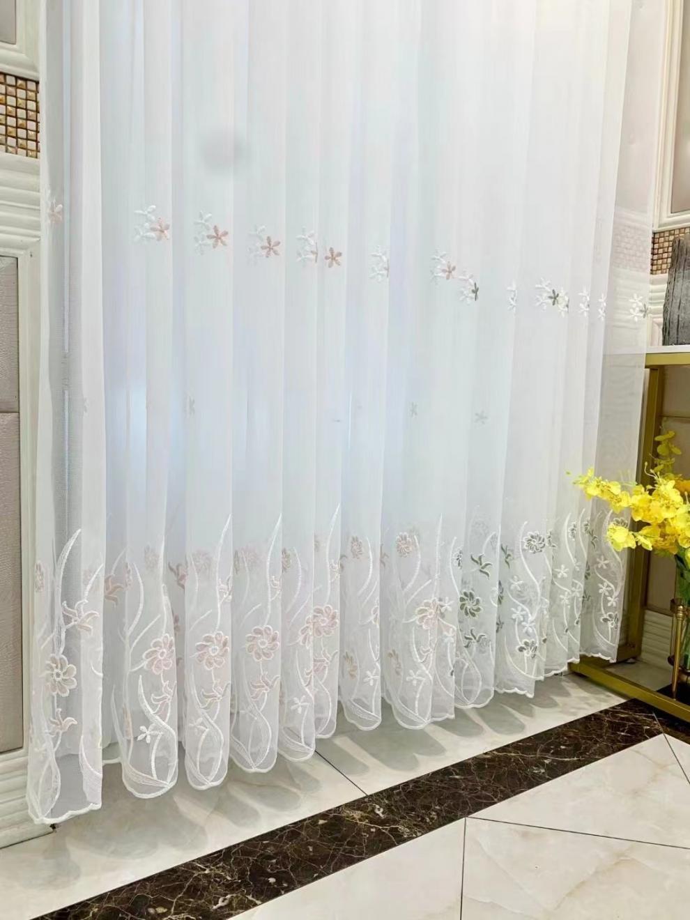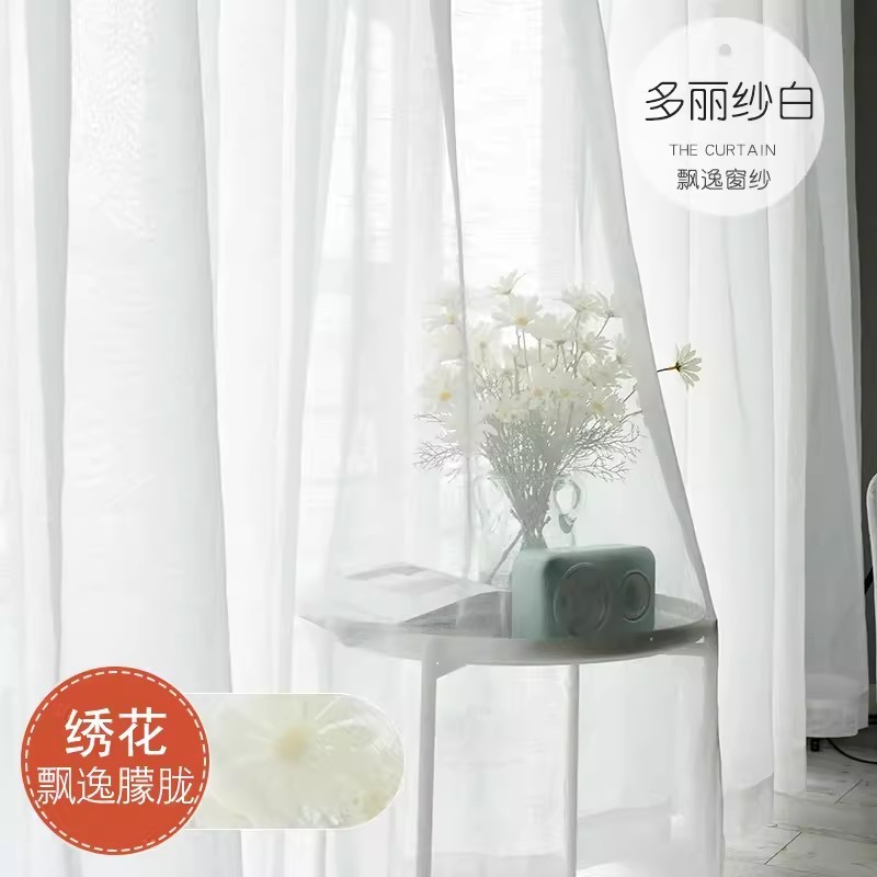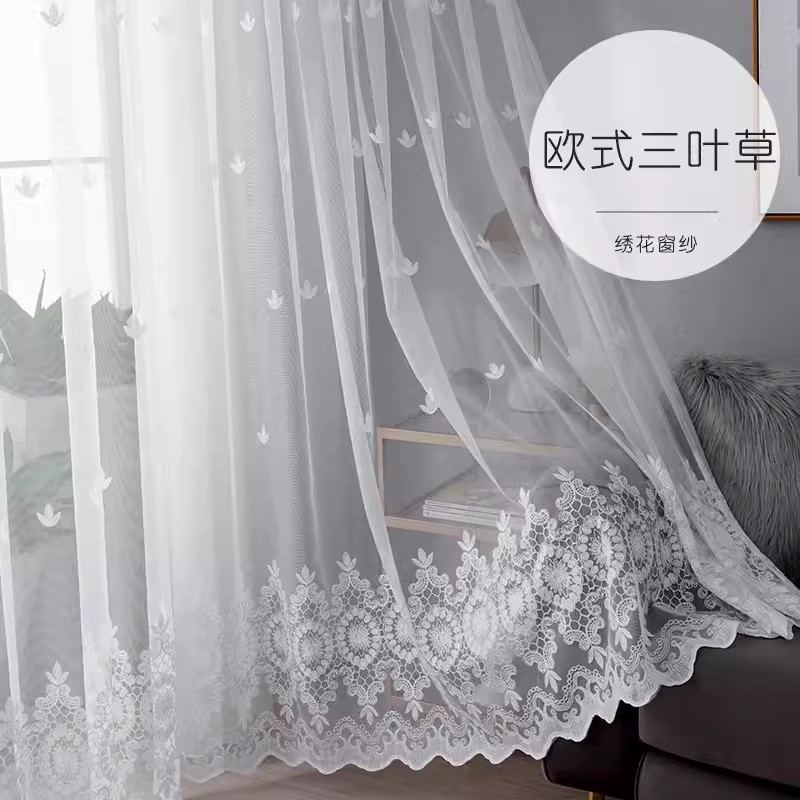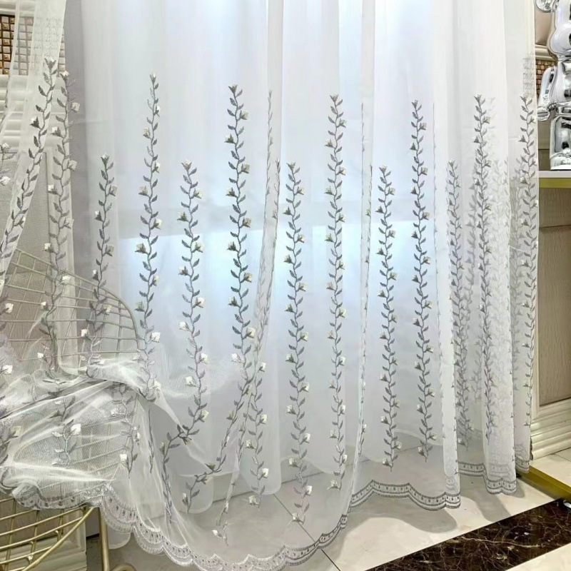 흰색 투명 자수 거즈 커튼 새 스타일 발코니 거실 침실 베이 창 커튼 커즈 커튼 창 화면