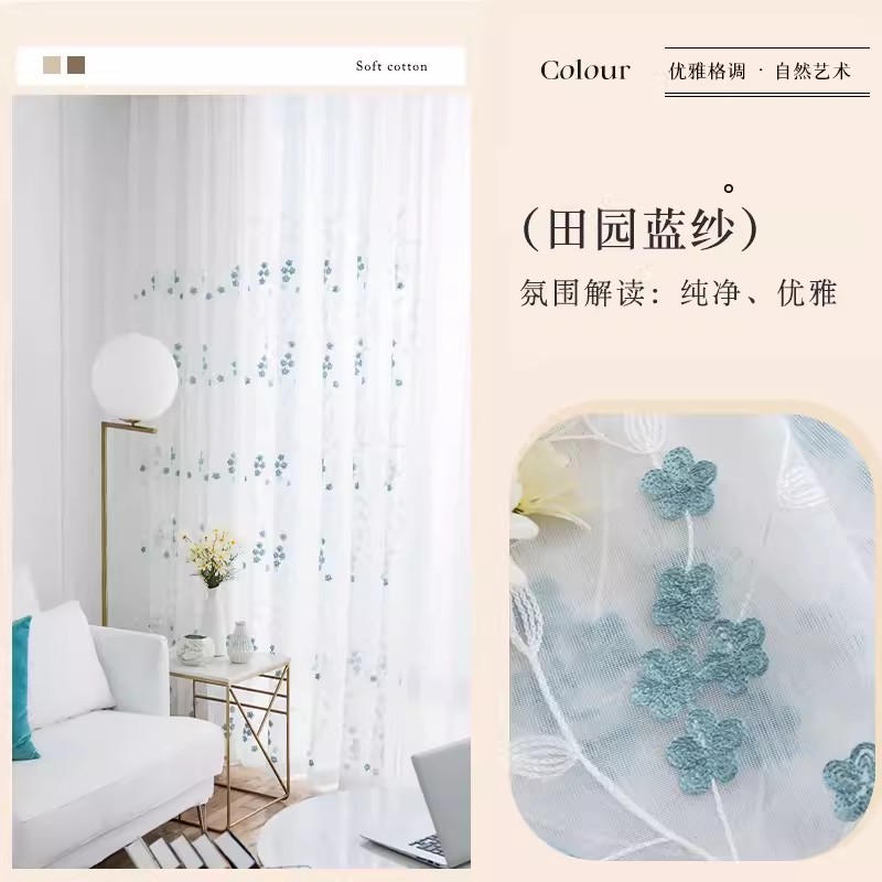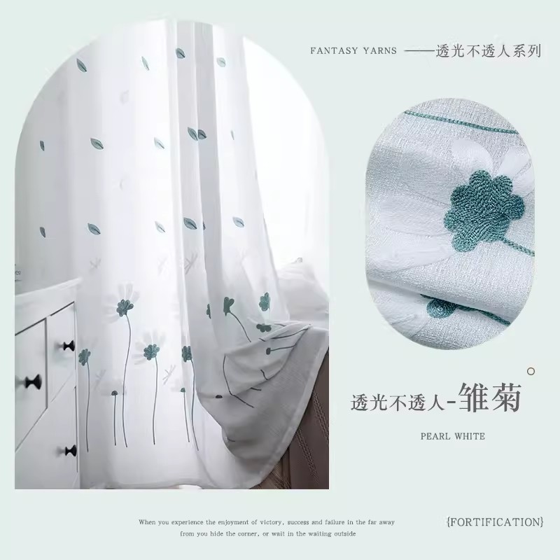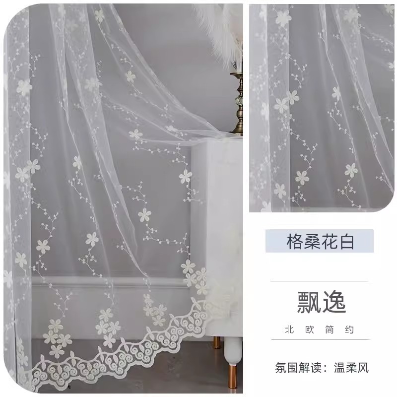 흰색 투명 자수 거즈 커튼 새 스타일 발코니 거실 침실 베이 창 커튼 커즈 커튼 창 화면스토어 가기