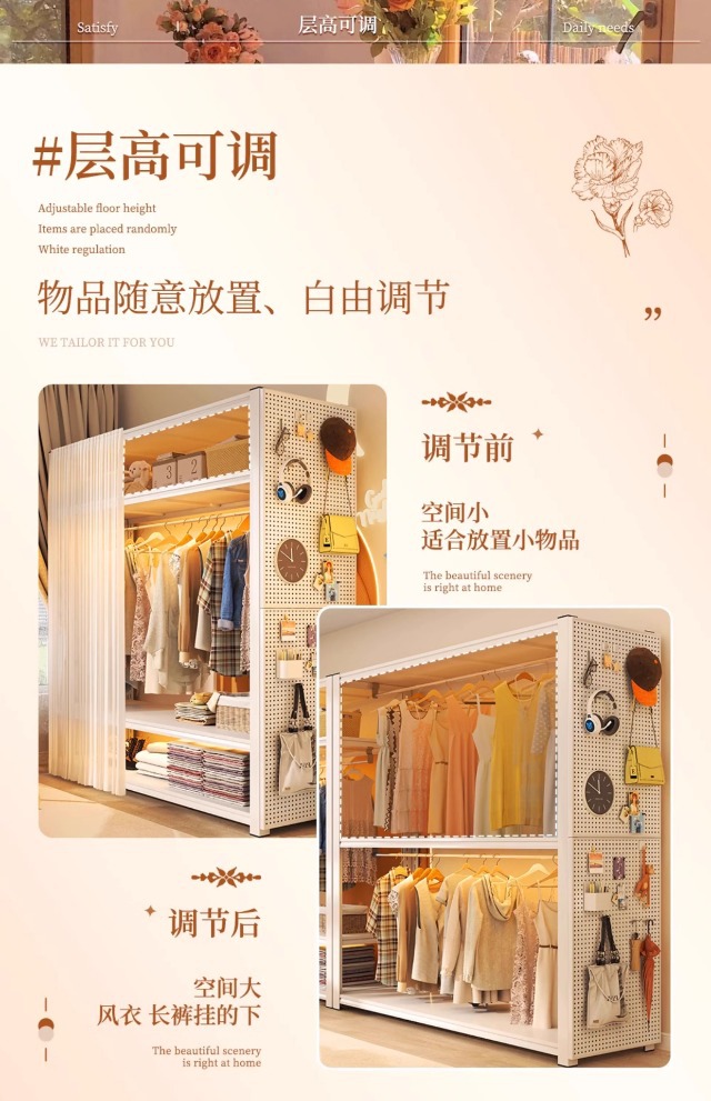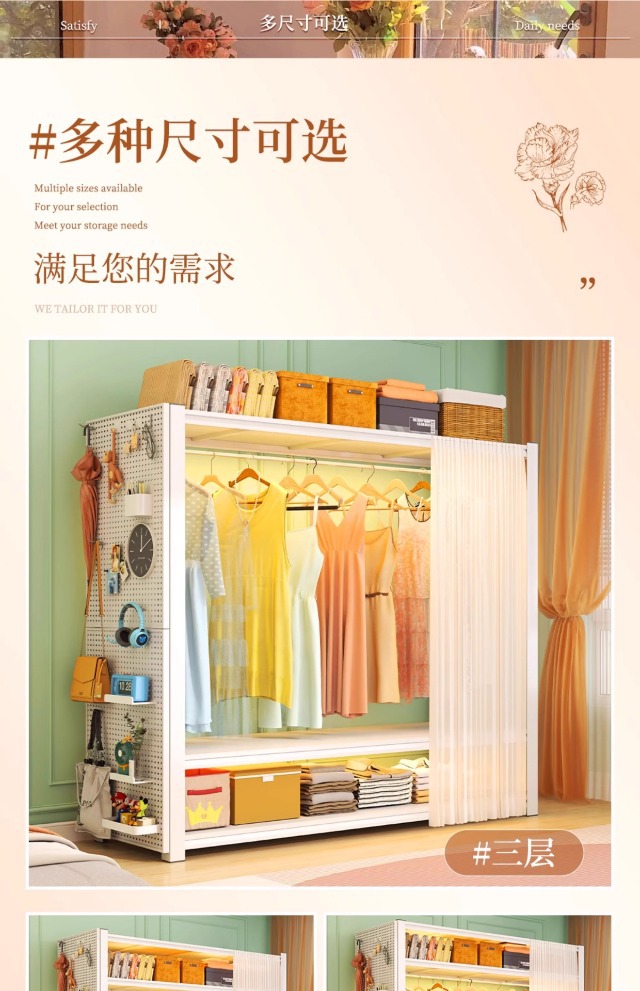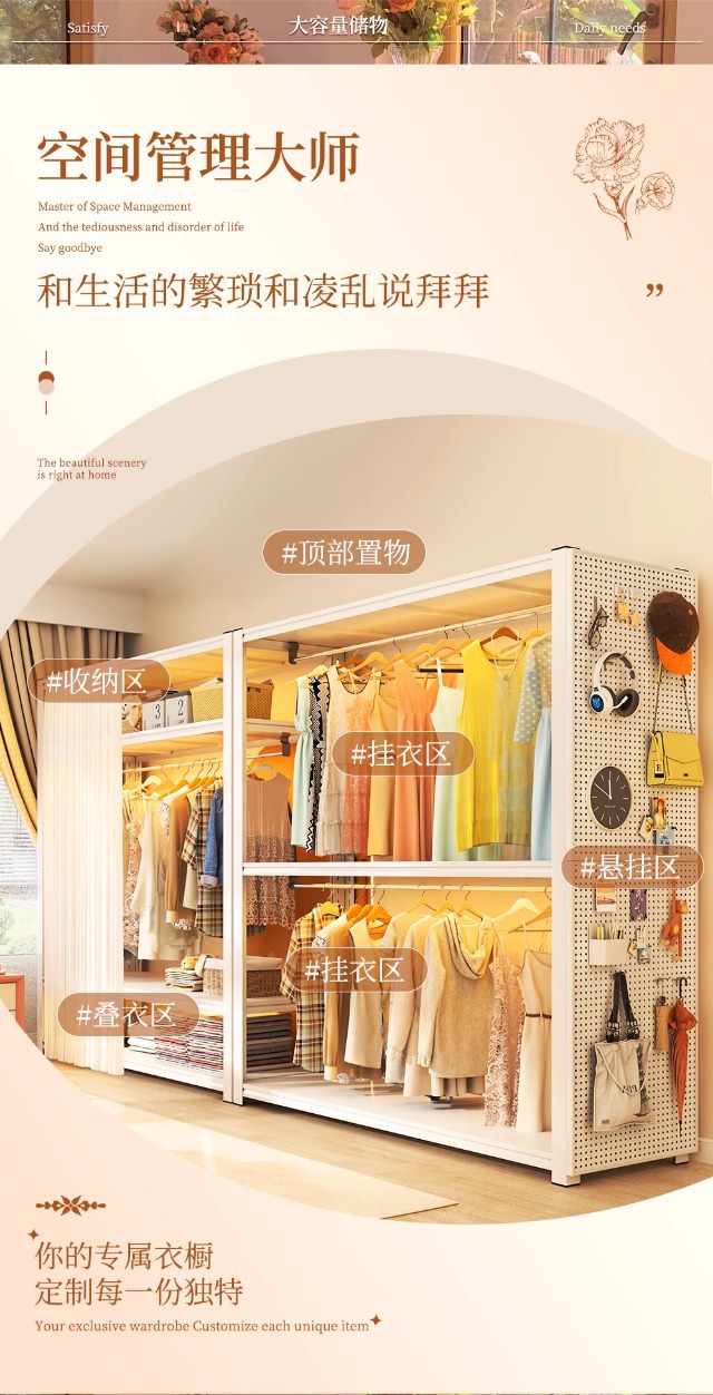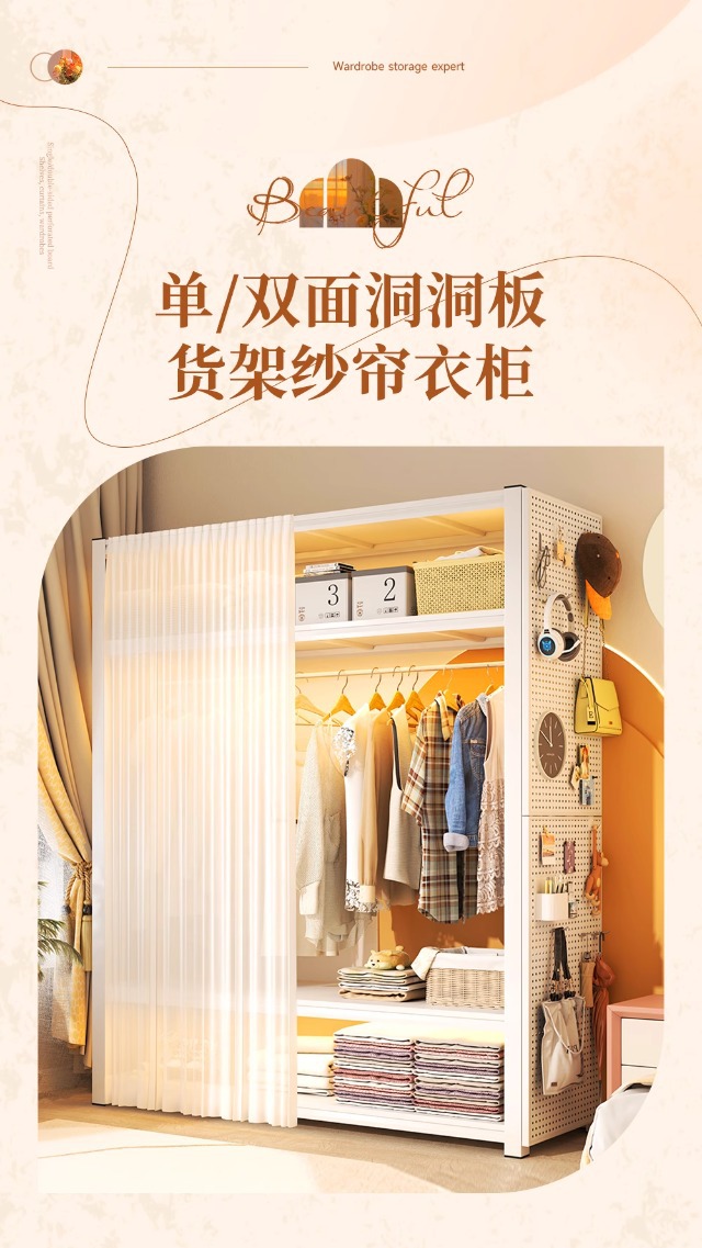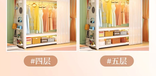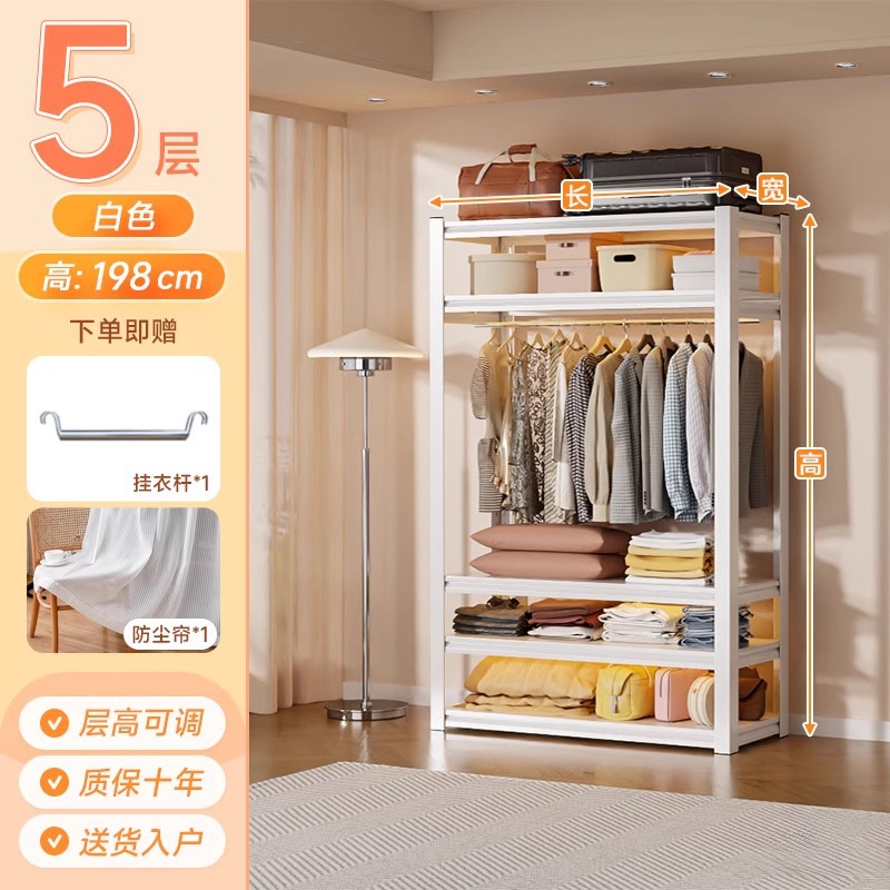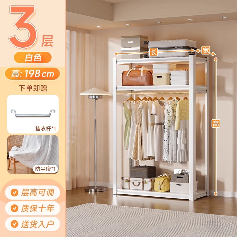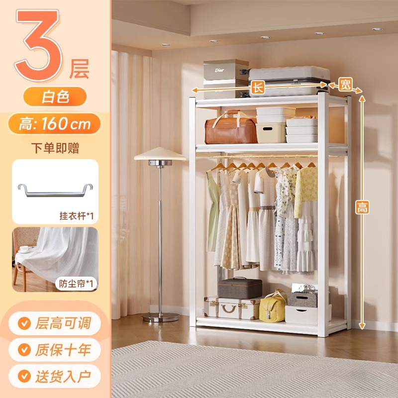 스토리지 랙 옷장 스틸 오픈 행거 간단한 조립 아파트 임대실 기숙사 옷장 다층 선반