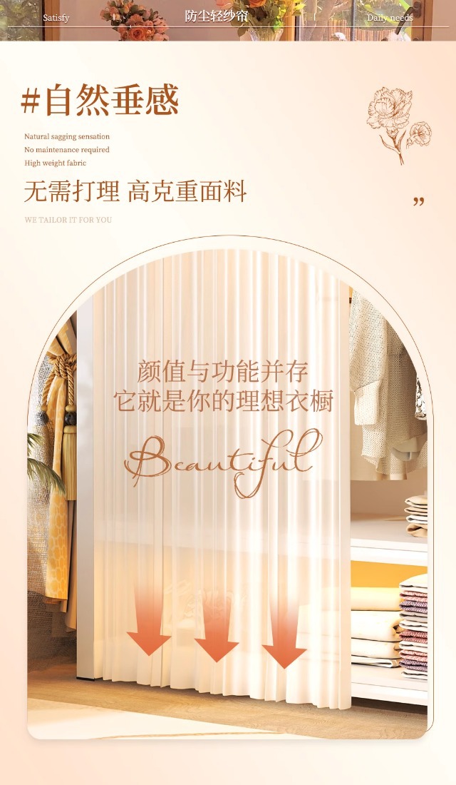 • 옷장 양쪽에 방진 커튼이 필요한 경우 고객 서비스에 문의하여 구매하세요.