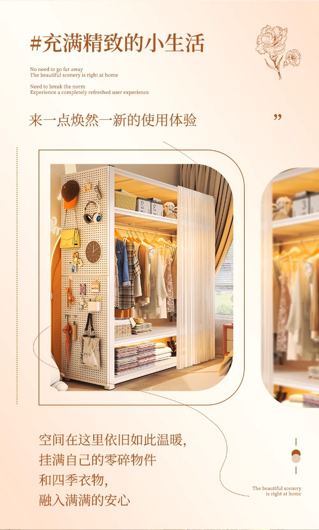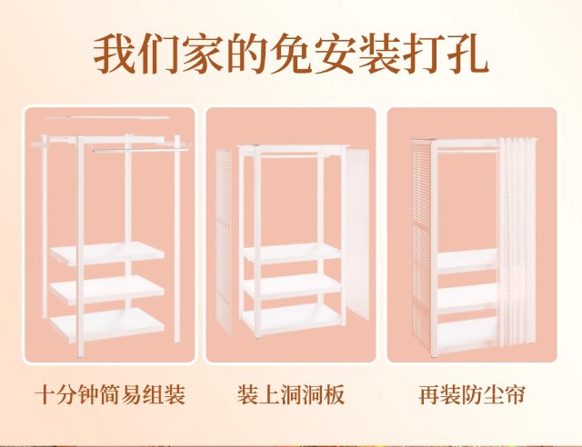 스토리지 랙 옷장 스틸 오픈 행거 간단한 조립 아파트 임대실 기숙사 옷장 다층 선반스토어 가기