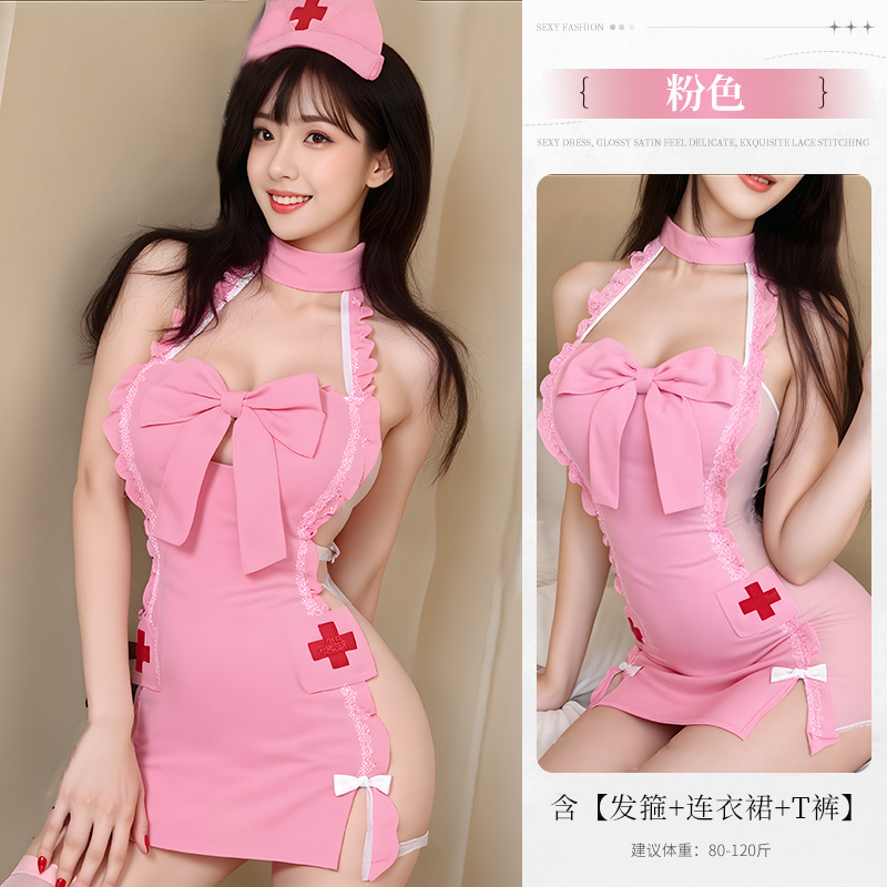 섹시한 섹시 란제리 순수한 욕망 간호사 유니폼 유혹 잠옷 침대에서 벗을 필요 없음 잠옷 플러스 사이즈 세트 2501