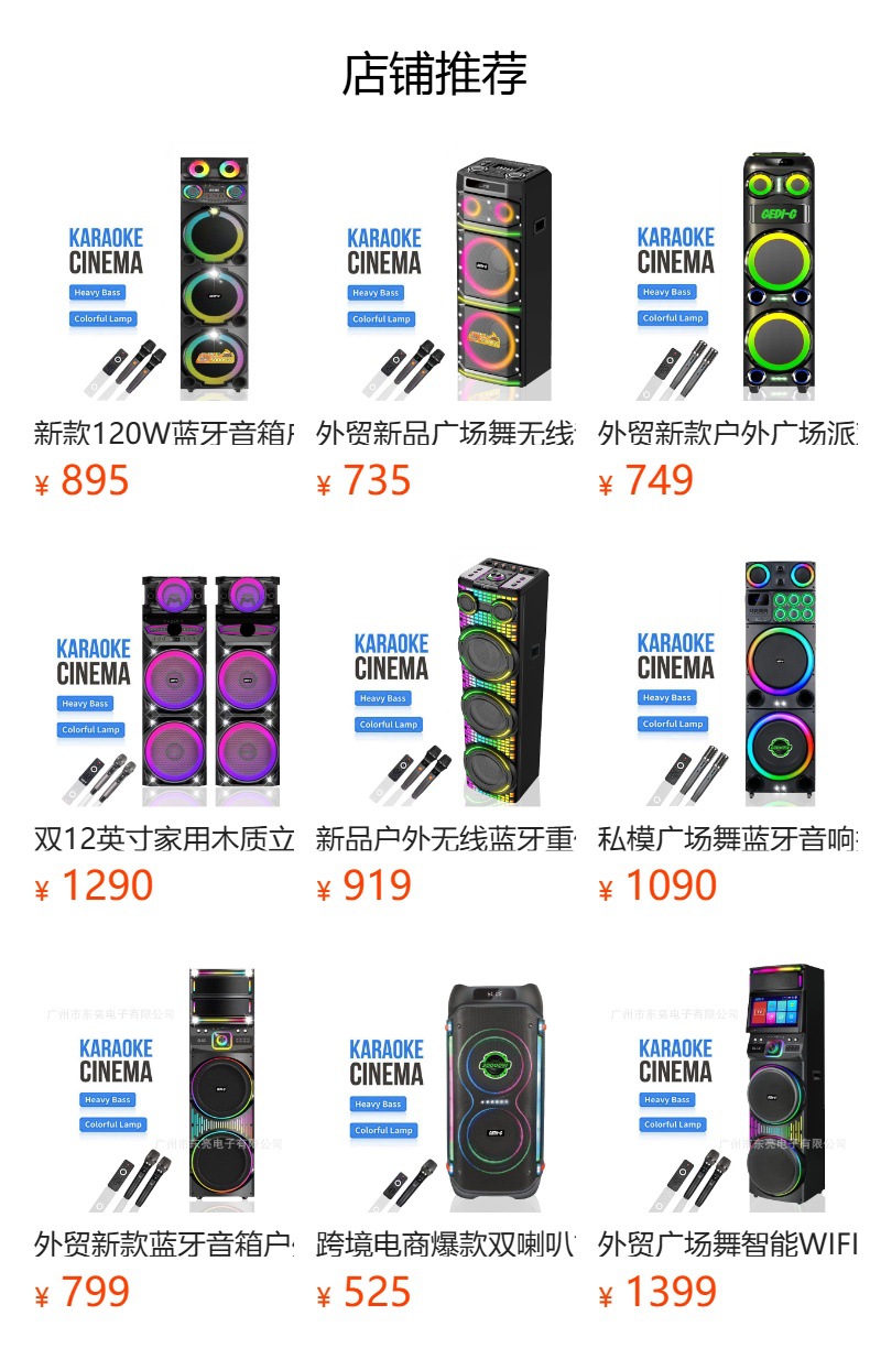 主要功能: 蓝牙,TF卡,USB,FM,AUX,TWS,MIC,遥控器,双无线麦克风,ECHO,TREBLE,EQ,BASS,RGB灯光,顶部舞台灯珠