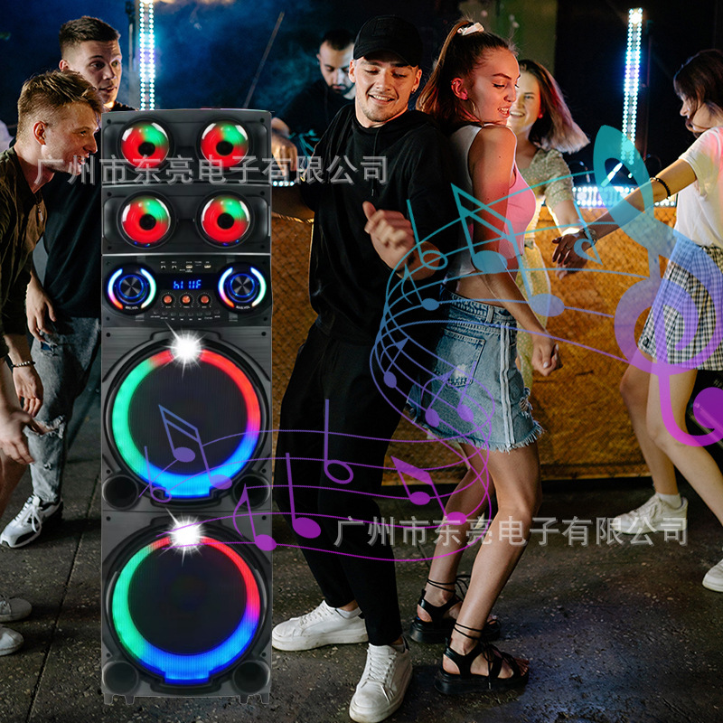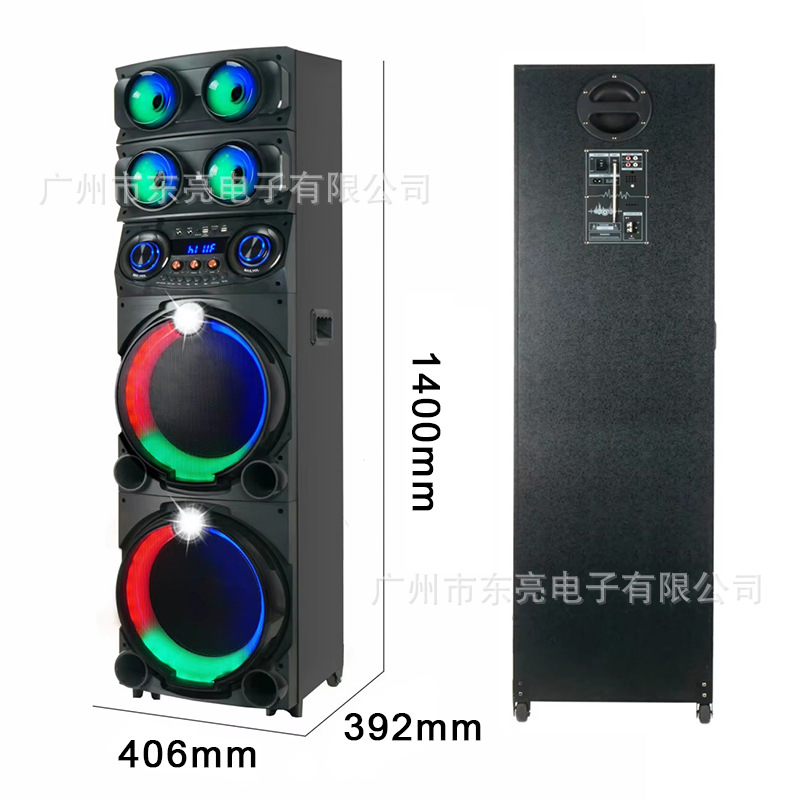 外贸私模双12寸低音户外蓝牙音箱便携大功率舞台灯光音响重低音炮