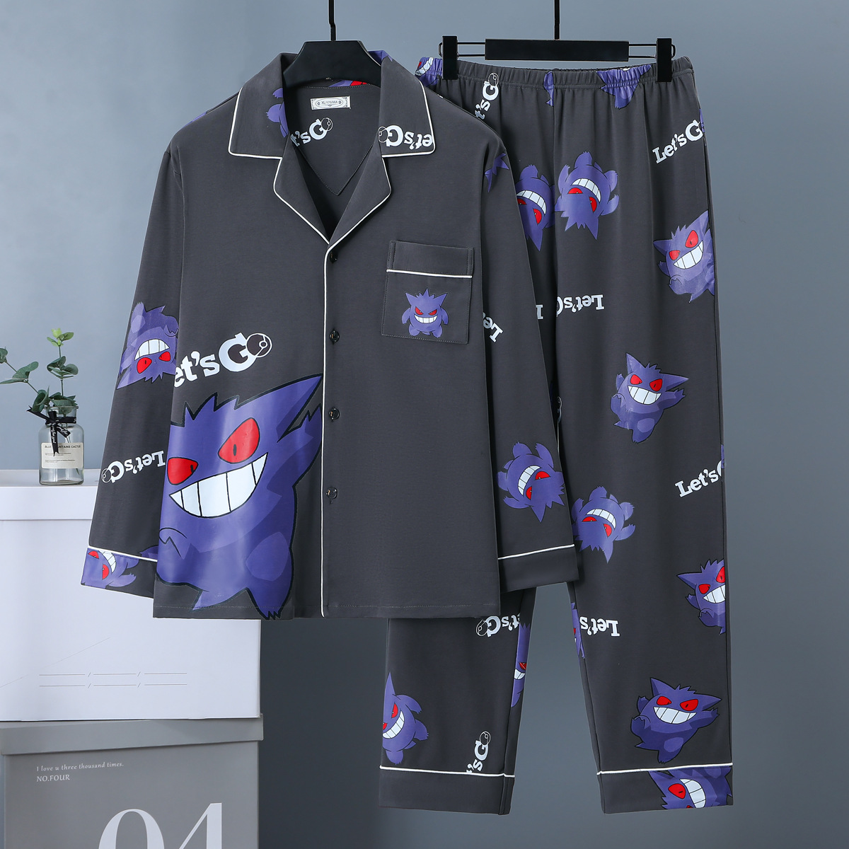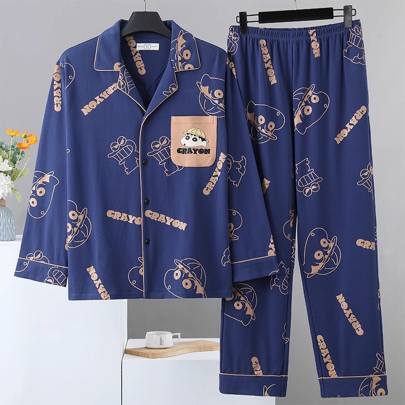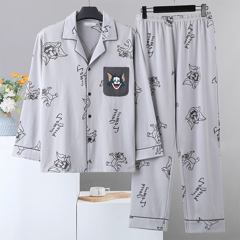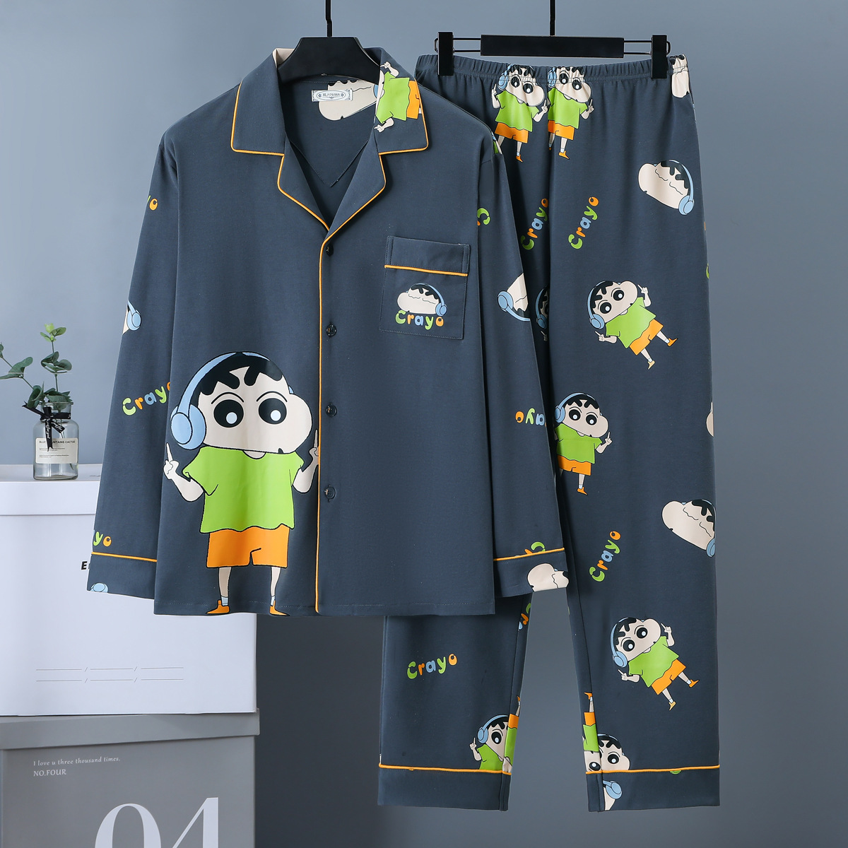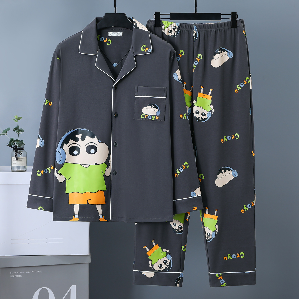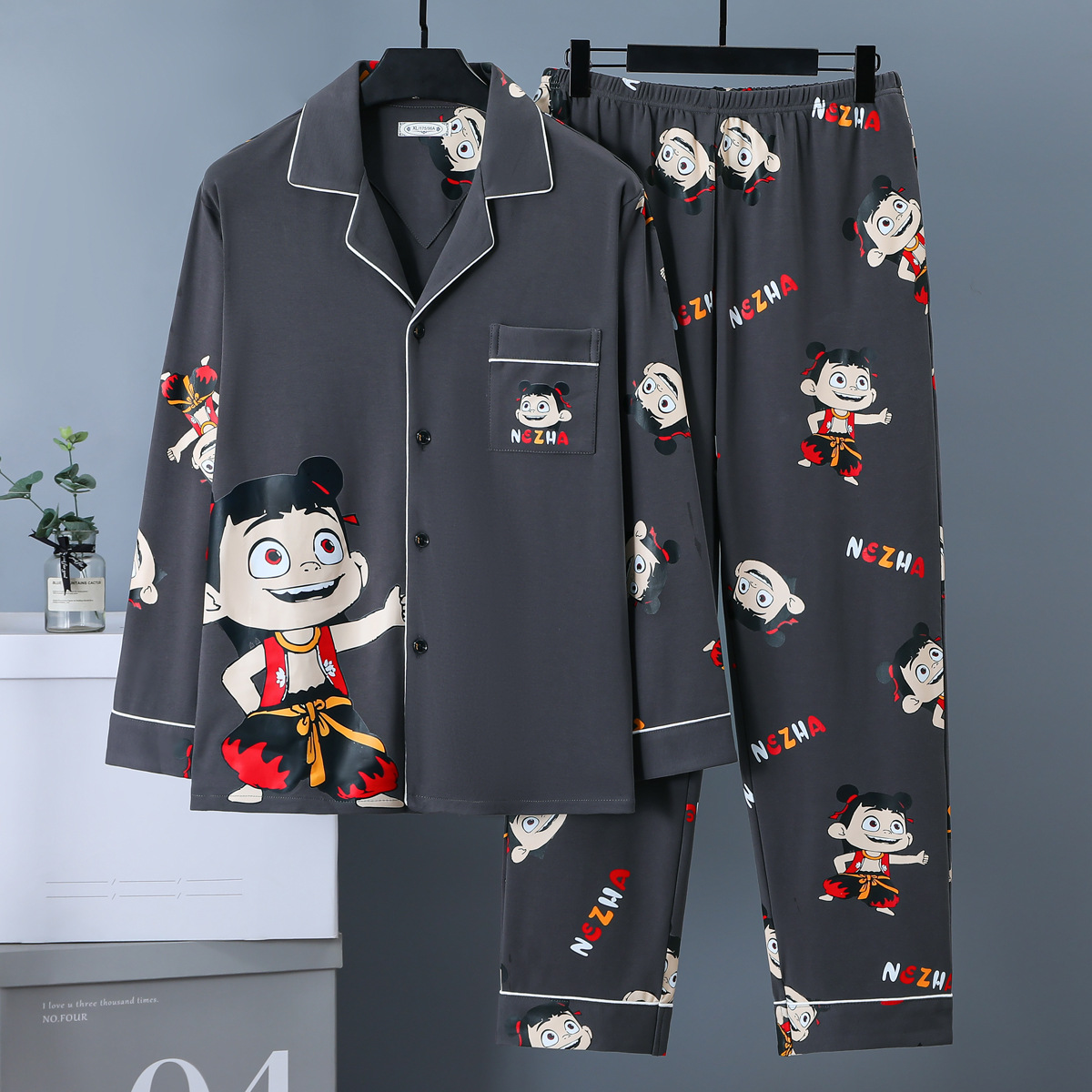 남성용 잠옷 긴팔 봄, 가을 모조 면화 청소년 가을 얇은 만화 봄 남성용 대형 홈웨어 세트스토어 가기