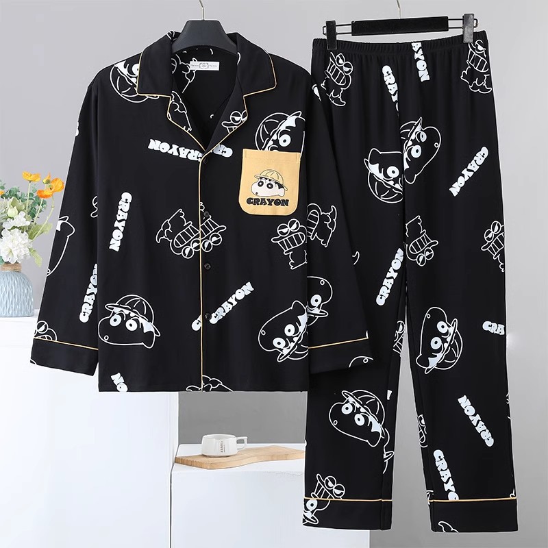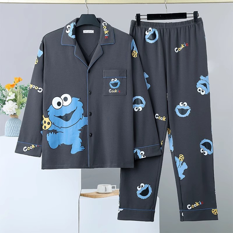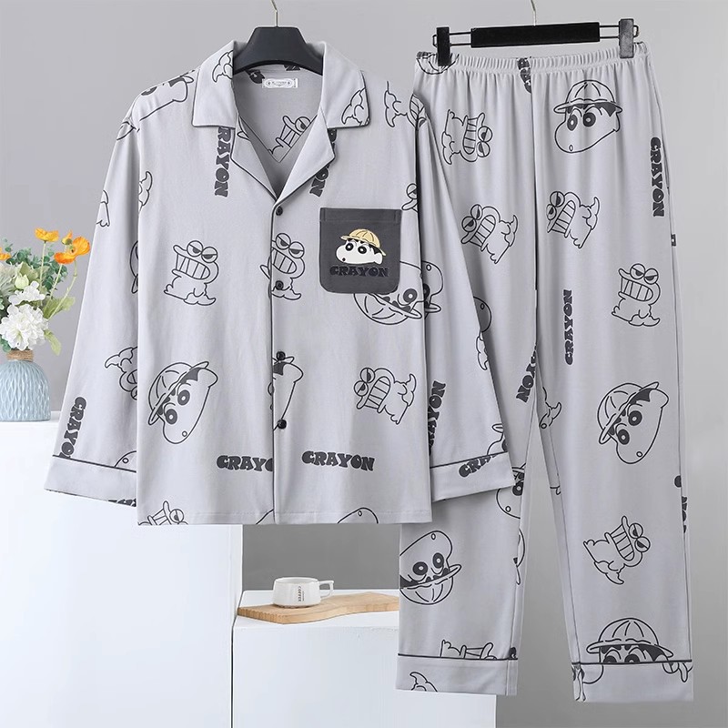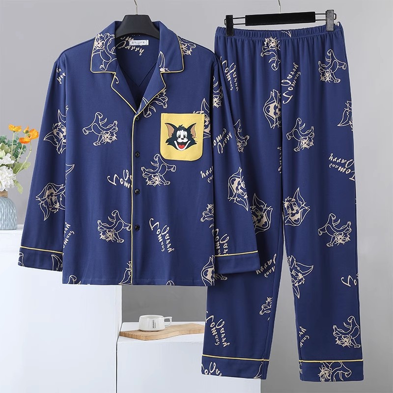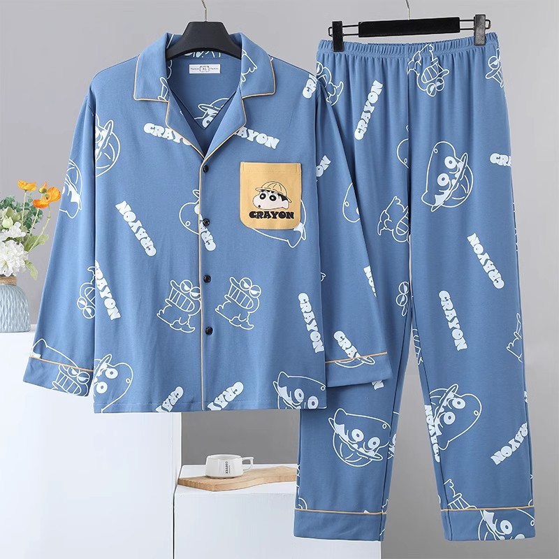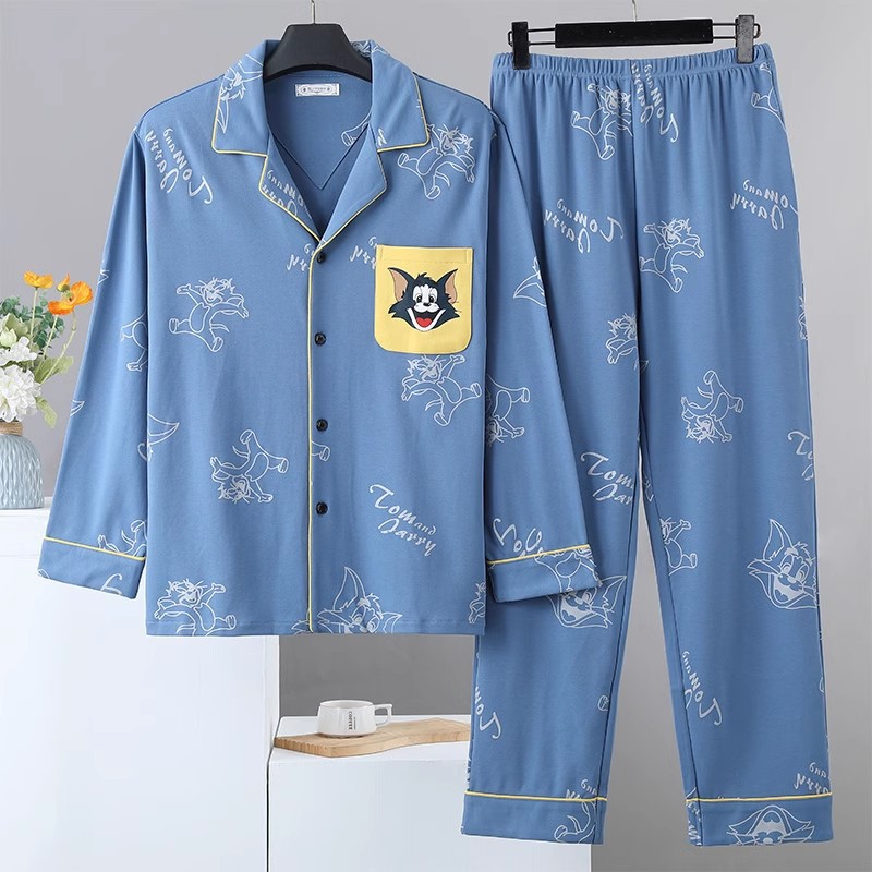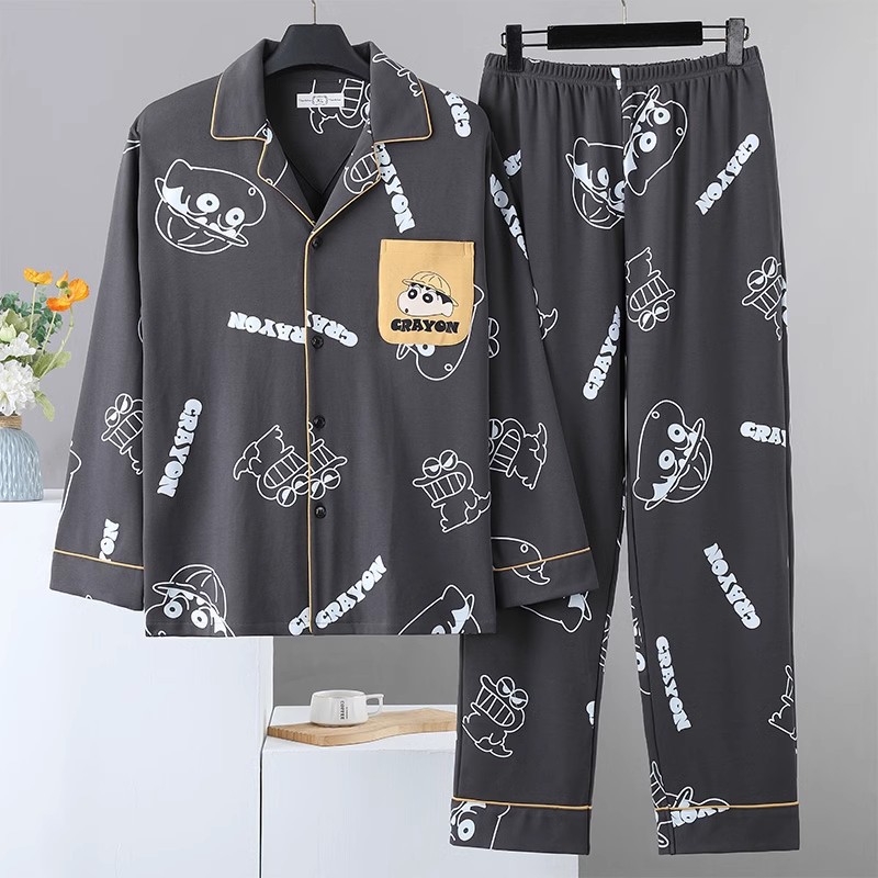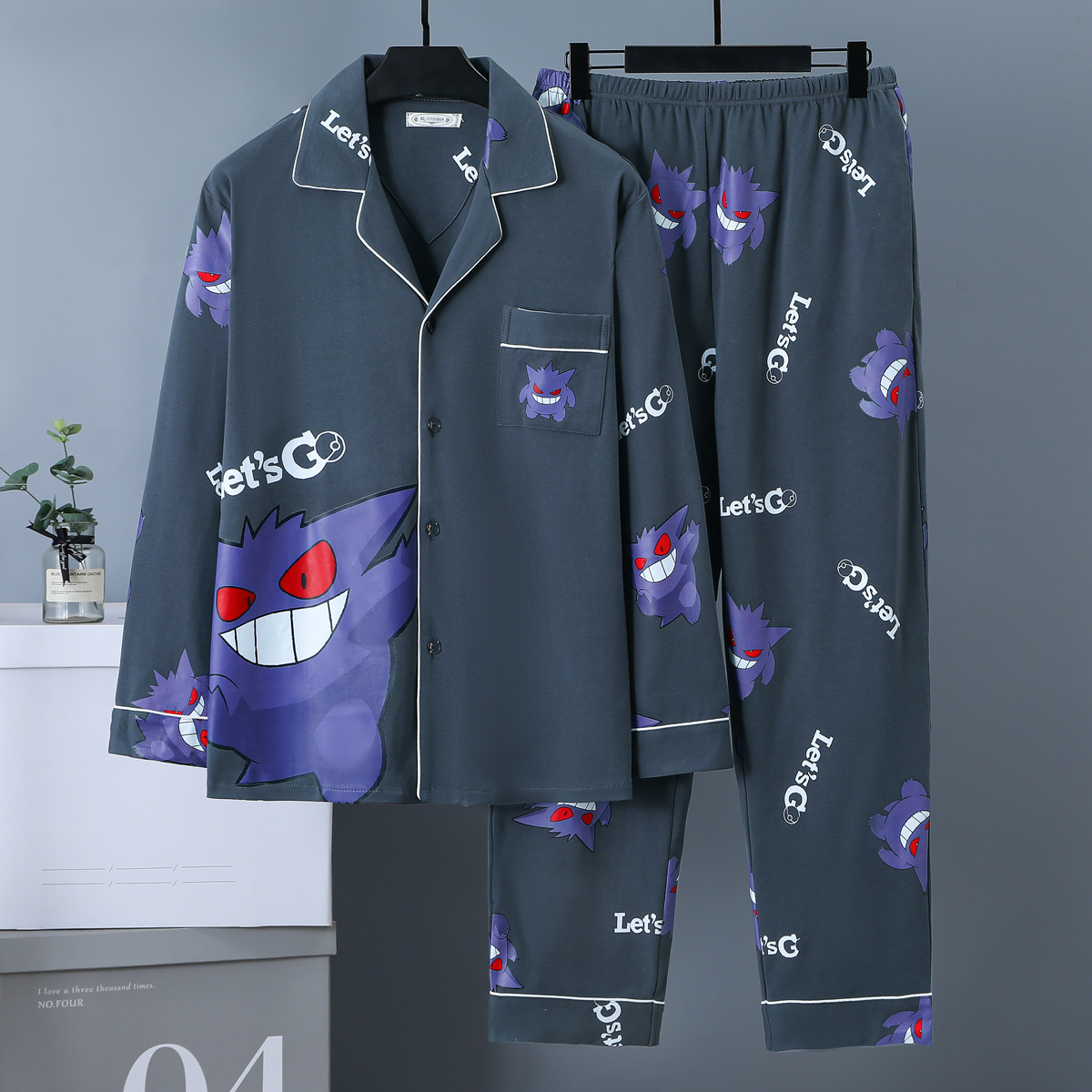 남성용 잠옷 긴팔 봄, 가을 모조 면화 청소년 가을 얇은 만화 봄 남성용 대형 홈웨어 세트스토어 가기