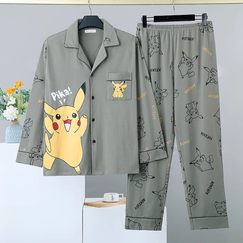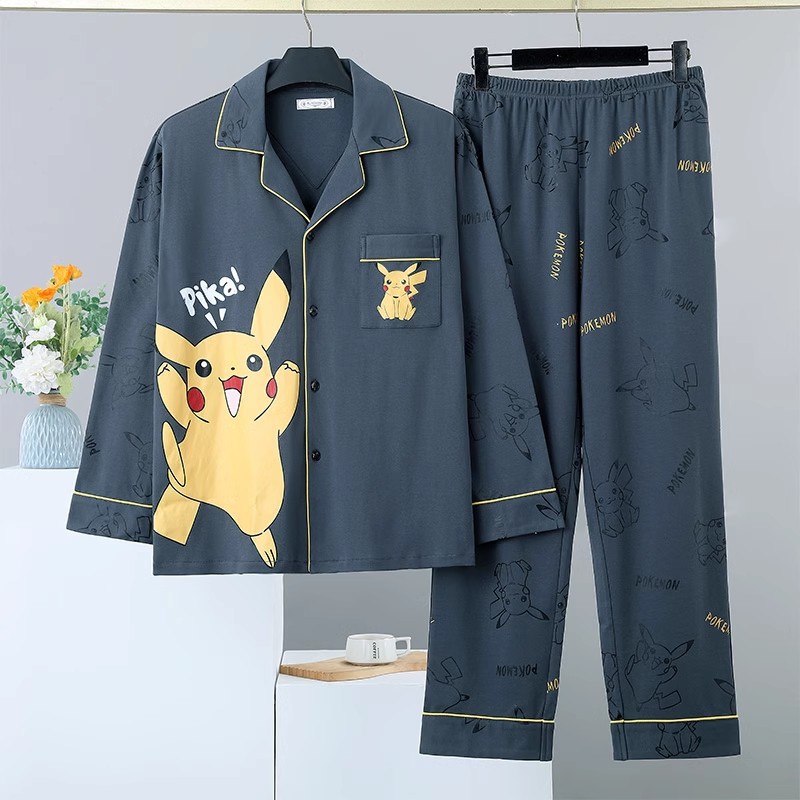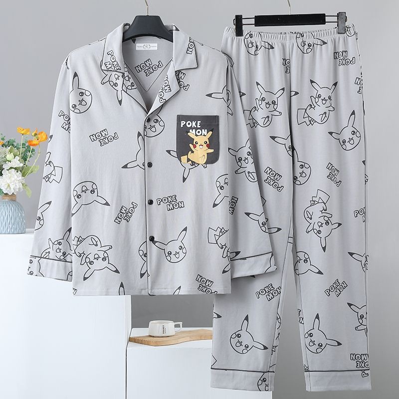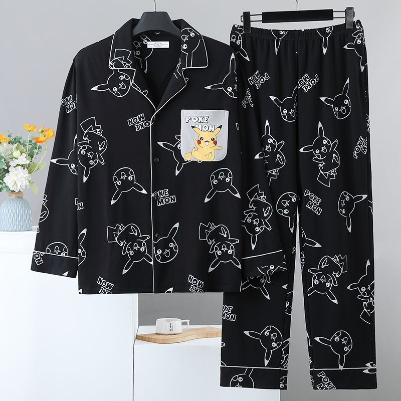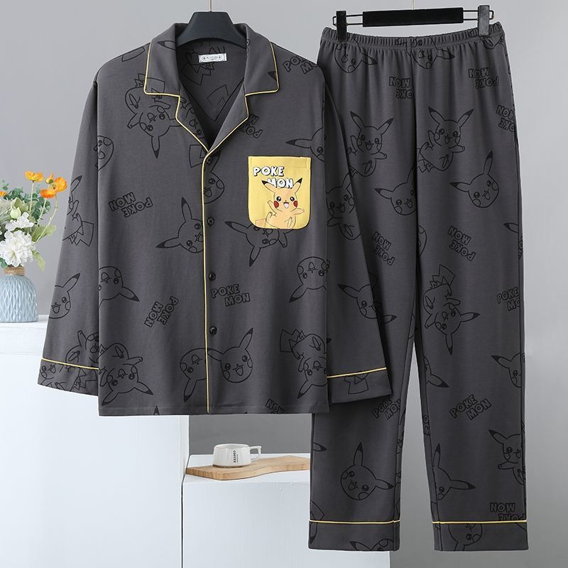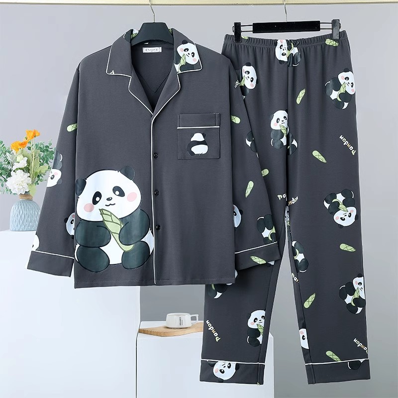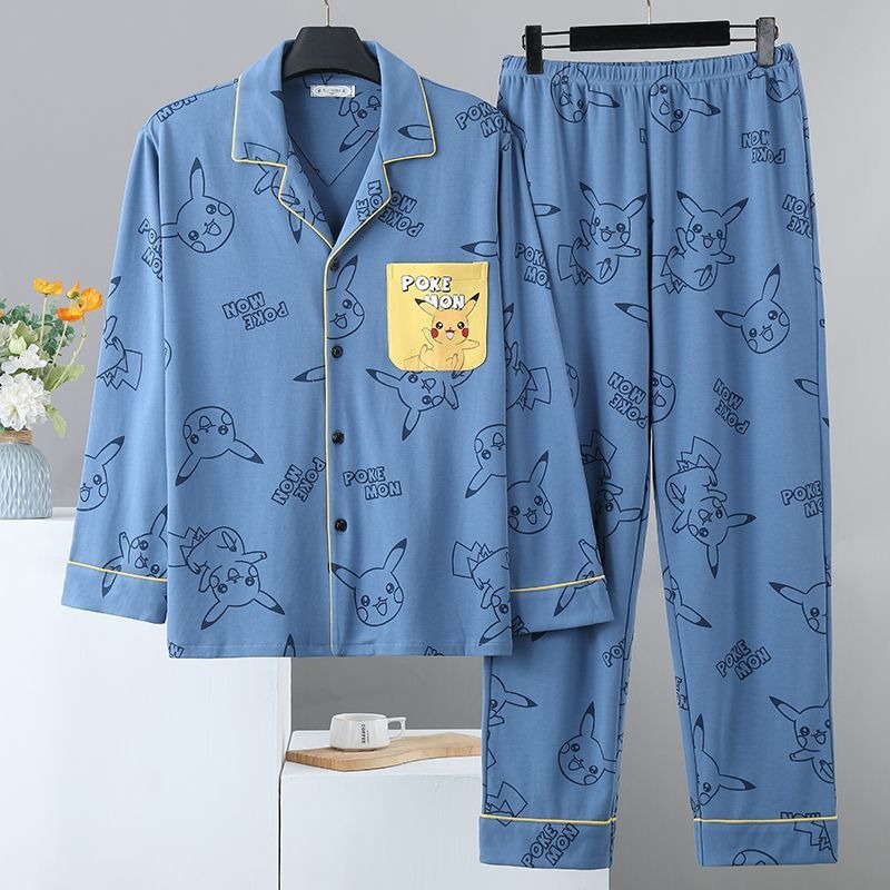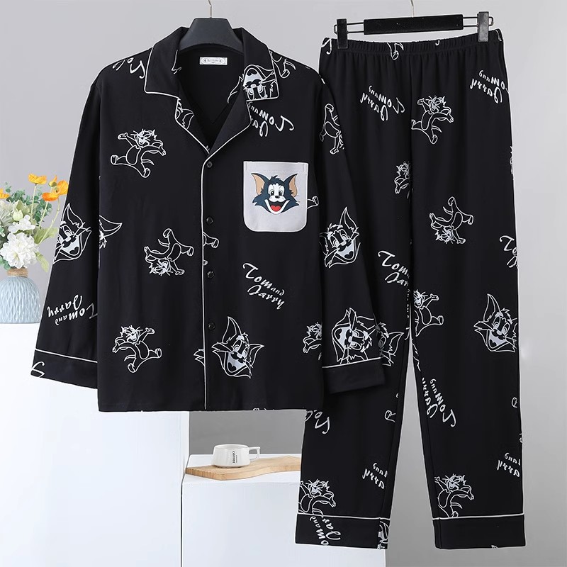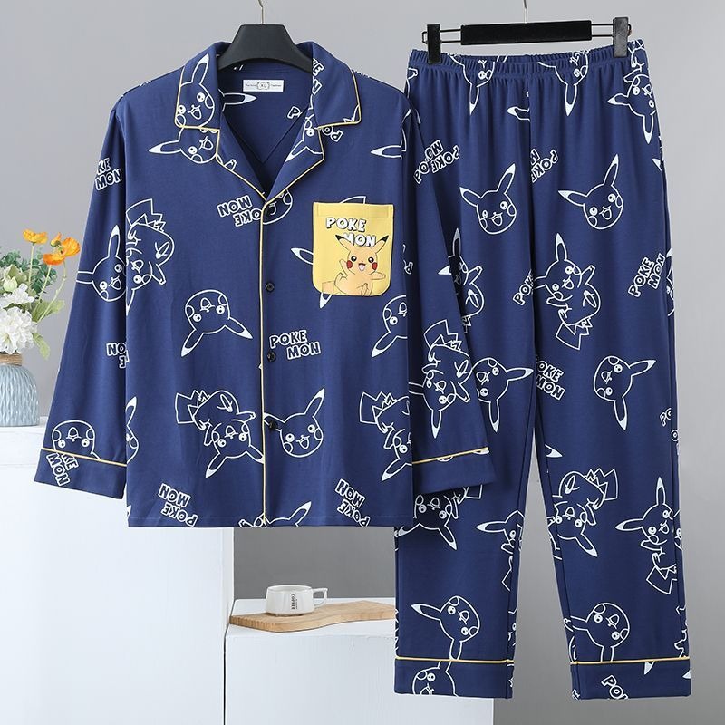 남성용 잠옷 긴팔 봄, 가을 모조 면화 청소년 가을 얇은 만화 봄 남성용 대형 홈웨어 세트스토어 가기