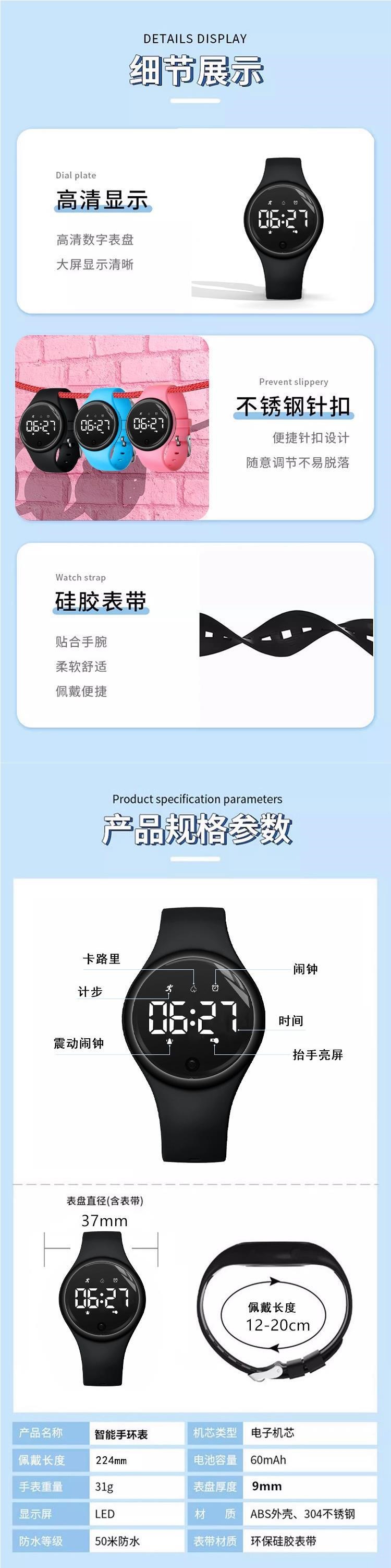 전자 시계 남자 주니어 고등학교 학생 여성 침묵 진동 알람 시계 음소거 어린이 운동 만 시간 테스트 링