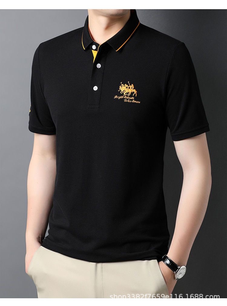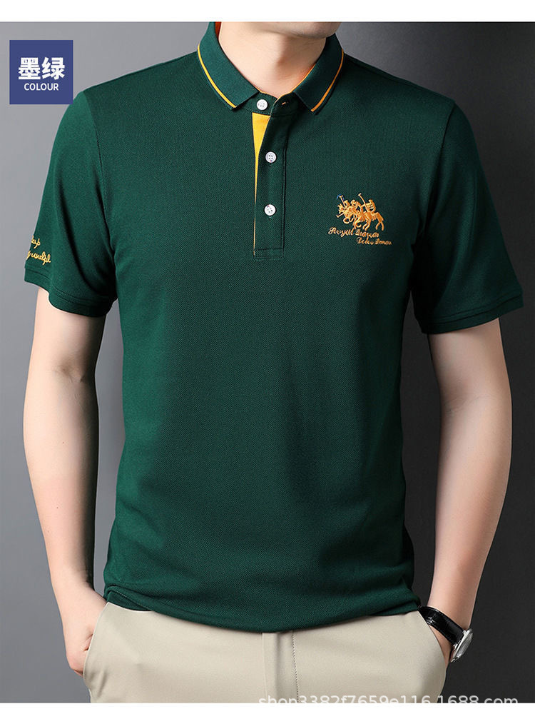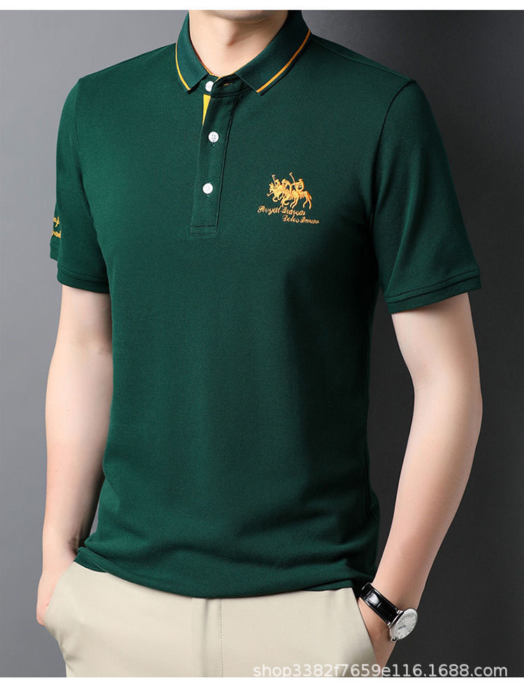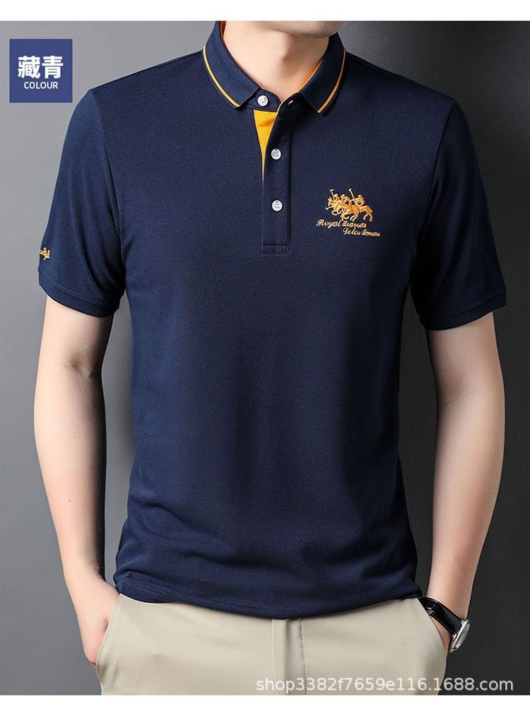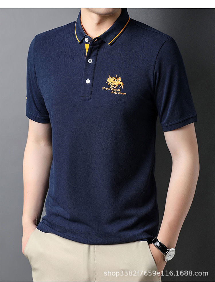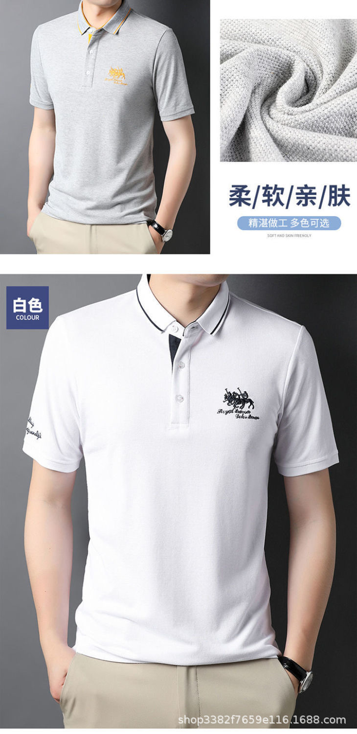 국경 간 전자 상거래 남성 여름 반팔 청년 및 중년 캐주얼 반팔 트렌디 비즈니스 폴로 셔츠 라펠 자수 반팔