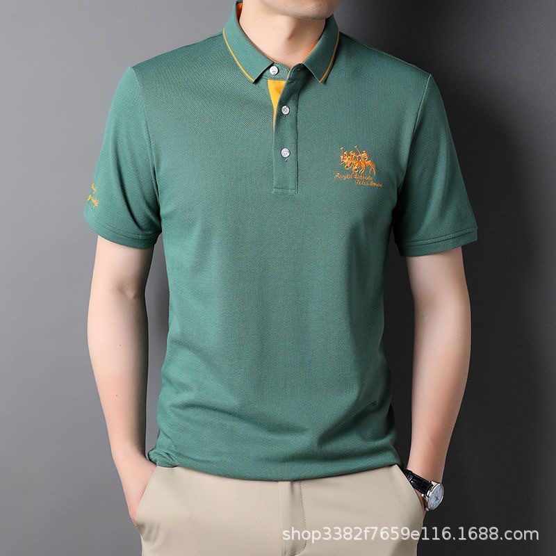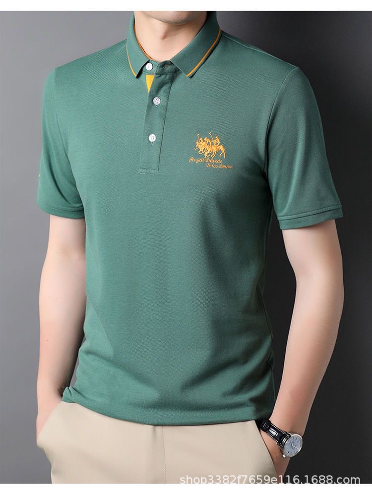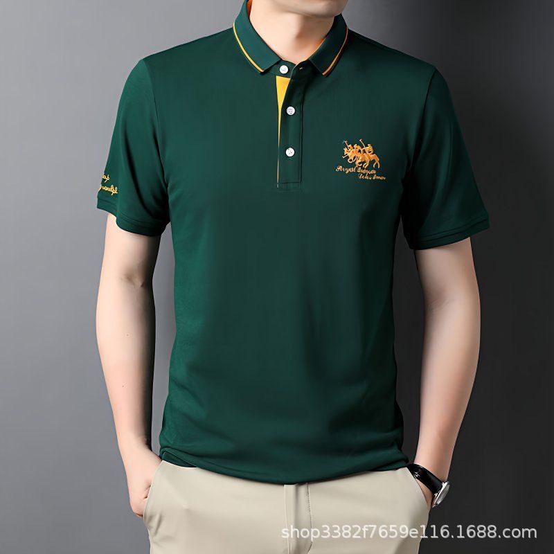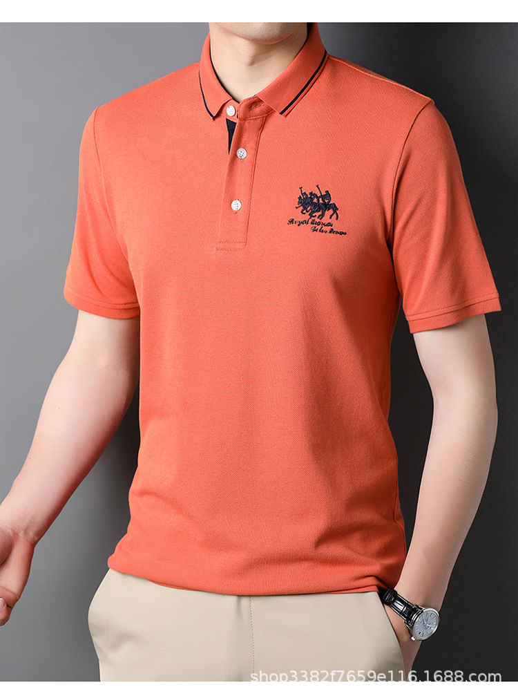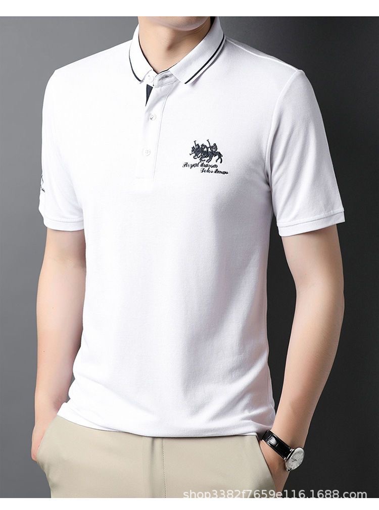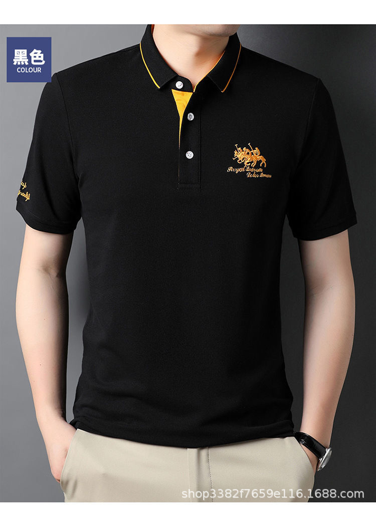 국경 간 전자 상거래 남성 여름 반팔 청년 및 중년 캐주얼 반팔 트렌디 비즈니스 폴로 셔츠 라펠 자수 반팔