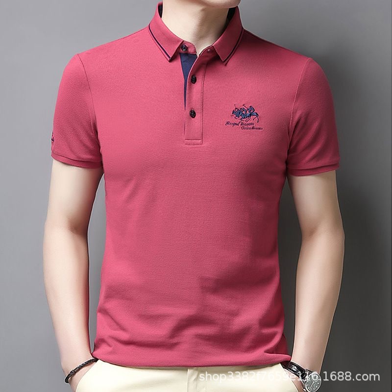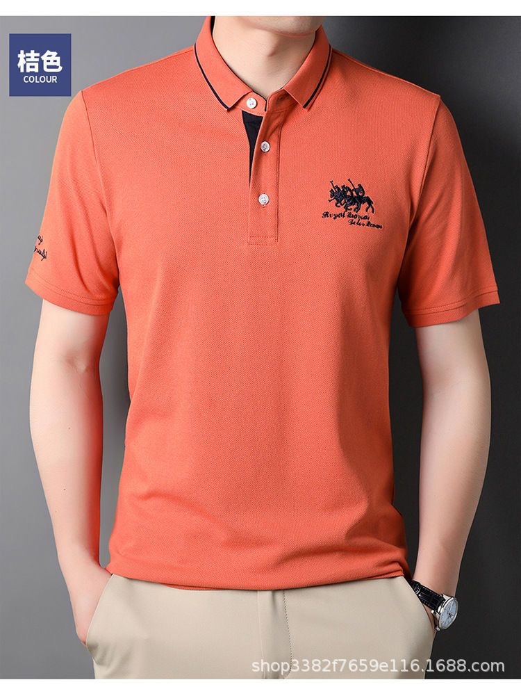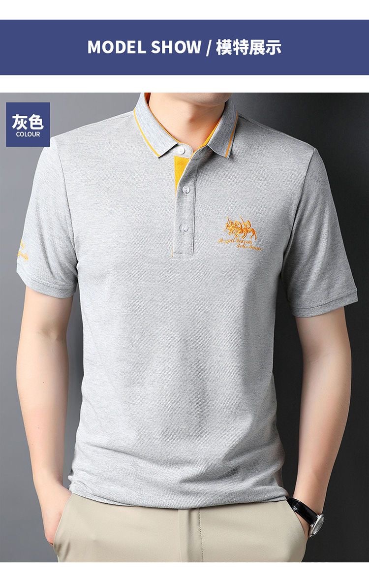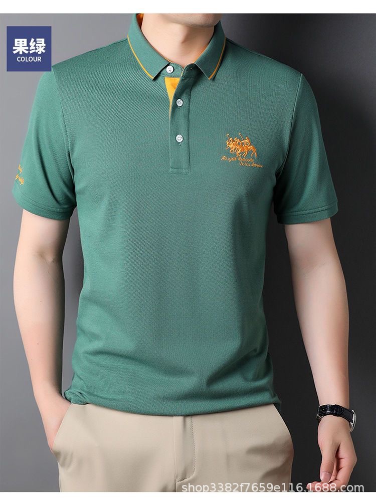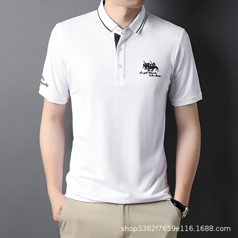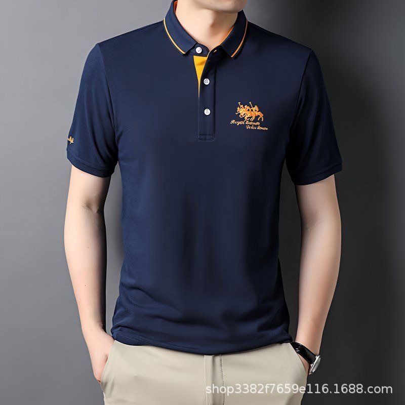 국경 간 전자 상거래 남성 여름 반팔 청년 및 중년 캐주얼 반팔 트렌디 비즈니스 폴로 셔츠 라펠 자수 반팔